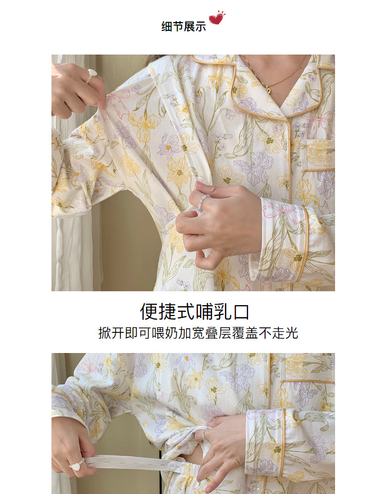 7A Антибактериальные беременные пижамы типа A хлопчатобумажная одежда для родов Весна осень 4 месяца после родов Материнское кормление и кормление Домашняя одежда