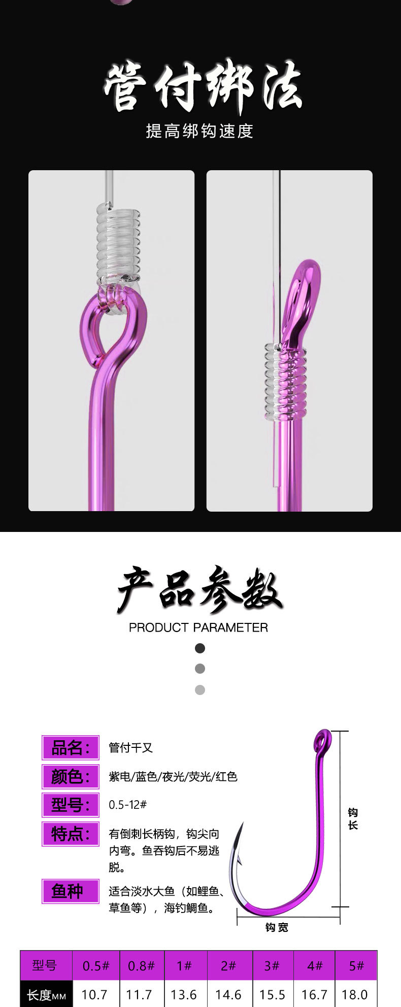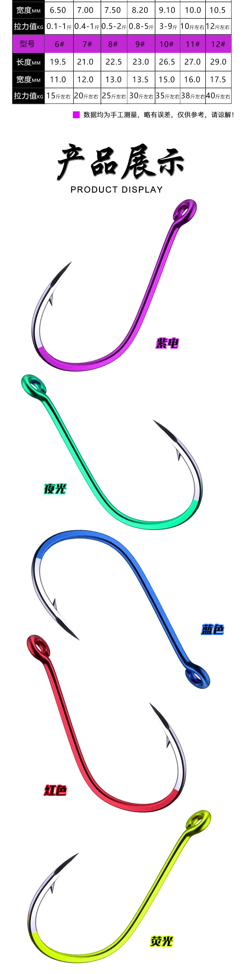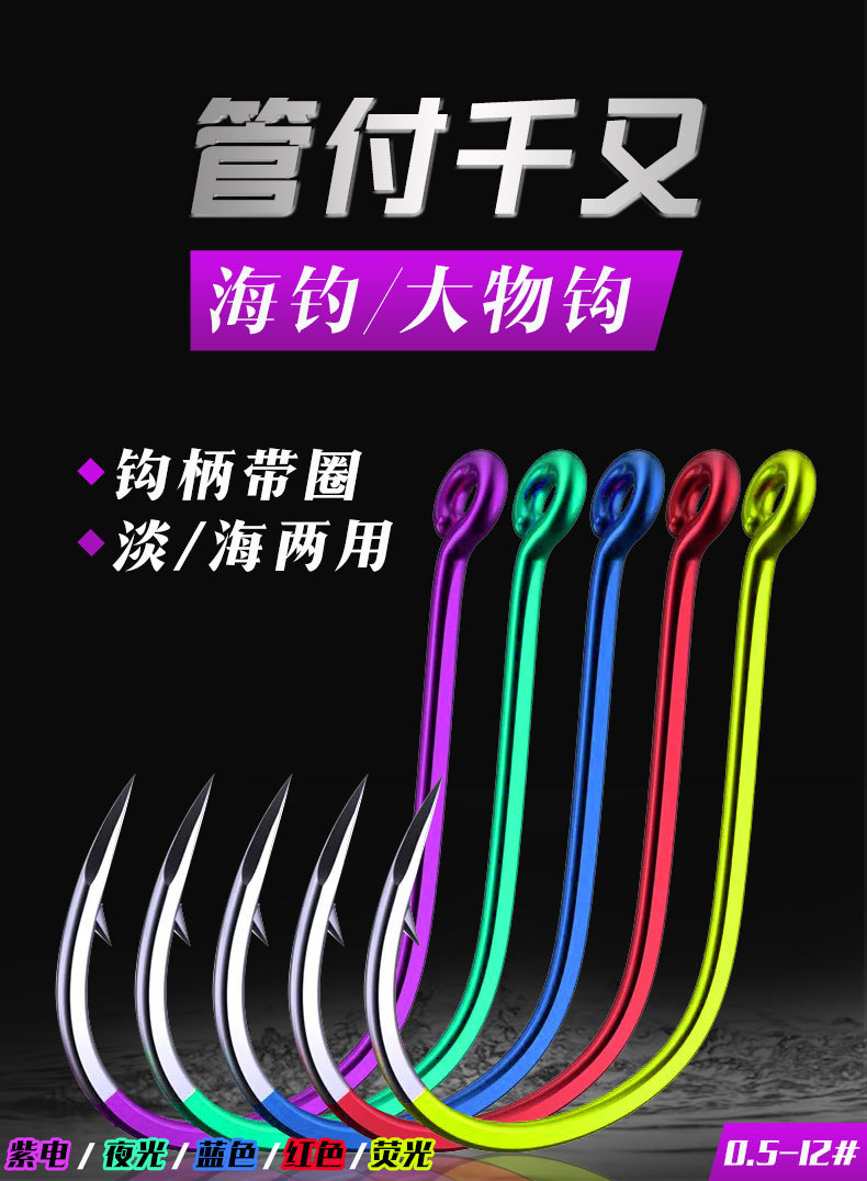 Труба Fuqian и фиолетовый электрический светящийся синий красный флуоресцентный кривая рот с крючком для рыбы