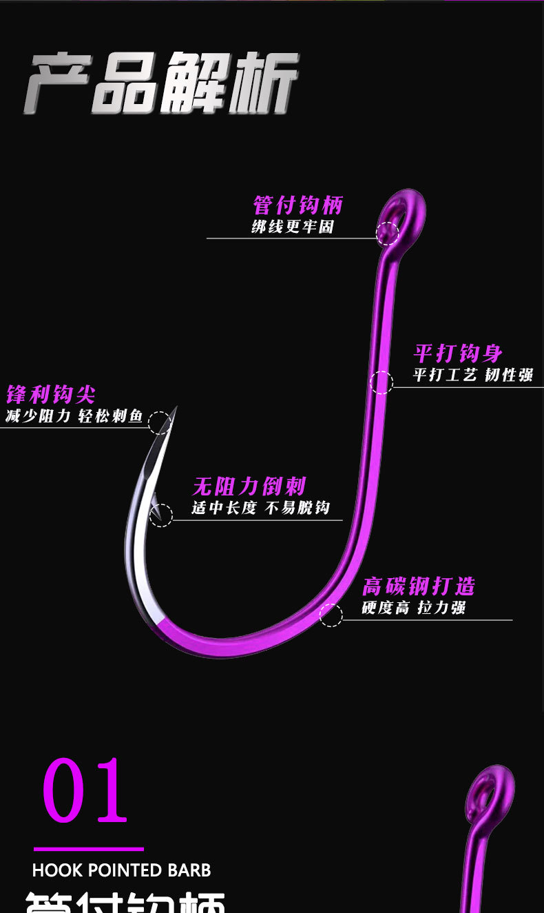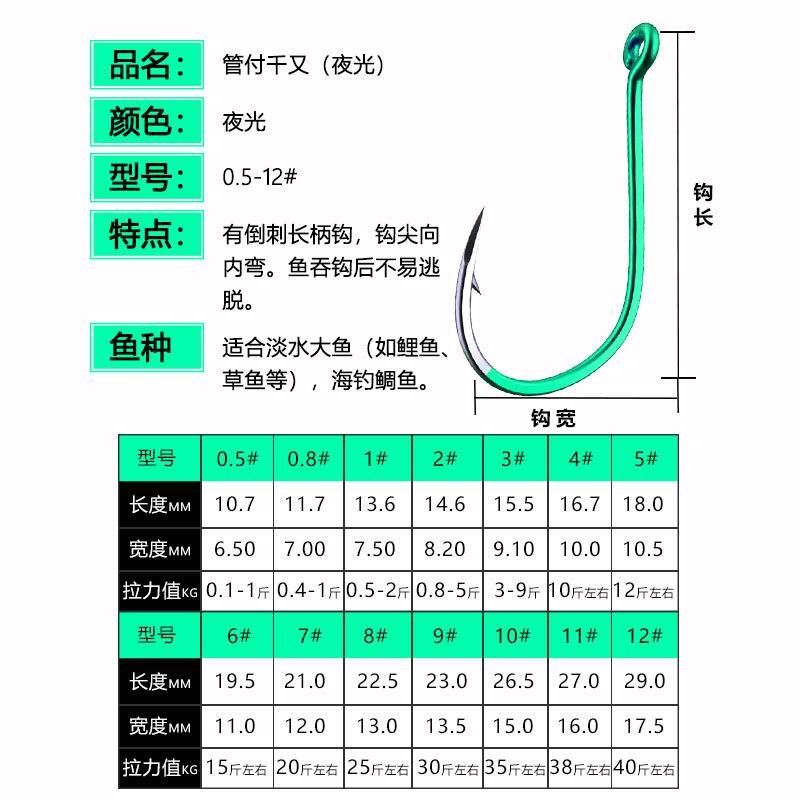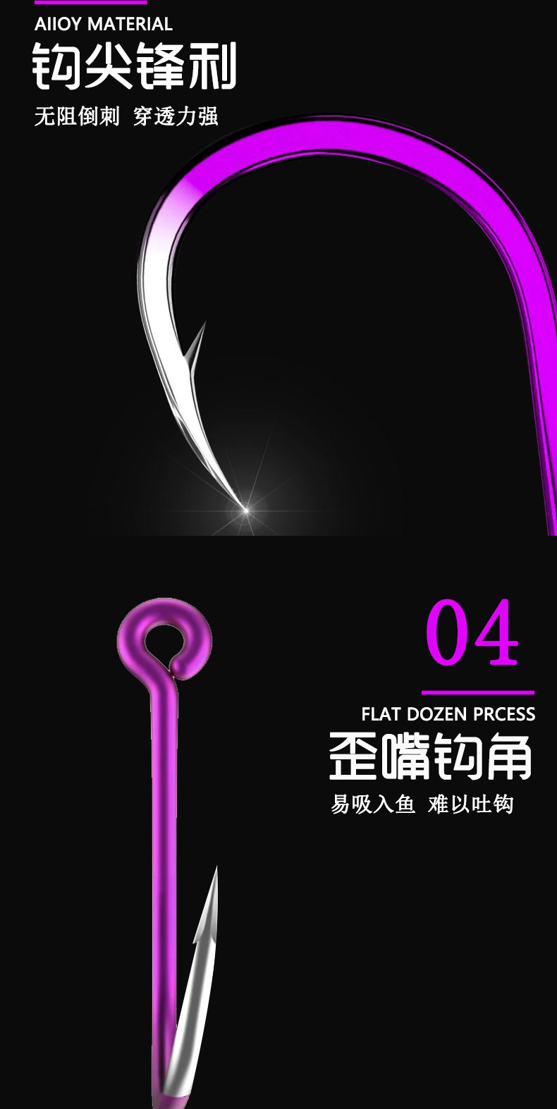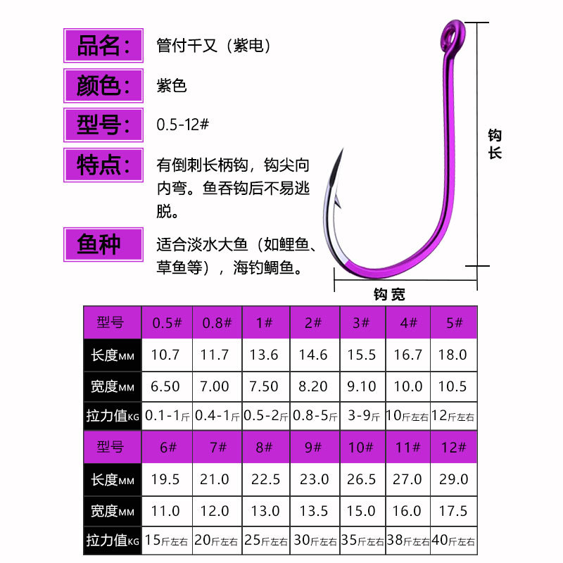 Труба Fuqian и фиолетовый электрический светящийся синий красный флуоресцентный кривая рот с крючком для рыбы