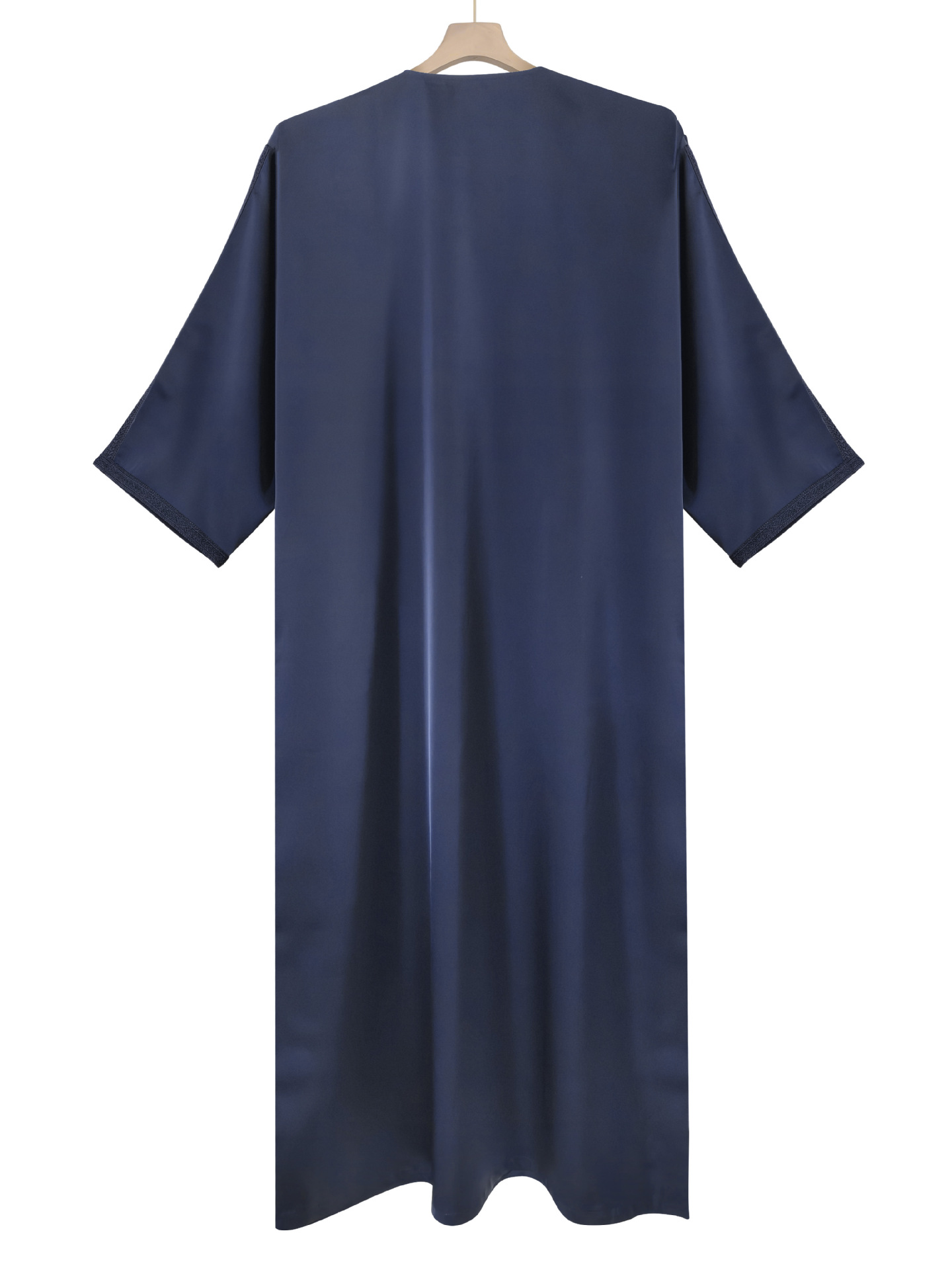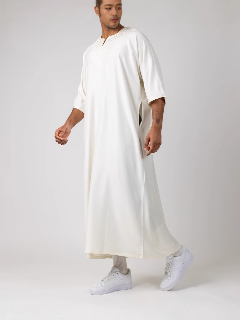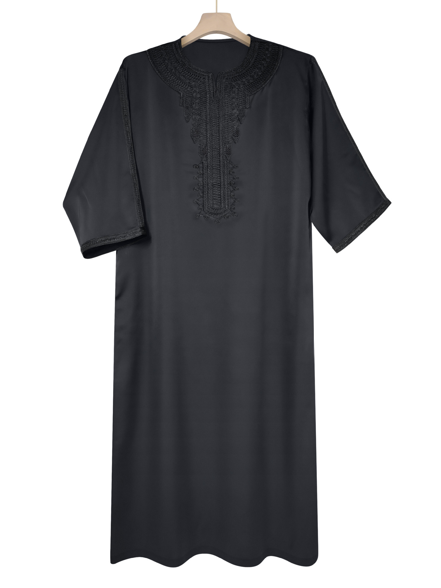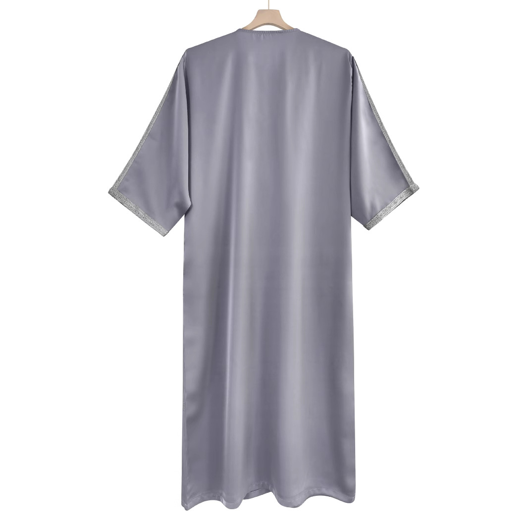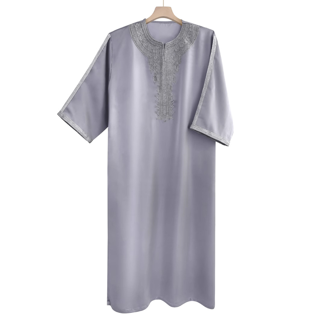 2025 Высококачественный трансграничный Ближний Восток Дубай мусульманский средний рукав с вышивкой канат национальный стиль марокканские мужские халаты боковые карманы