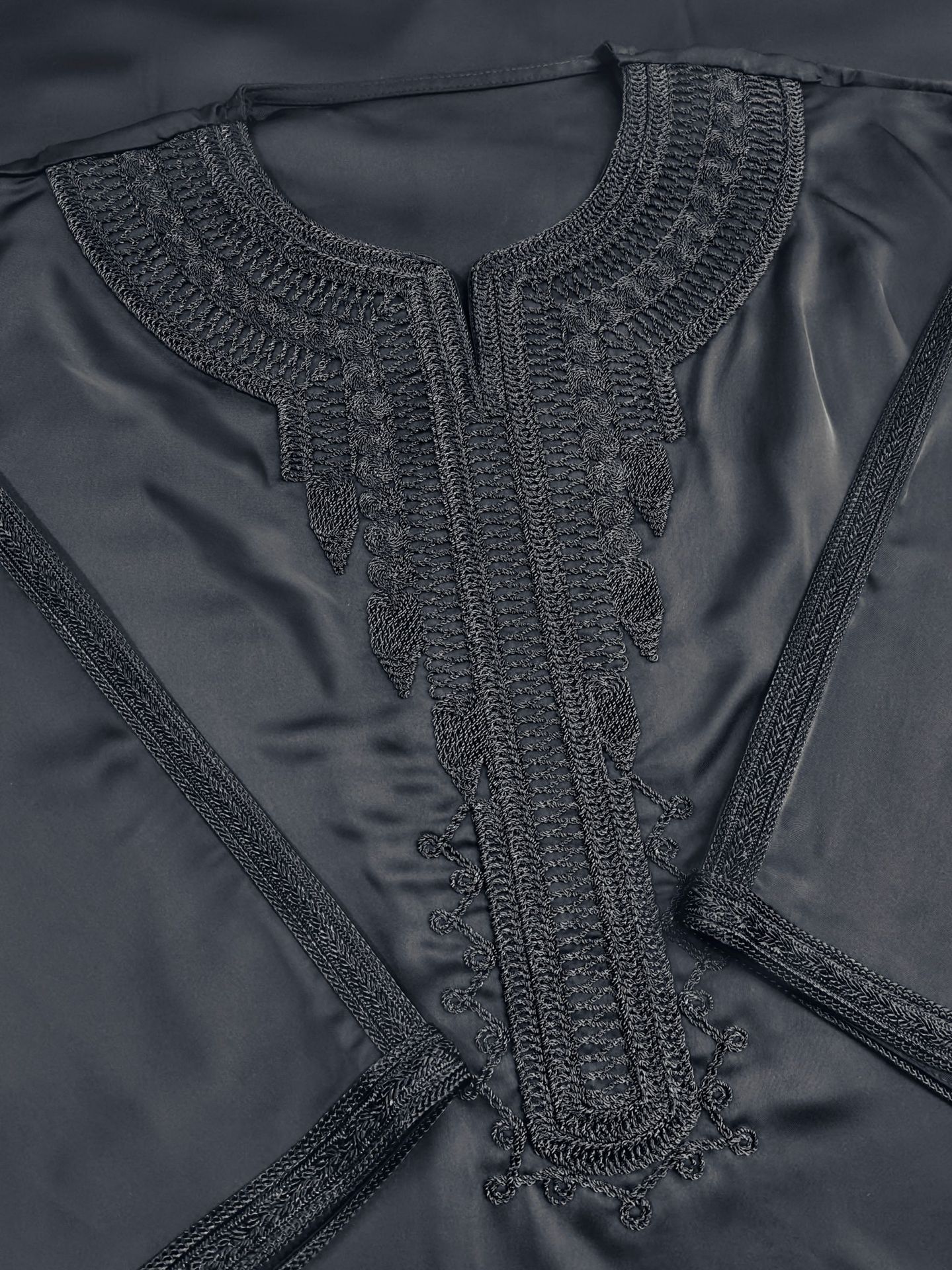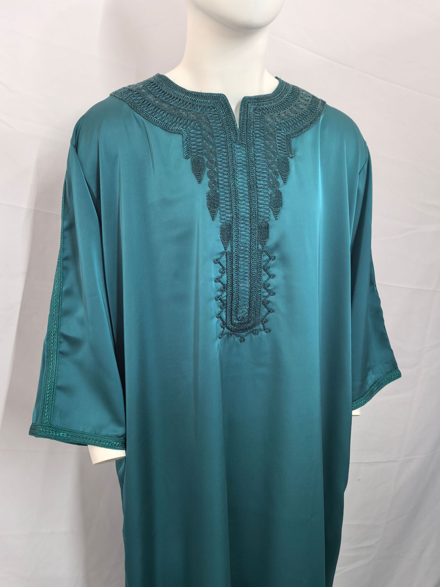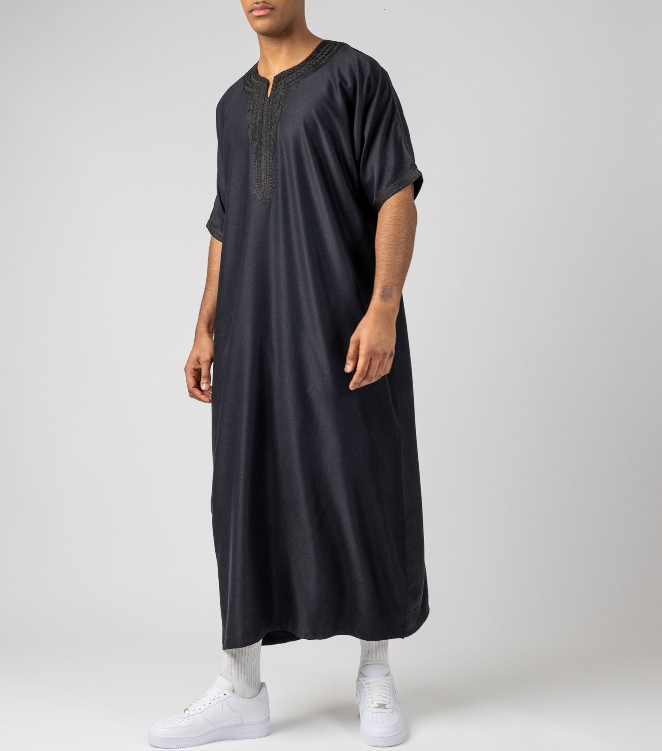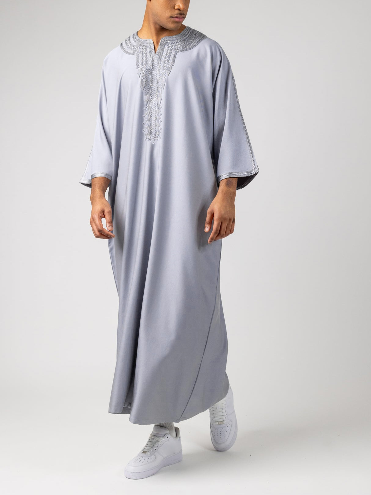2025 Высококачественный трансграничный Ближний Восток Дубай мусульманский средний рукав с вышивкой канат национальный стиль марокканские мужские халаты боковые карманы