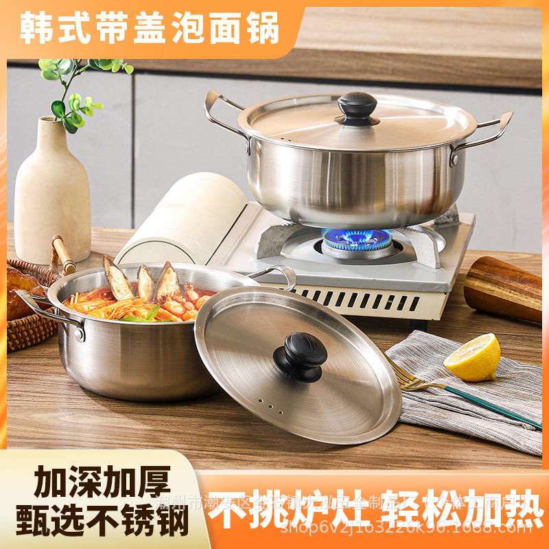 Трансграничный корейский горшок для лапши быстрого приготовления, нержавеющая сталь, горшок для рамэна с двумя ушками, небольшой горячий горшок, бытовой горшок с крышкой, индукционная плита для супа, портативная