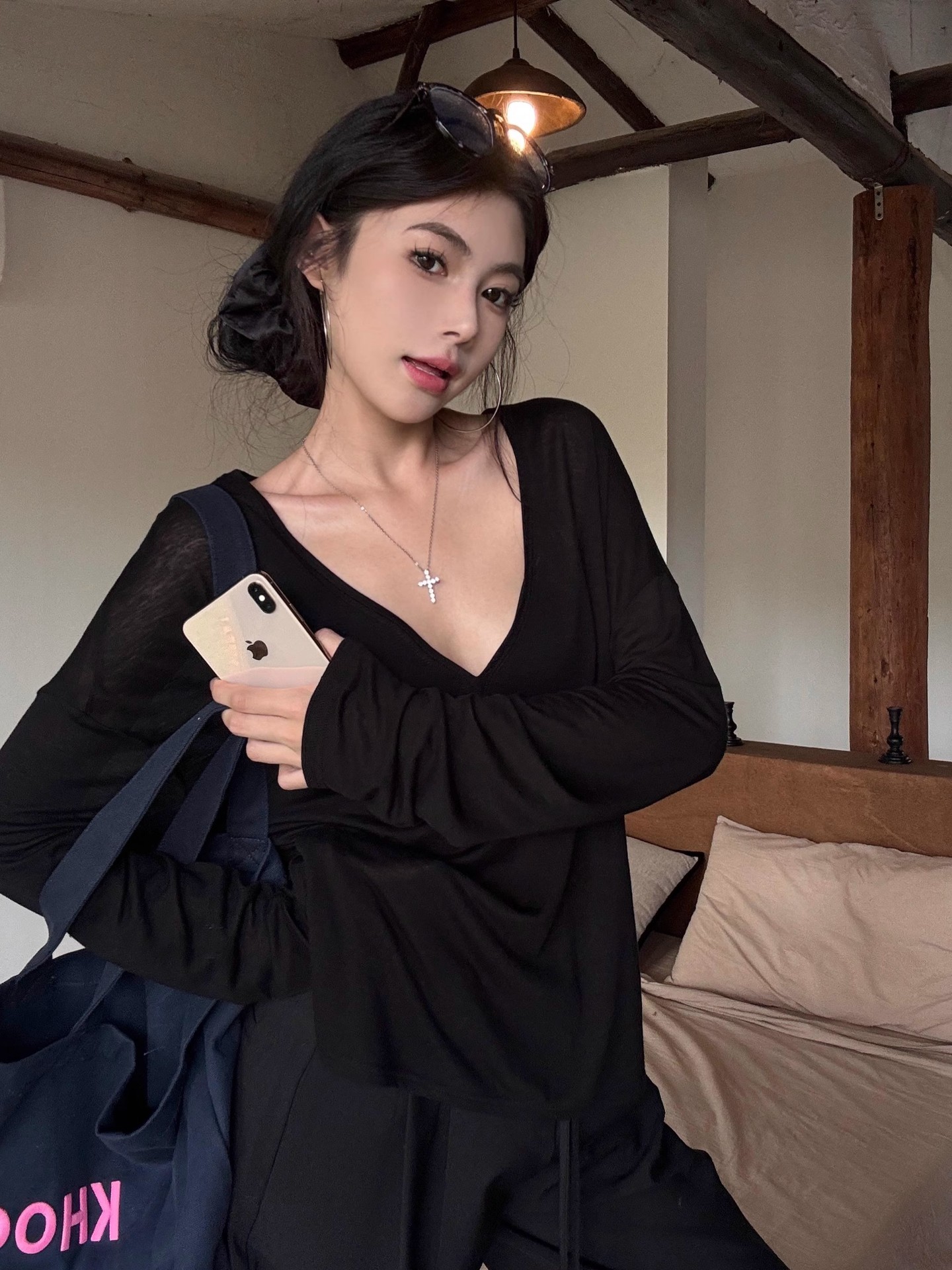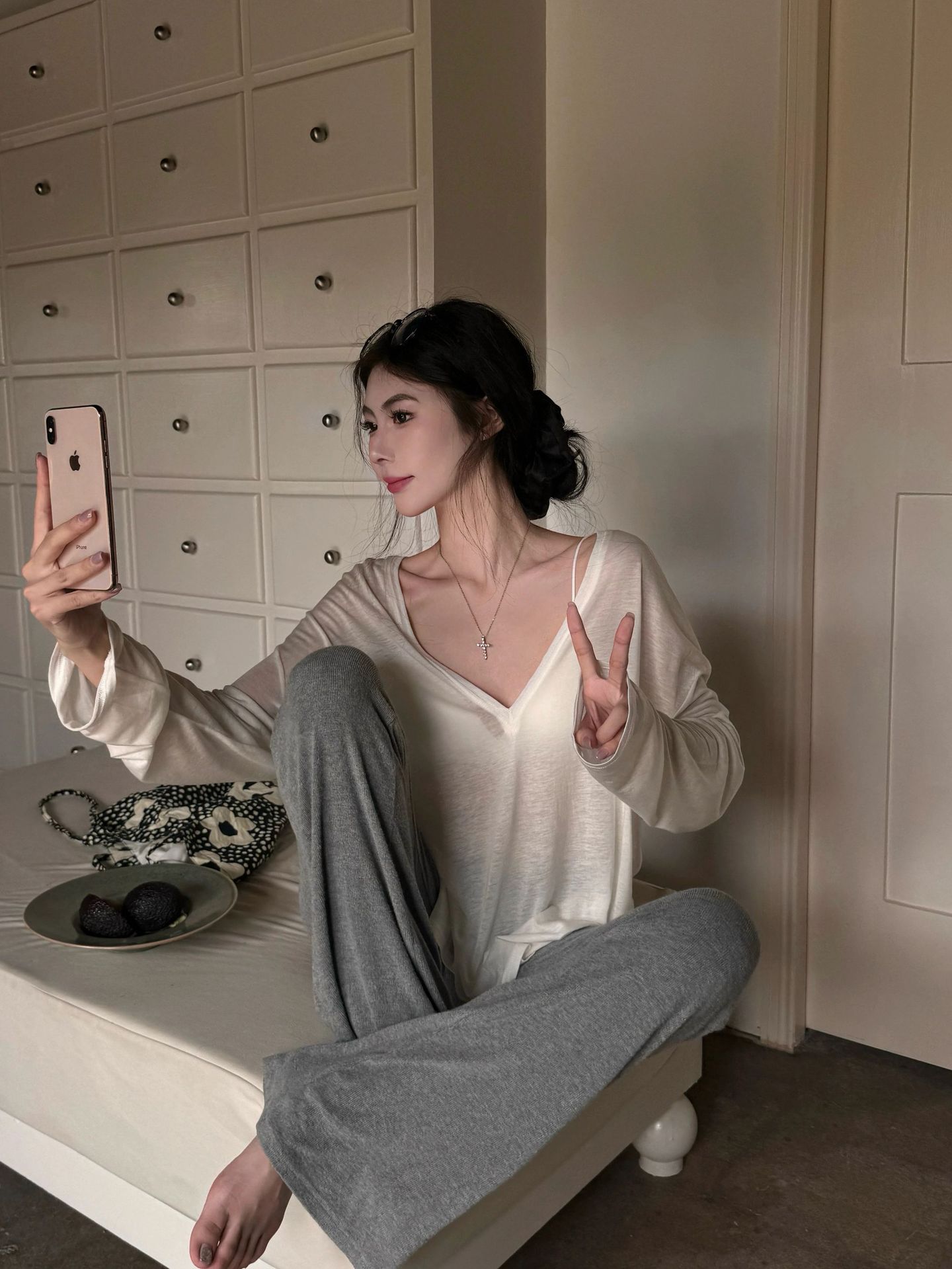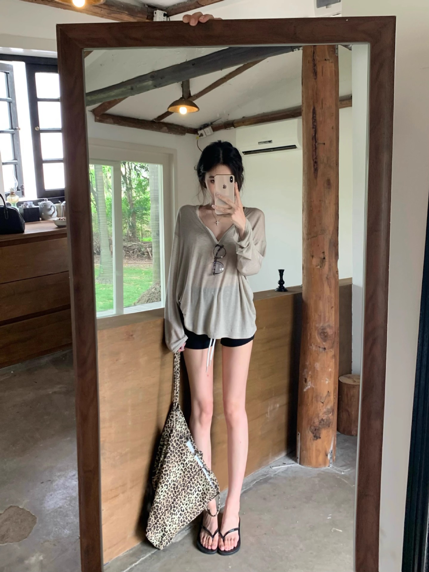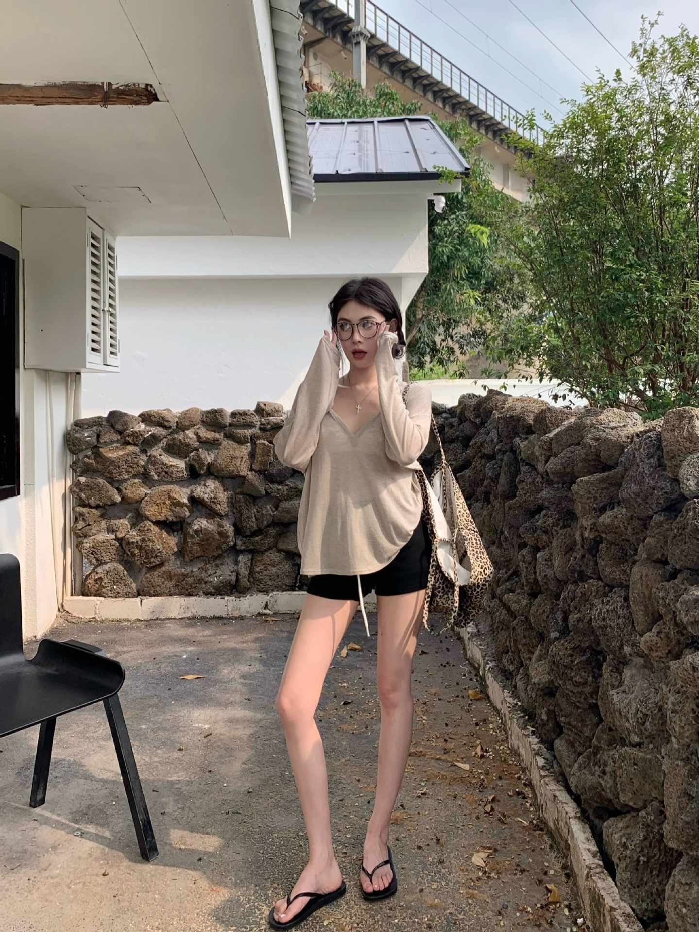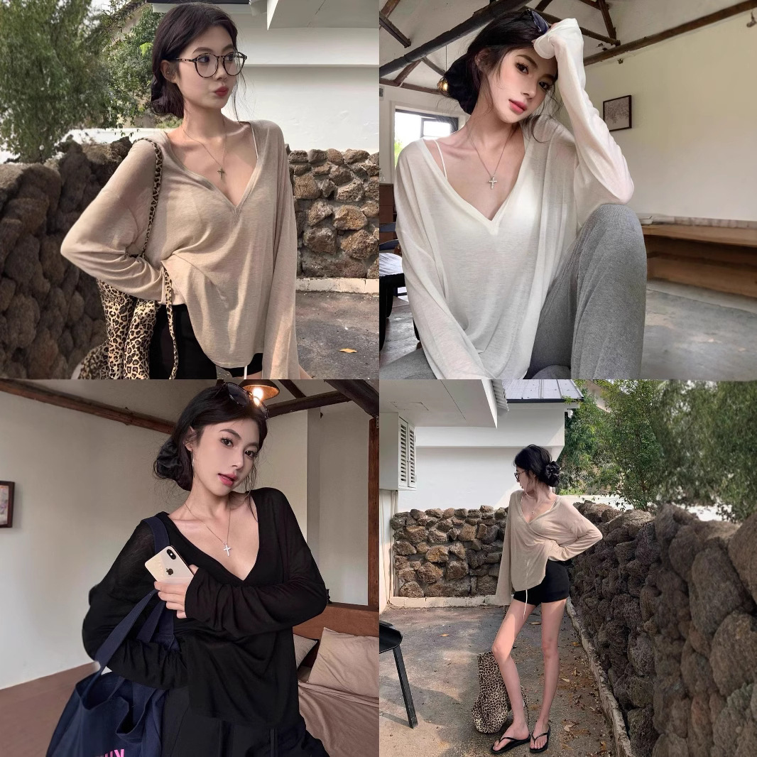 Слабая и ленивая белая солнцезащитная футболка с V-образным вырезом