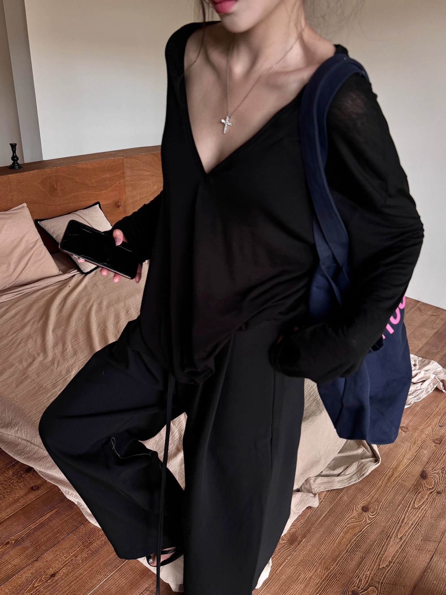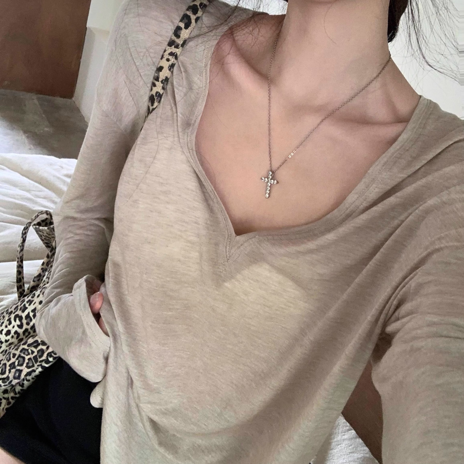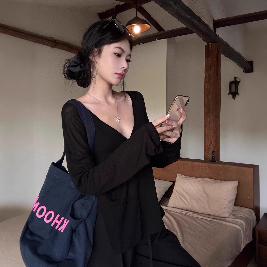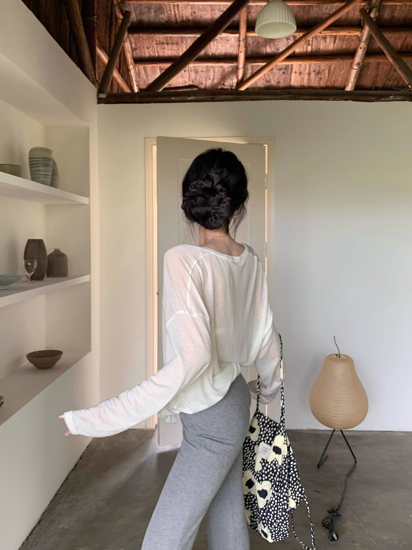 Слабая и ленивая белая солнцезащитная футболка с V-образным вырезом