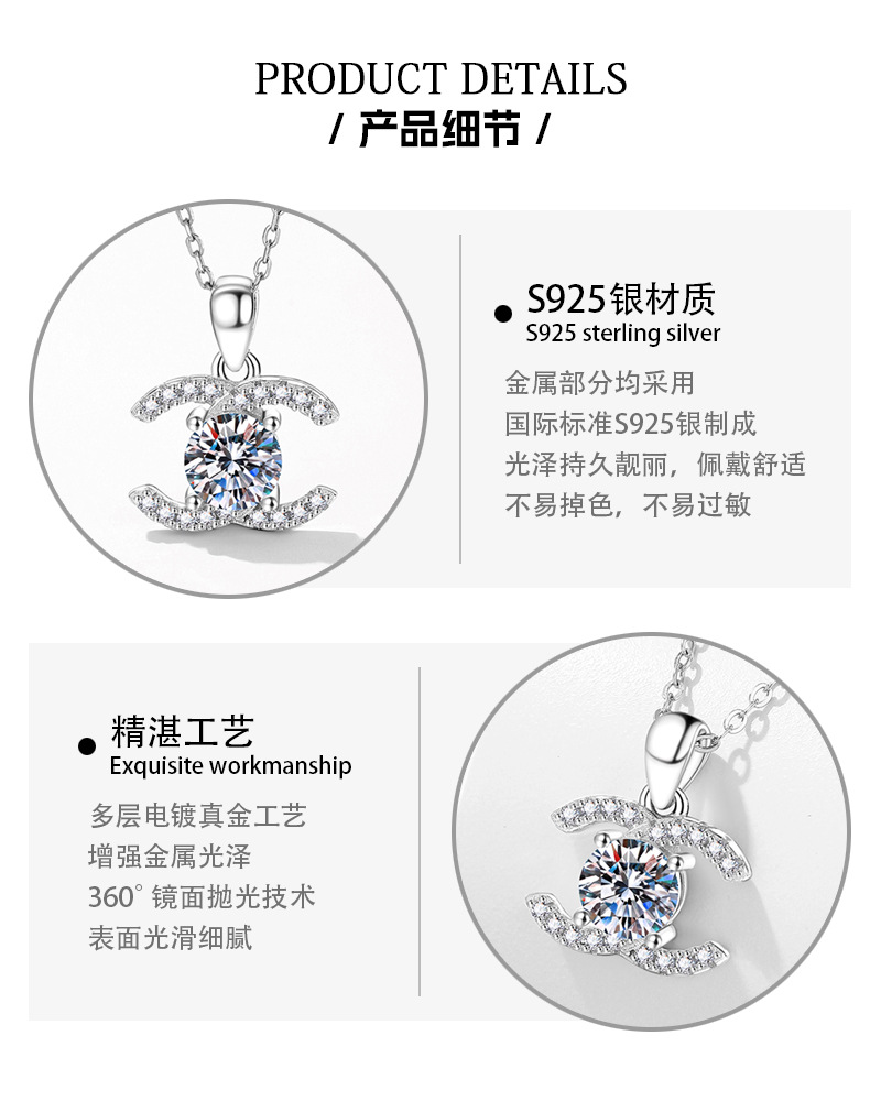 Трансграничная прямая трансляция s925 стерлингового серебра ожерелье Moxasi маленький ароматный ветер продвинутый смысл 1 карат D цвет Мозамбик ожерелье оптом