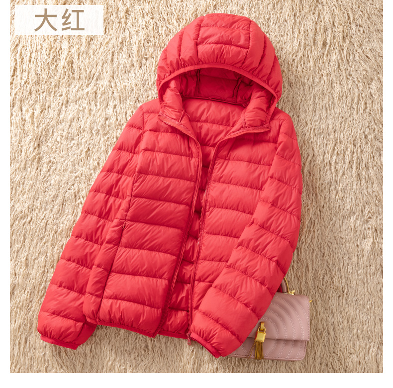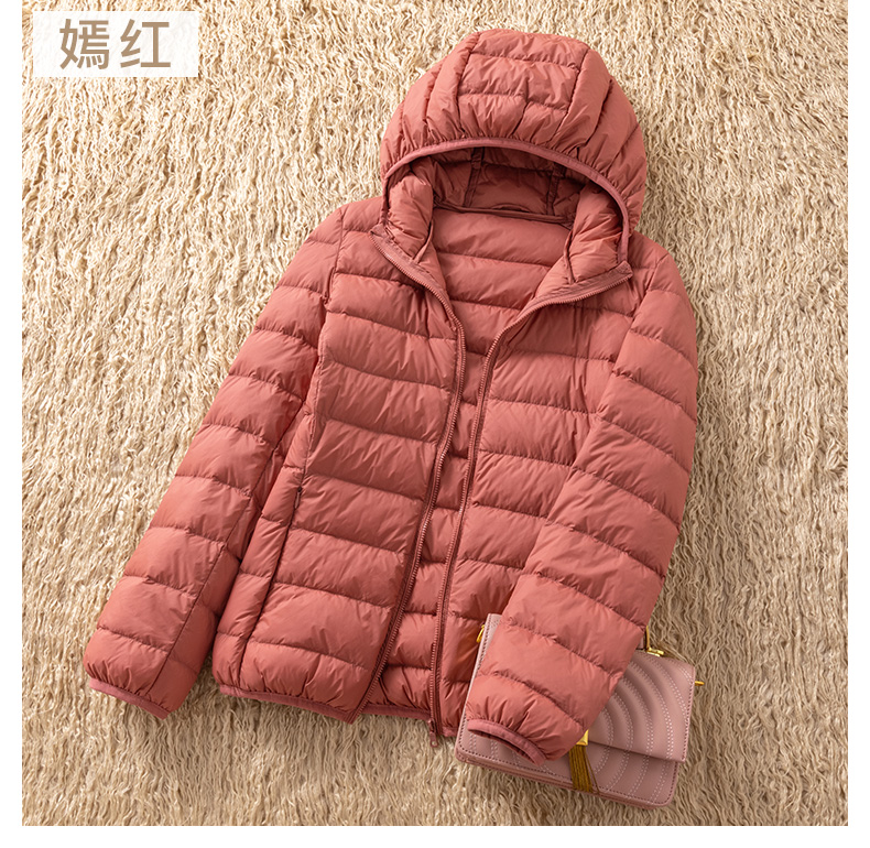 90 белая утка пуховик легкий женский короткий 2025 новый легкий теплый модный легкий тонкий куртка с капюшоном