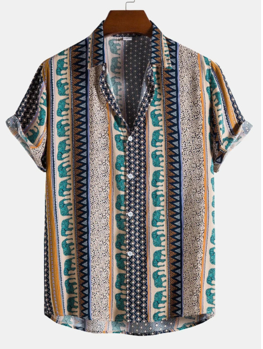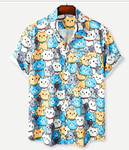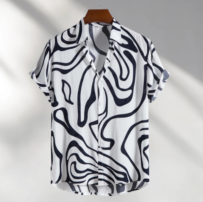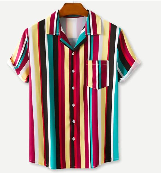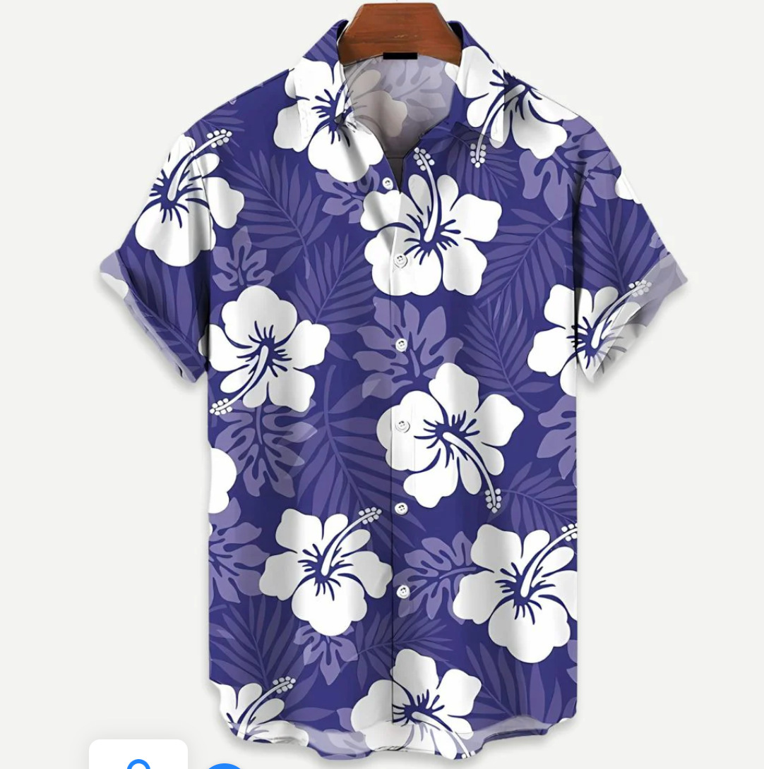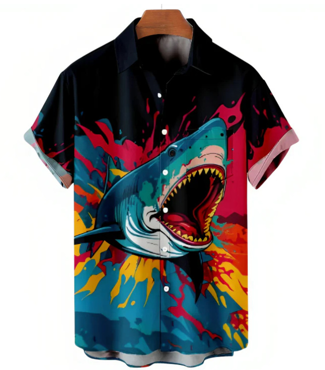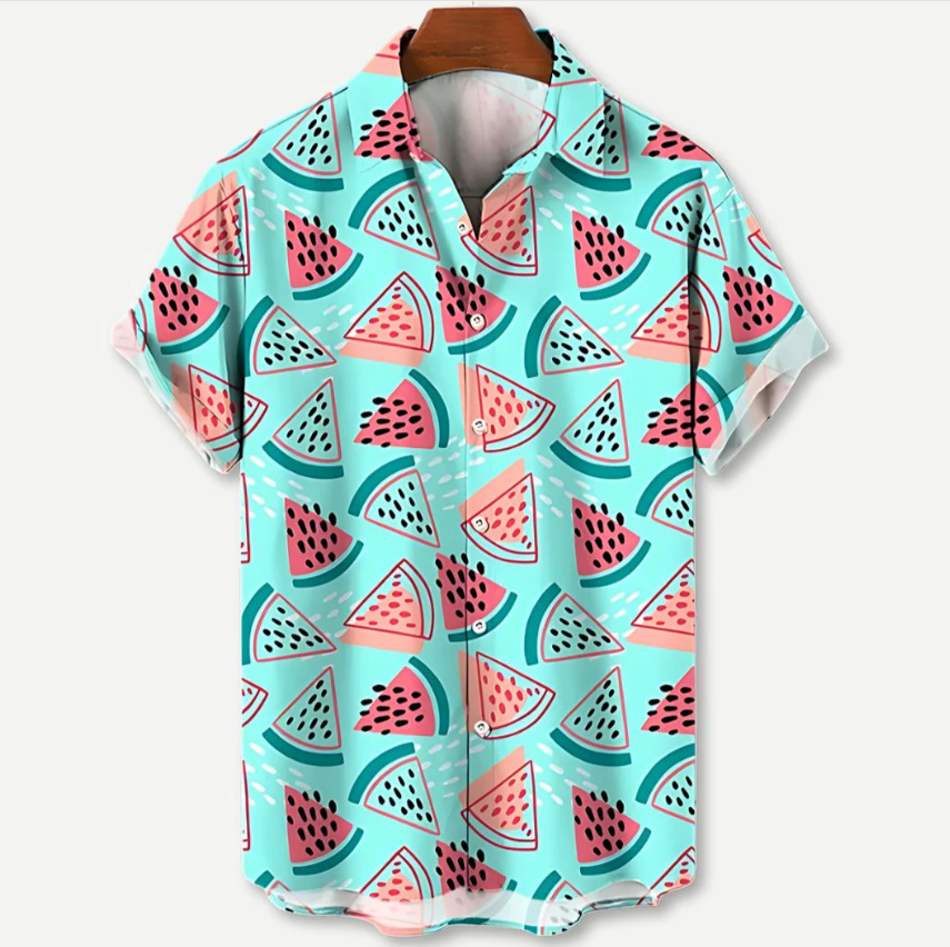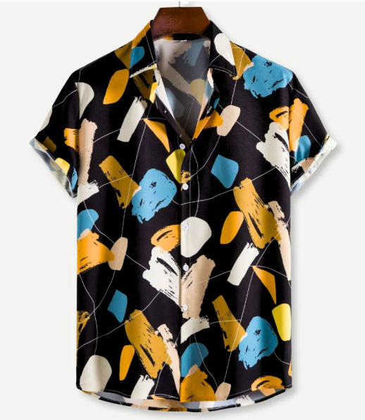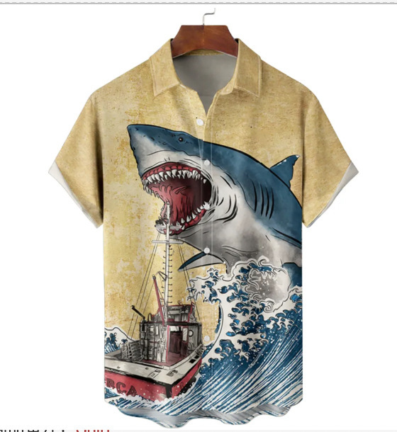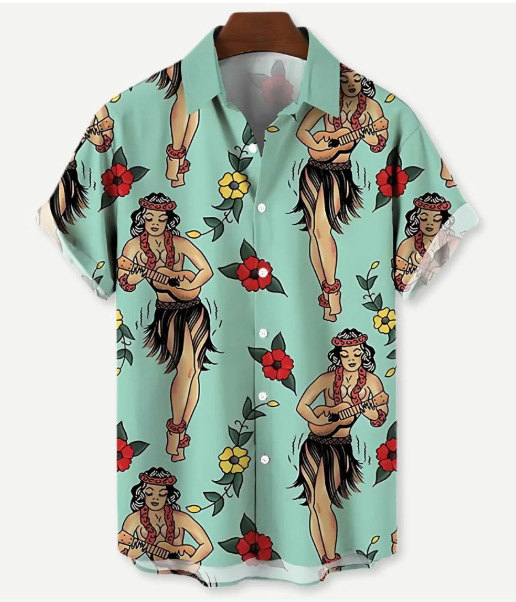 Европейская и американская трансграничная торговля: популярная рубашка с коротким рукавом и воротником, с 3D-цифровым принтом в гавайском стиле, с элементами цветочного и полосатого узоров.