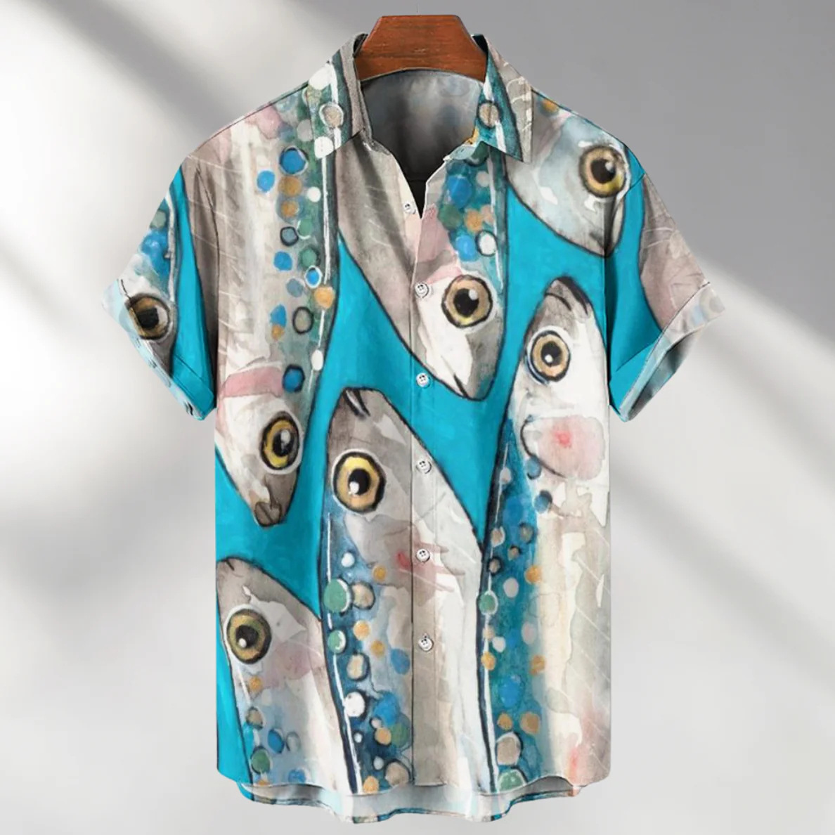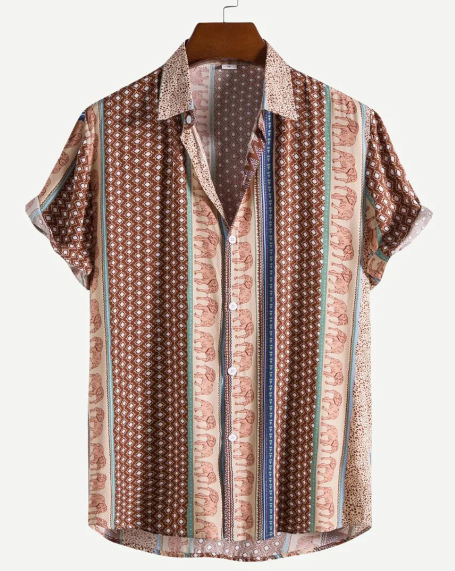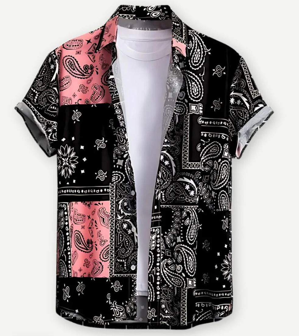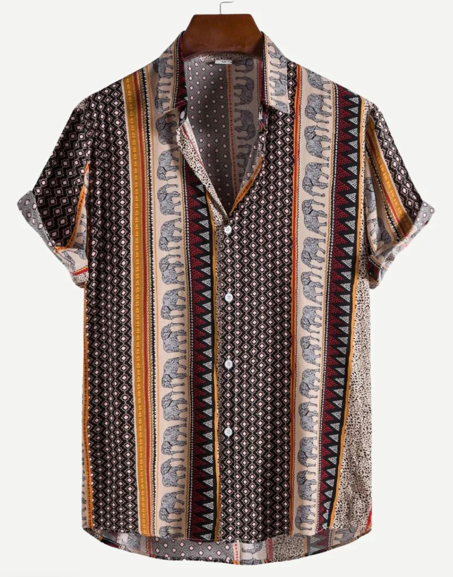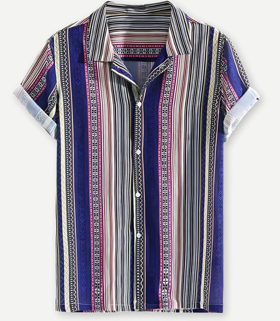 Европейская и американская трансграничная торговля: популярная рубашка с коротким рукавом и воротником, с 3D-цифровым принтом в гавайском стиле, с элементами цветочного и полосатого узоров.