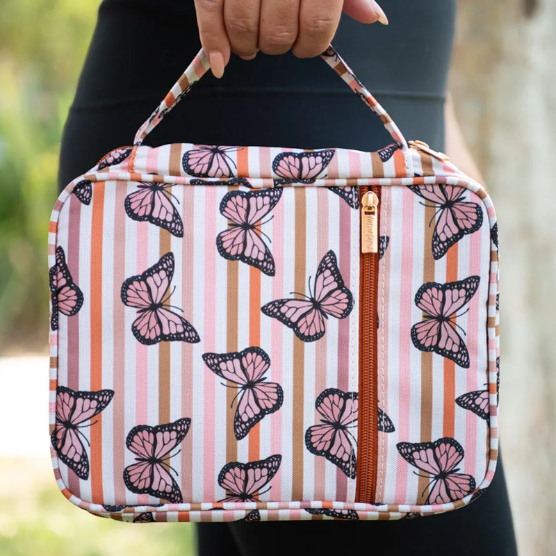 Новый женский рюкзак с летним цветочным принтом и бабочками, водонепроницаемая сумка-тоут из полиэстера с ручкой, легкая и удобная в использовании.