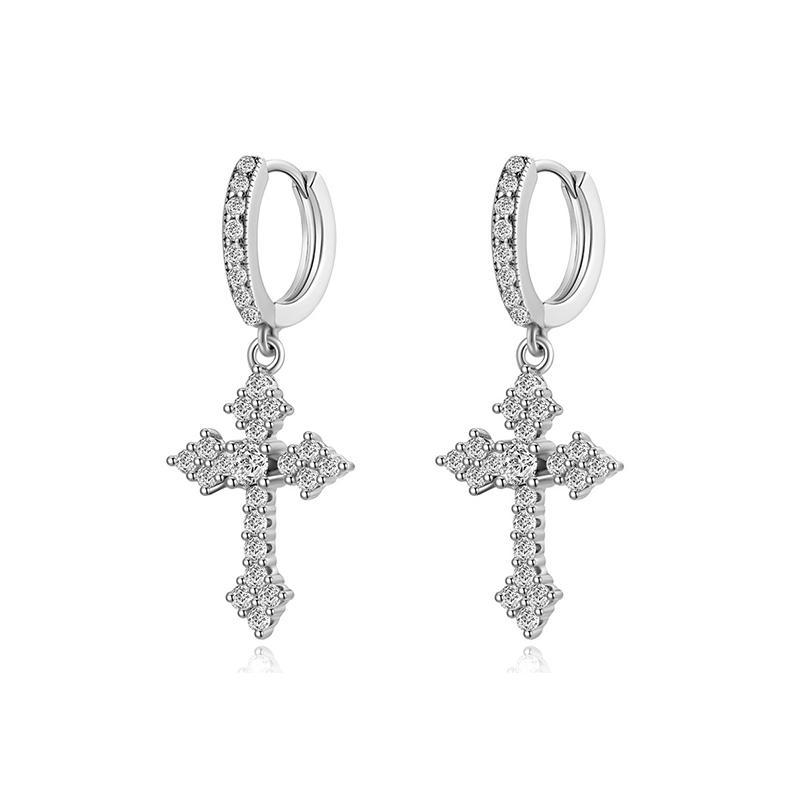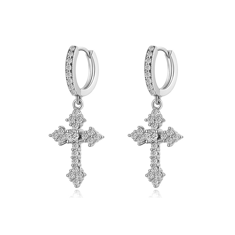 Микропокрытые циркониевые серьги-клипсы с ромбами и крестом без пирсинга, мужские серьги в европейском и американском стиле, модные женские серьги