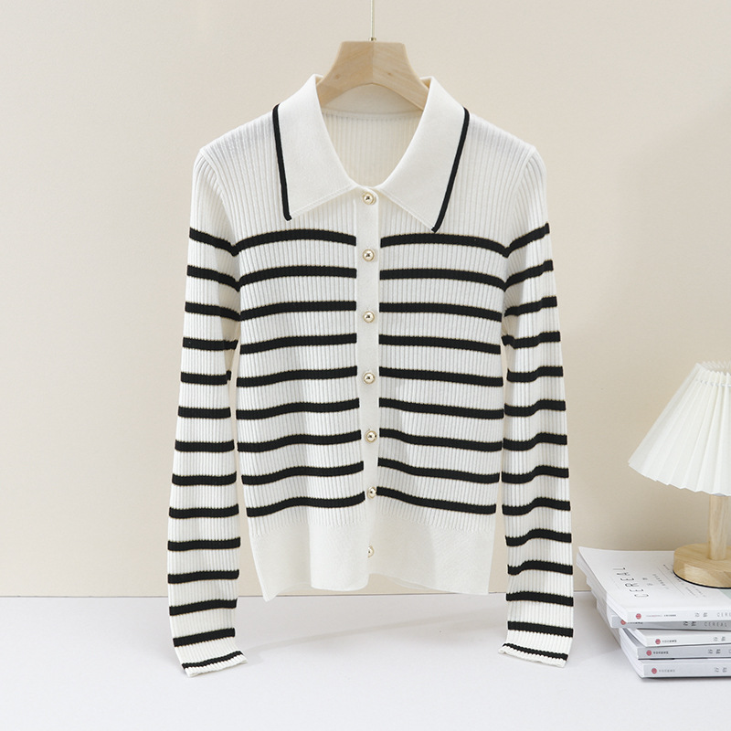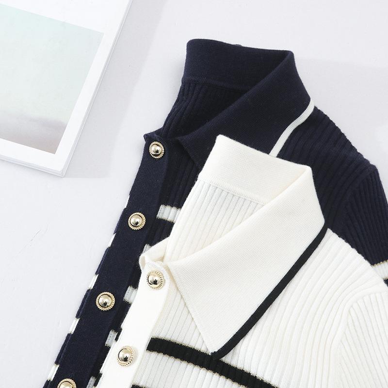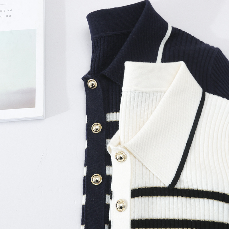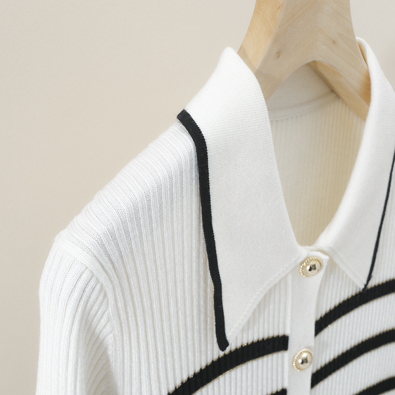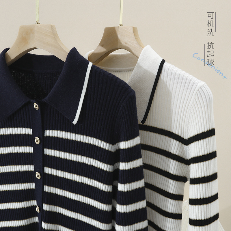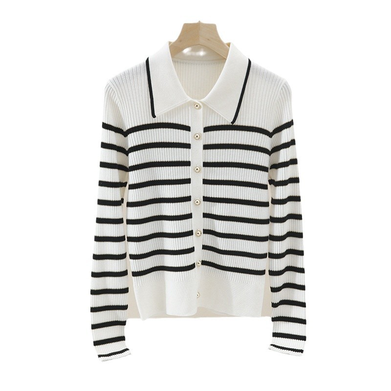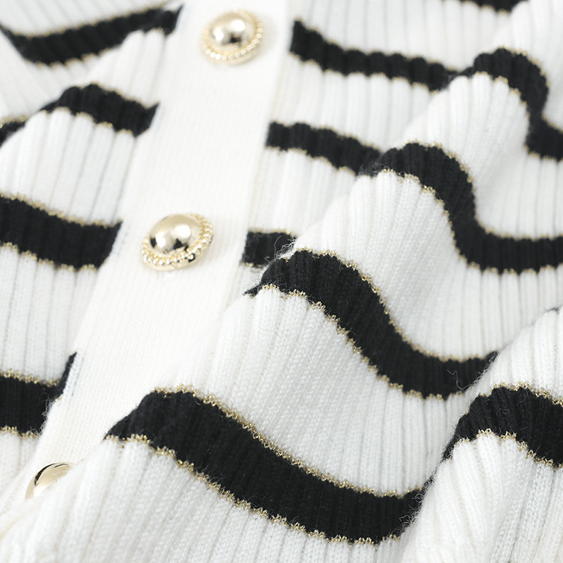 Машинная стирка, можно стирать в машине, свитер в стиле EP, коллекция осень-зима 2026, новый, с цветовыми блоками, черно-белый полосатый, элегантный, с V-образным вырезом, вязаный кардиган-поло