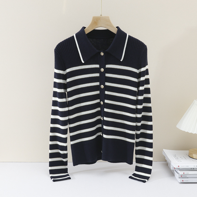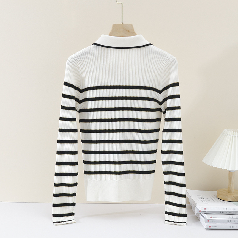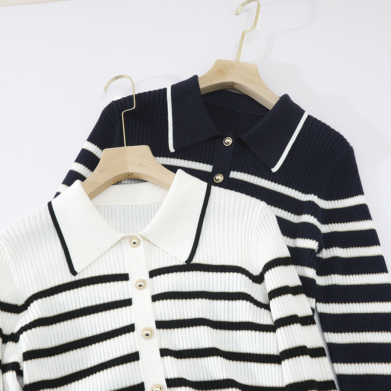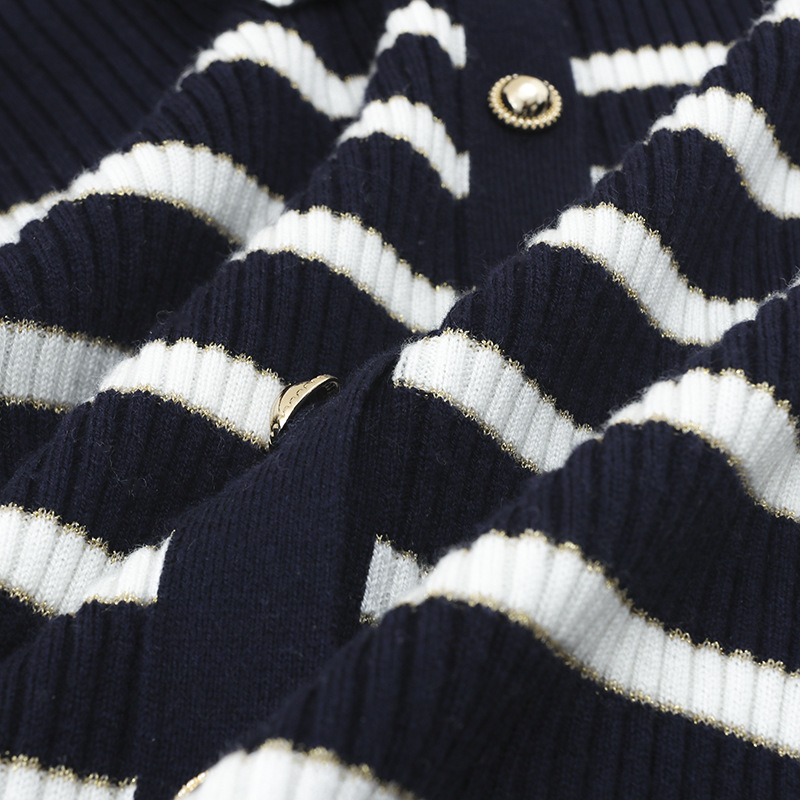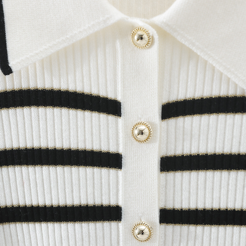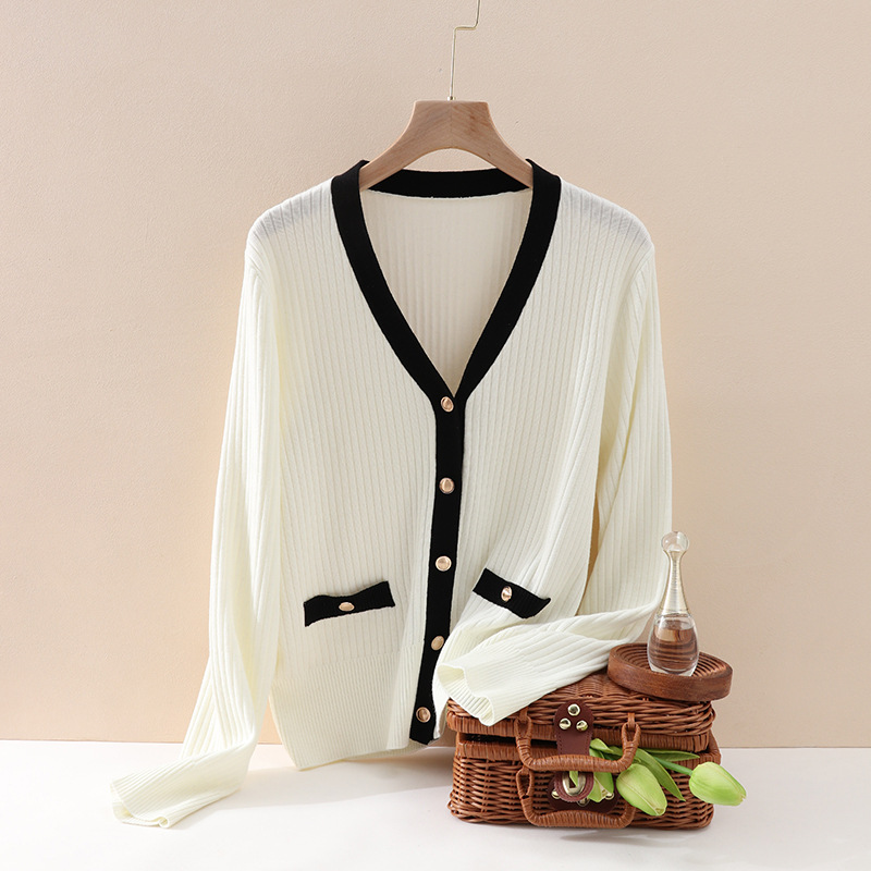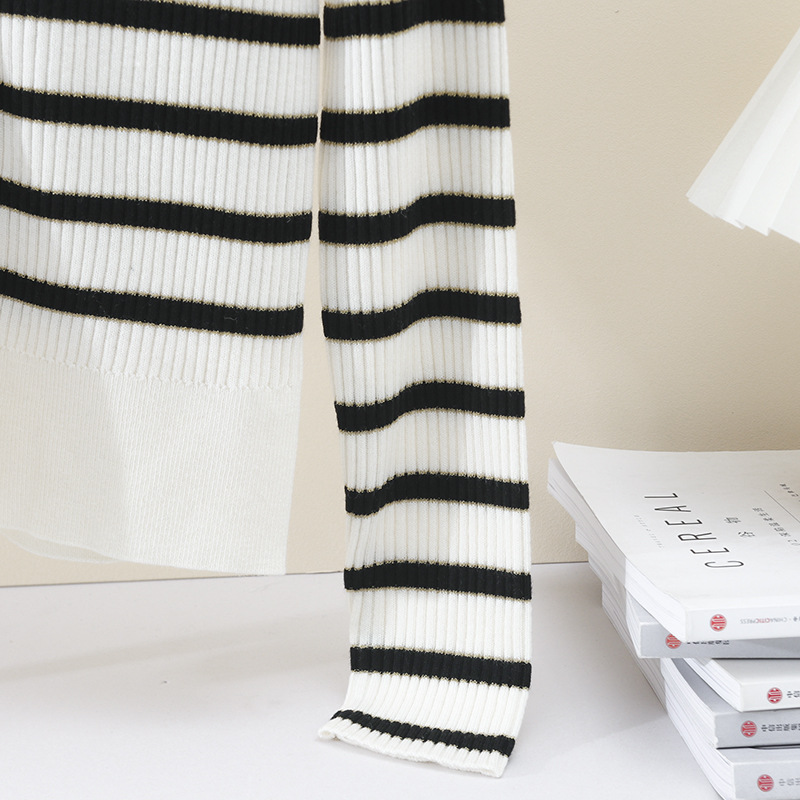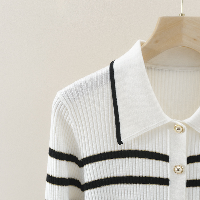 Машинная стирка, можно стирать в машине, свитер в стиле EP, коллекция осень-зима 2026, новый, с цветовыми блоками, черно-белый полосатый, элегантный, с V-образным вырезом, вязаный кардиган-поло