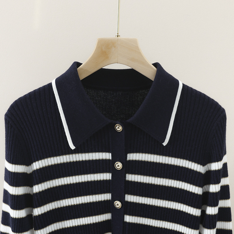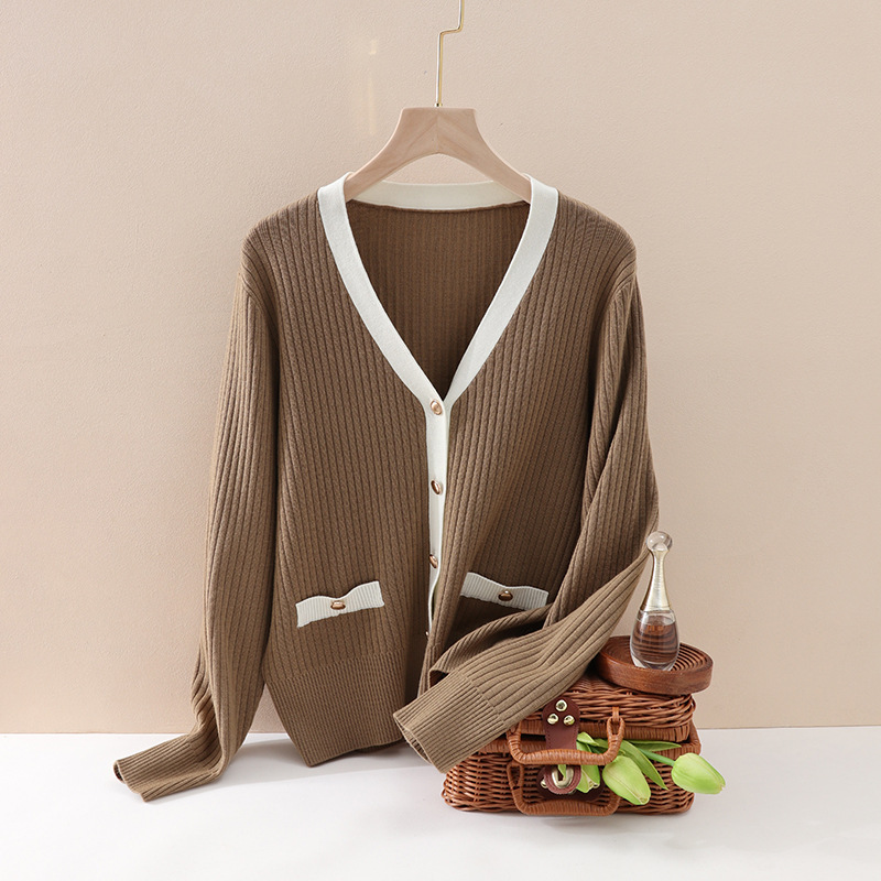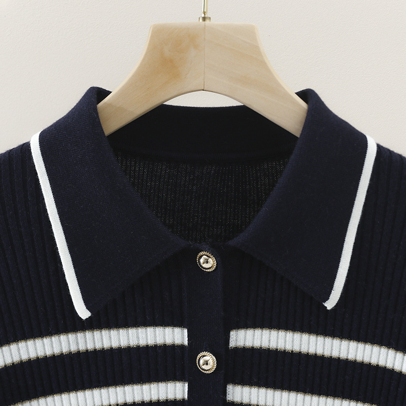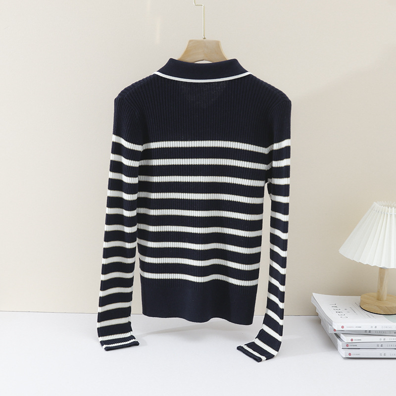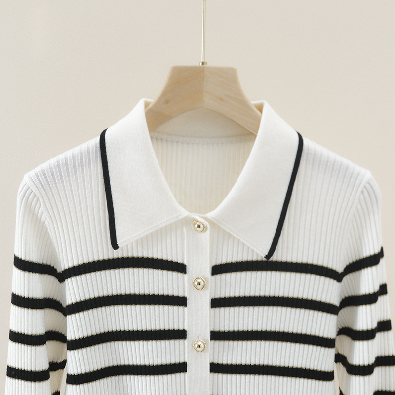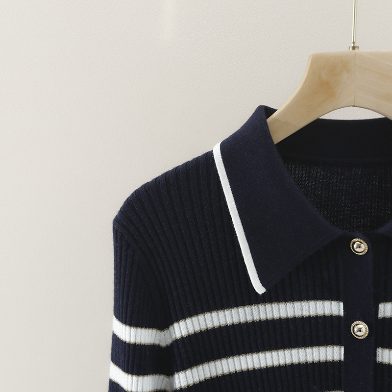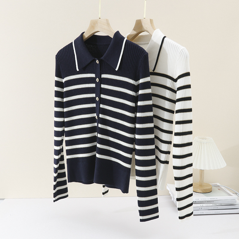 Машинная стирка, можно стирать в машине, свитер в стиле EP, коллекция осень-зима 2026, новый, с цветовыми блоками, черно-белый полосатый, элегантный, с V-образным вырезом, вязаный кардиган-поло