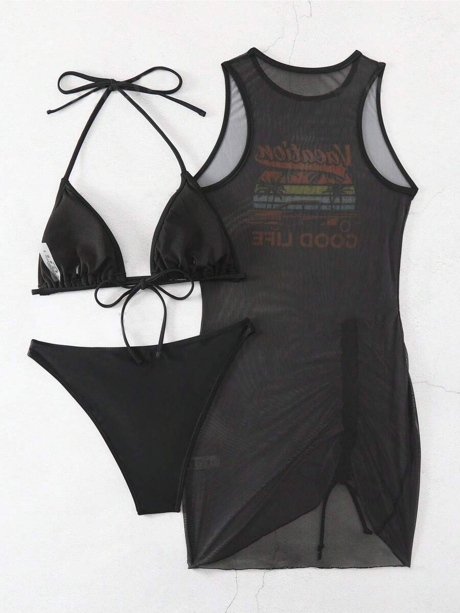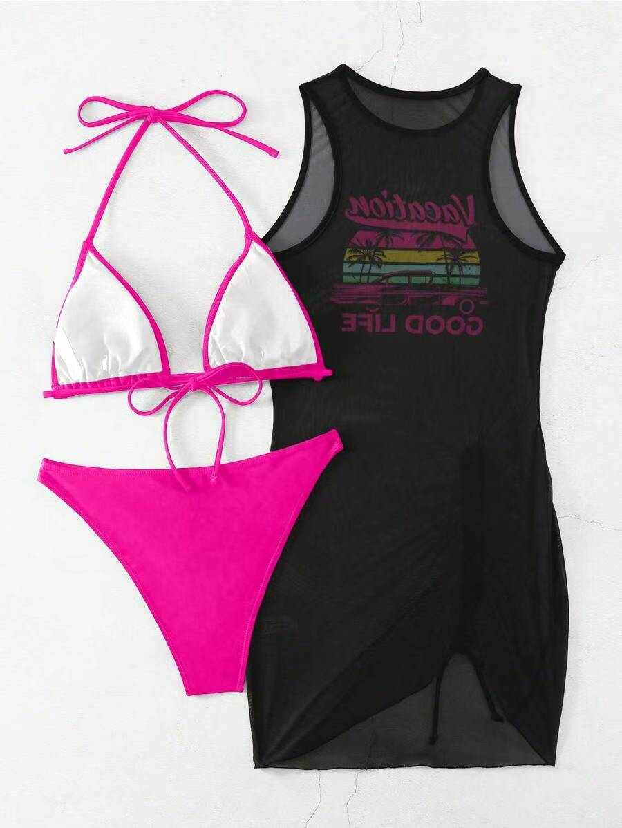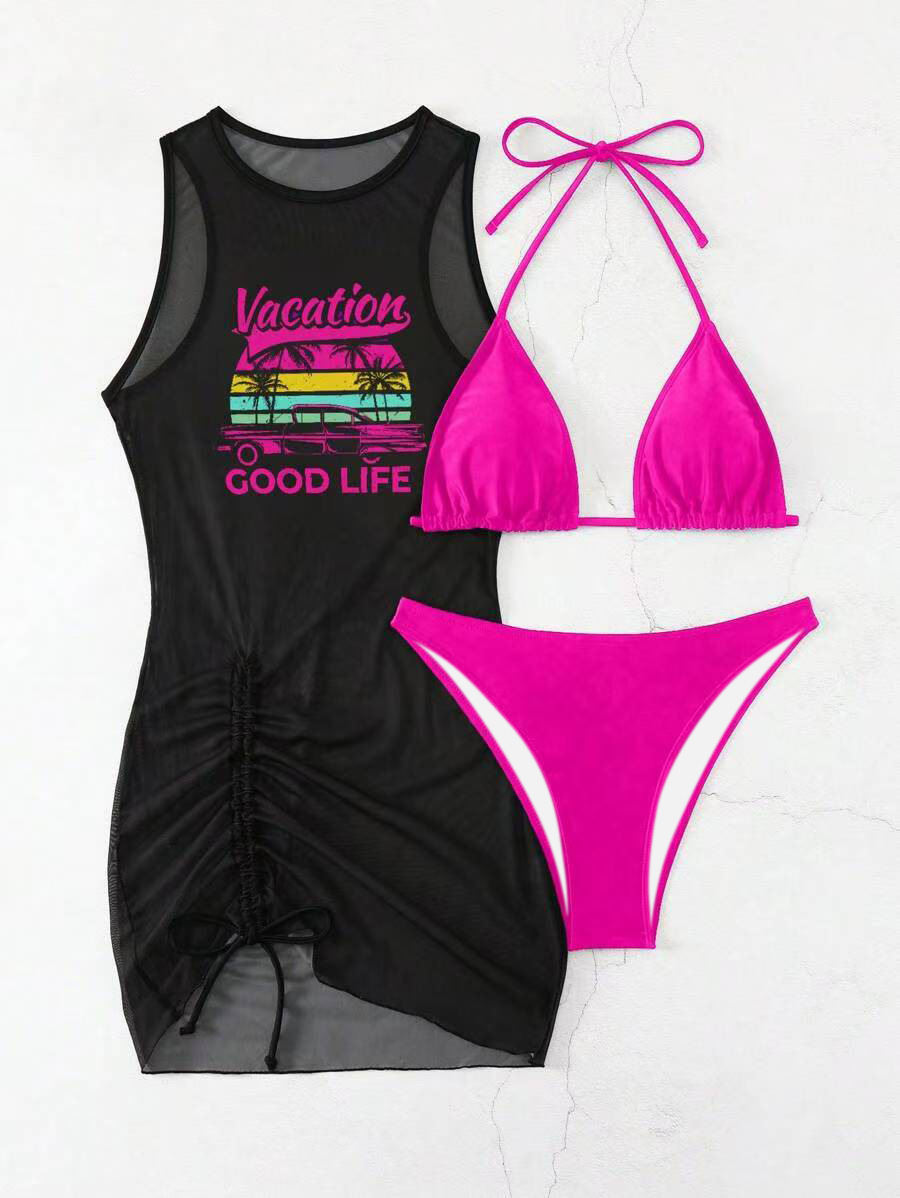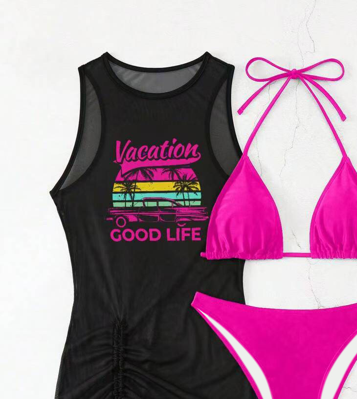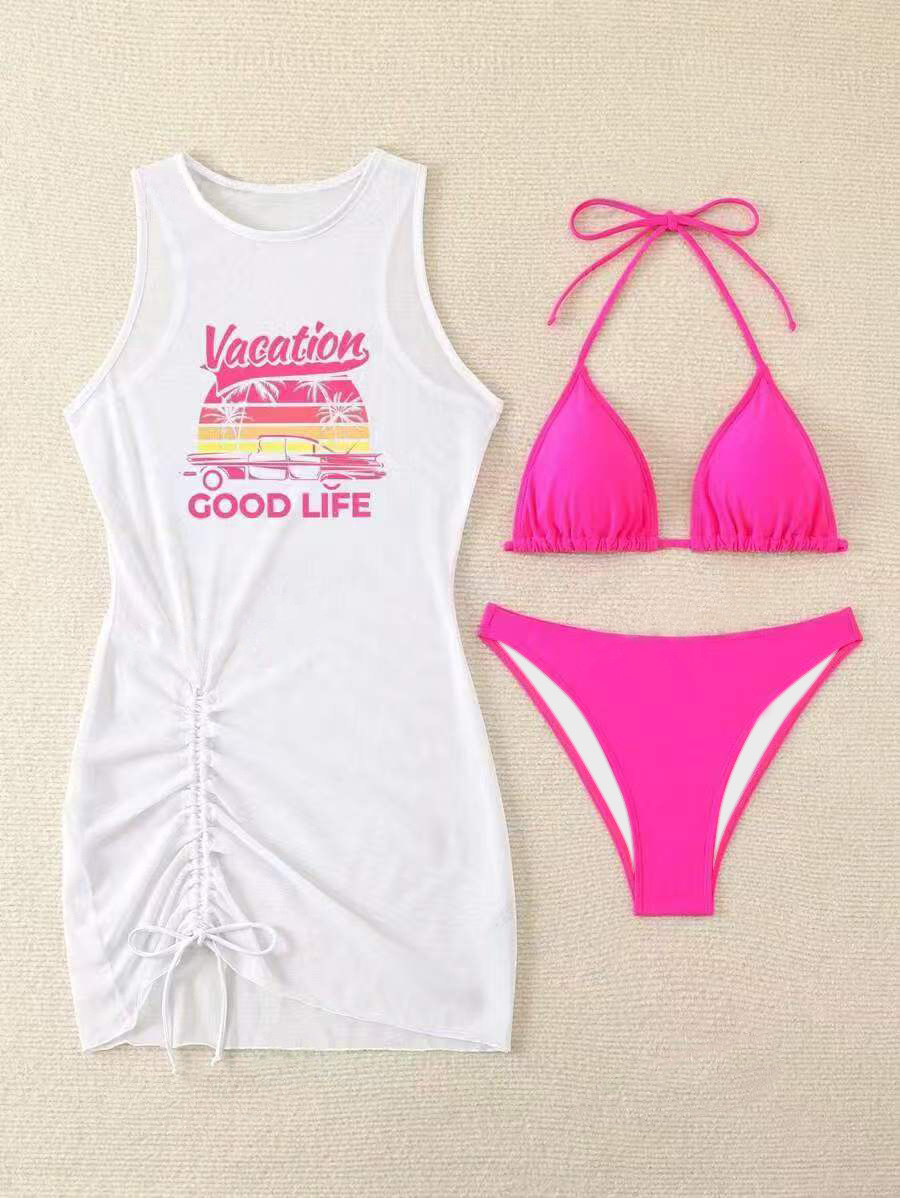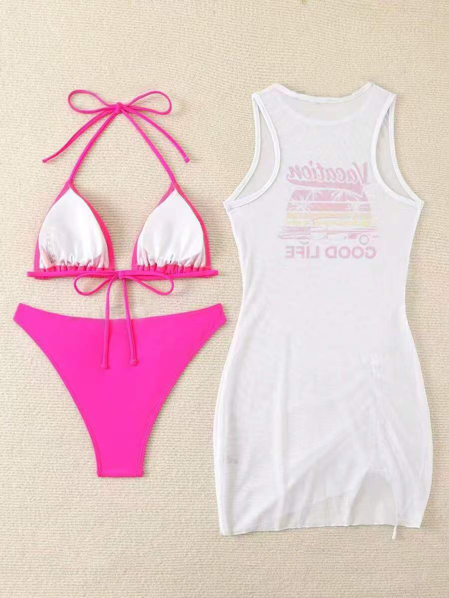 Европейская и американская трансграничная мода бикини bikini тройной костюм купальник женский сексуальный позиционный принт для пляжного отдыха