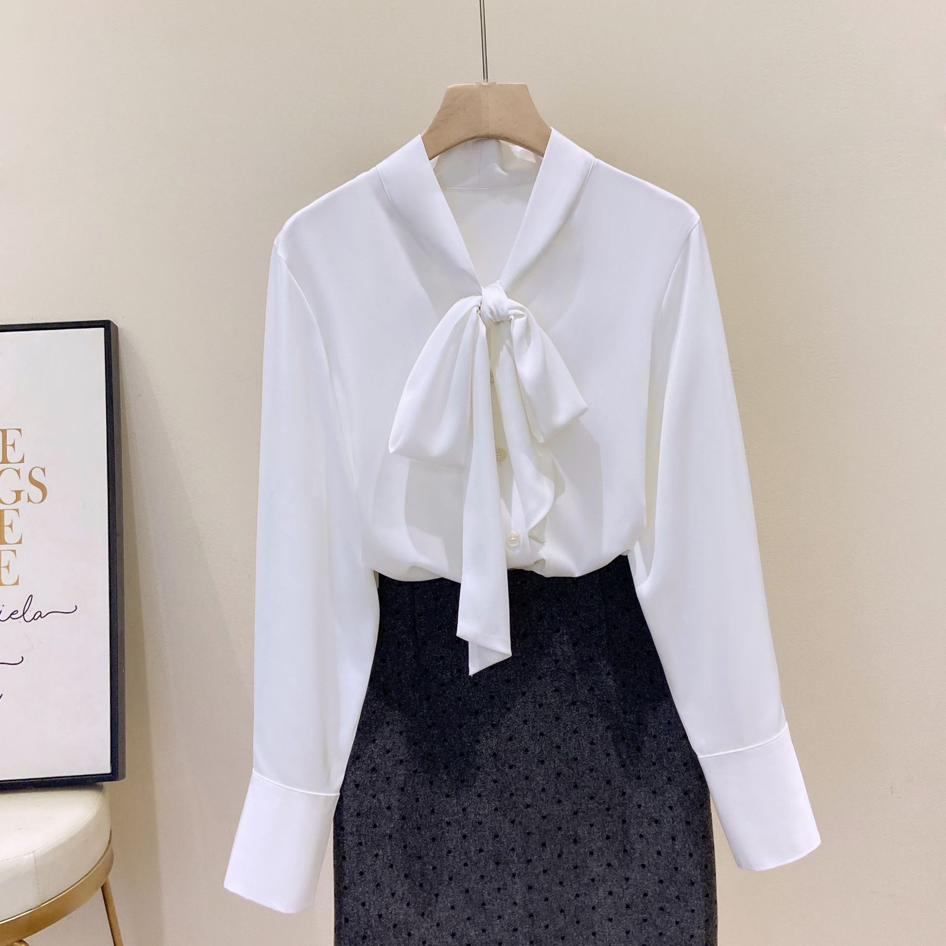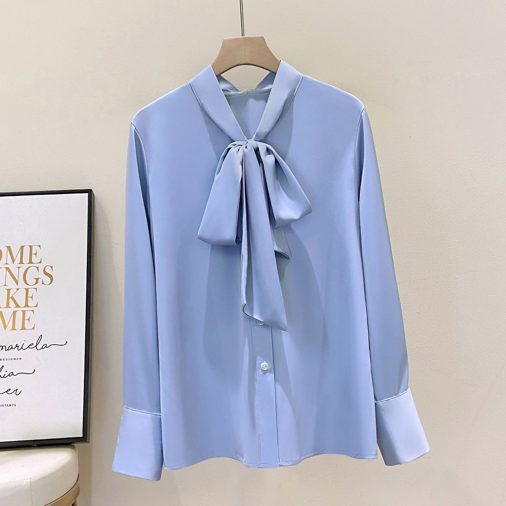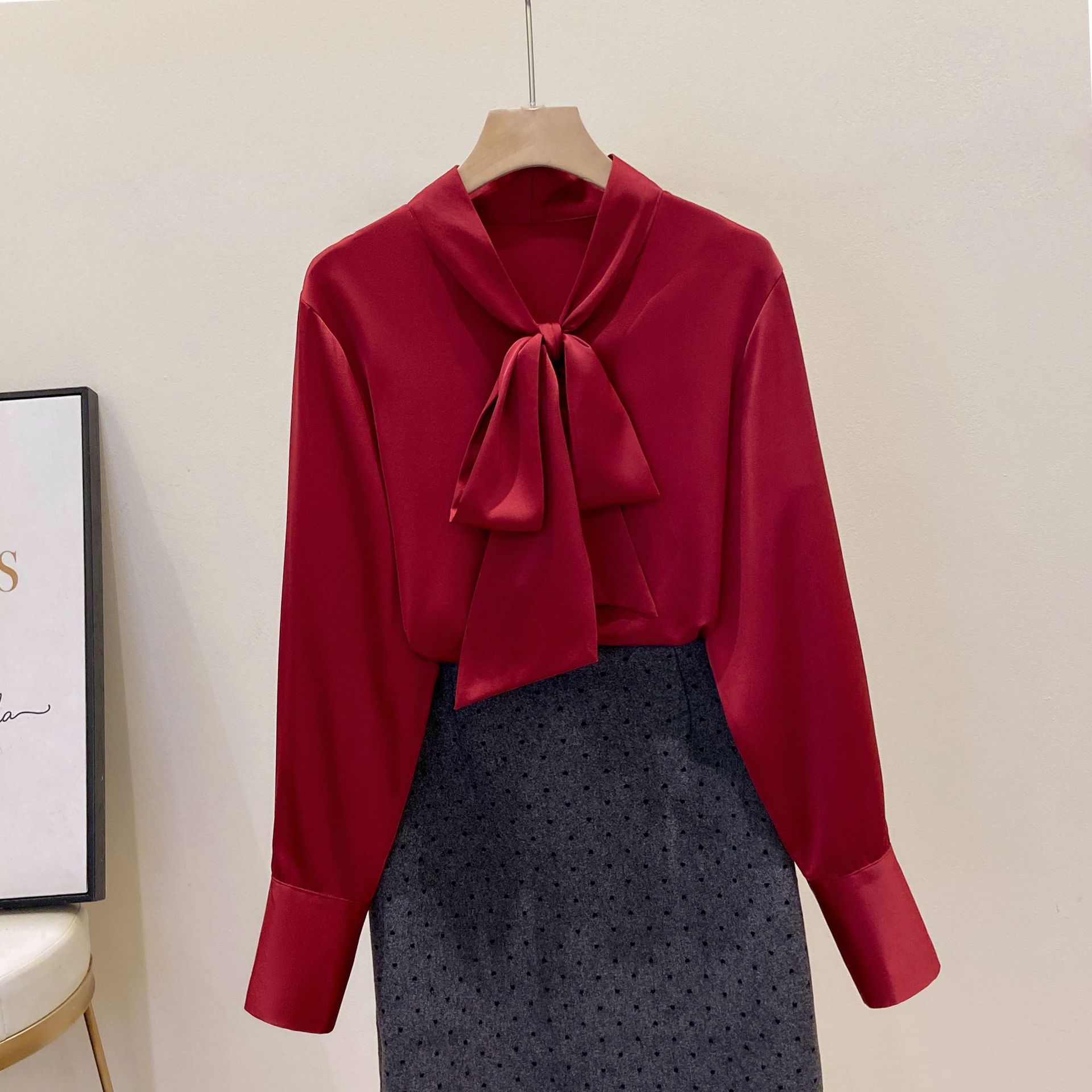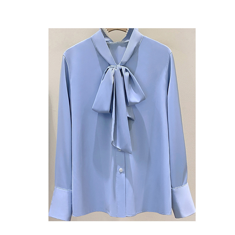 Большой размер женский свободный шелковый шарф с воротником-бабочкой рубашка с длинными рукавами женский OL ветер шифон мягкий атласный повседневный топ 1026-B