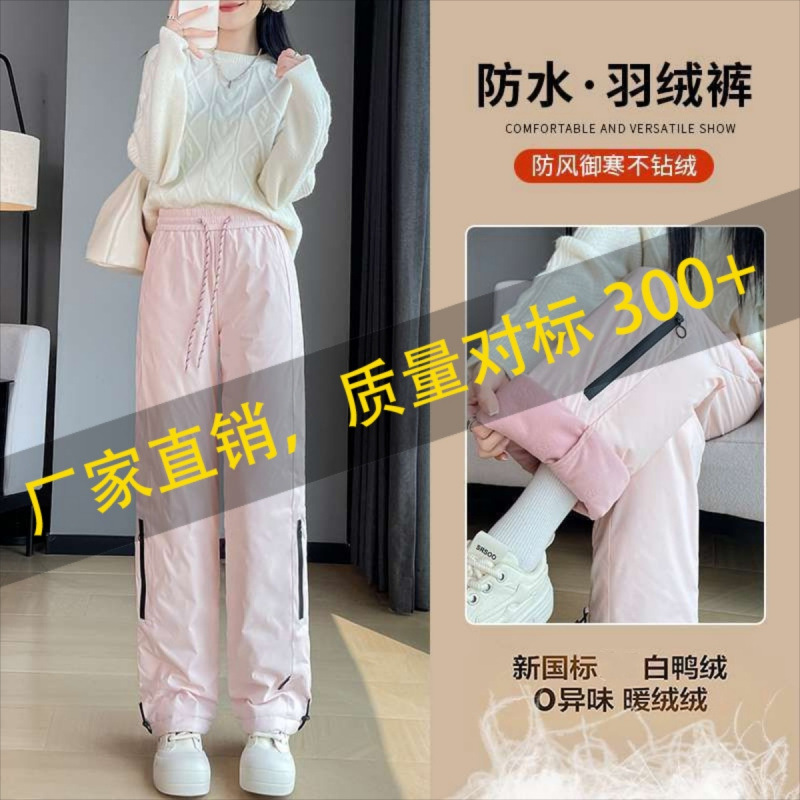 Водонепроницаемые женские штаны-пуховики для активного отдыха, новая модель зимы 2025 года, розовые, утепленные, морозостойкие, прямые штаны-джоггеры для северо-востока.
