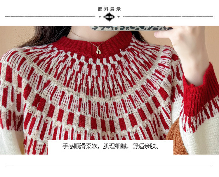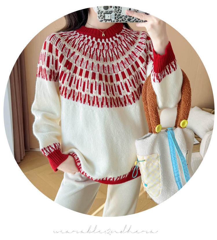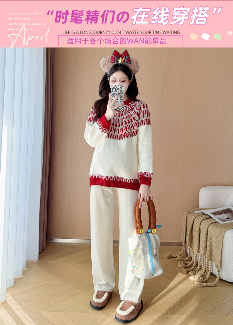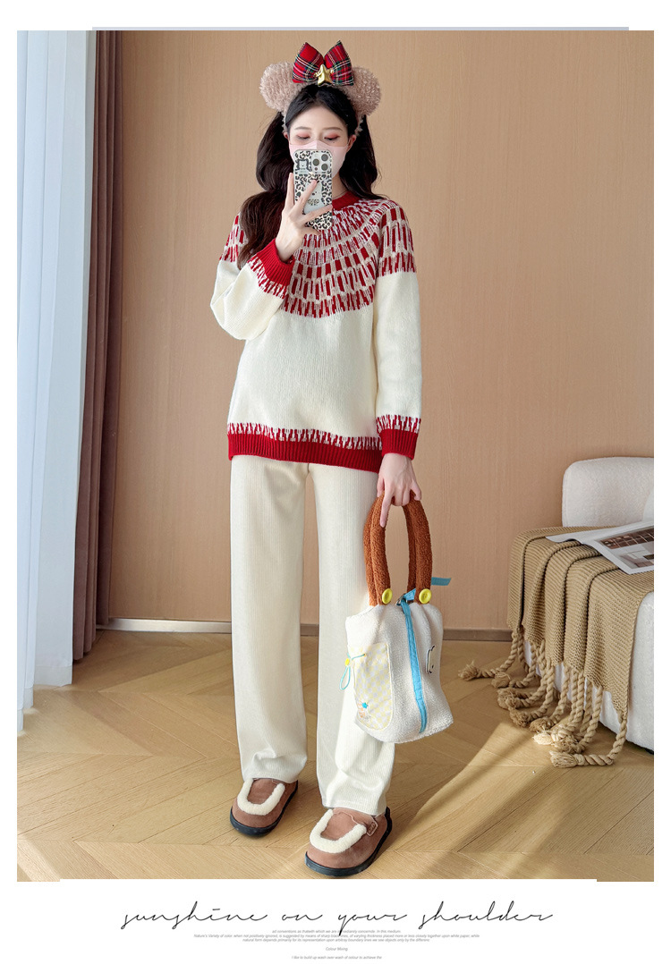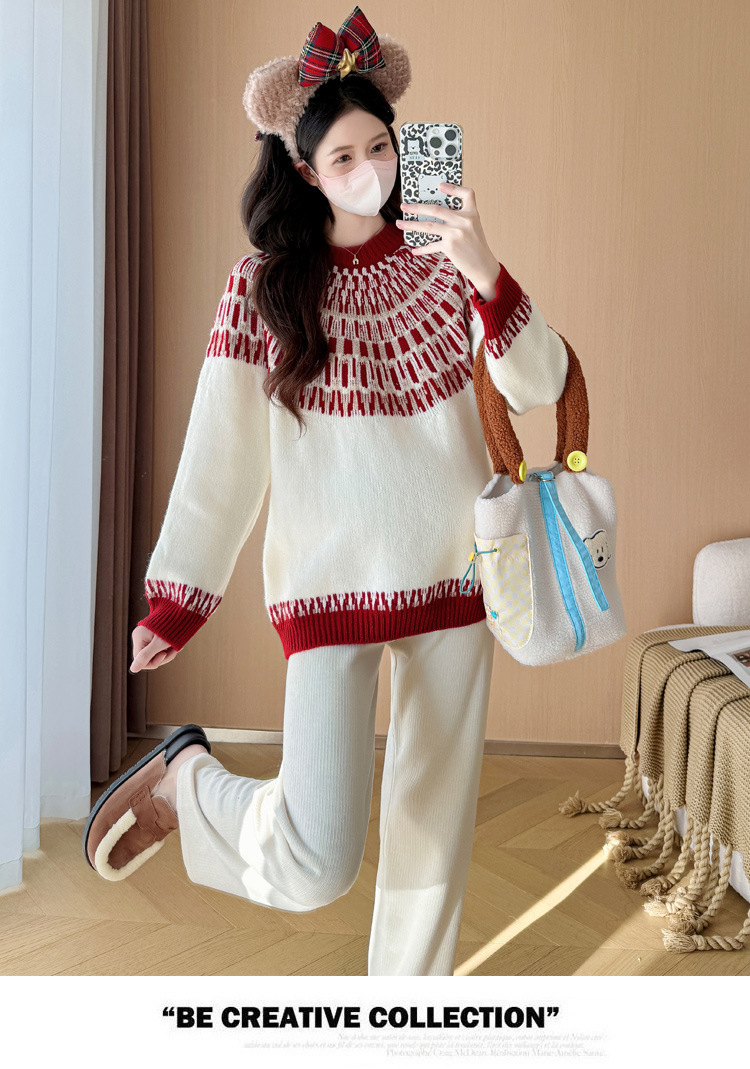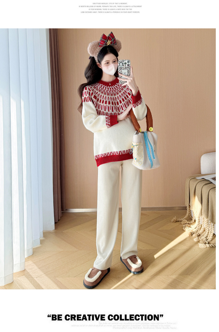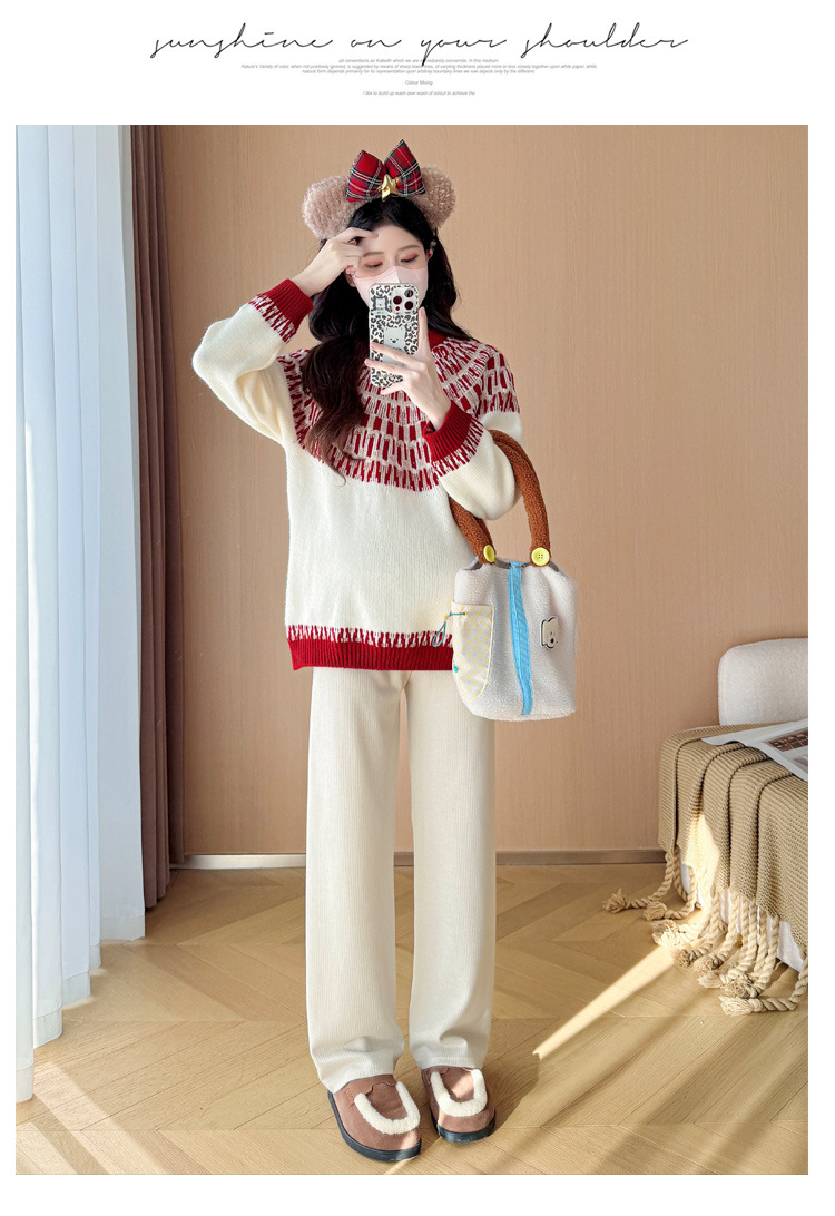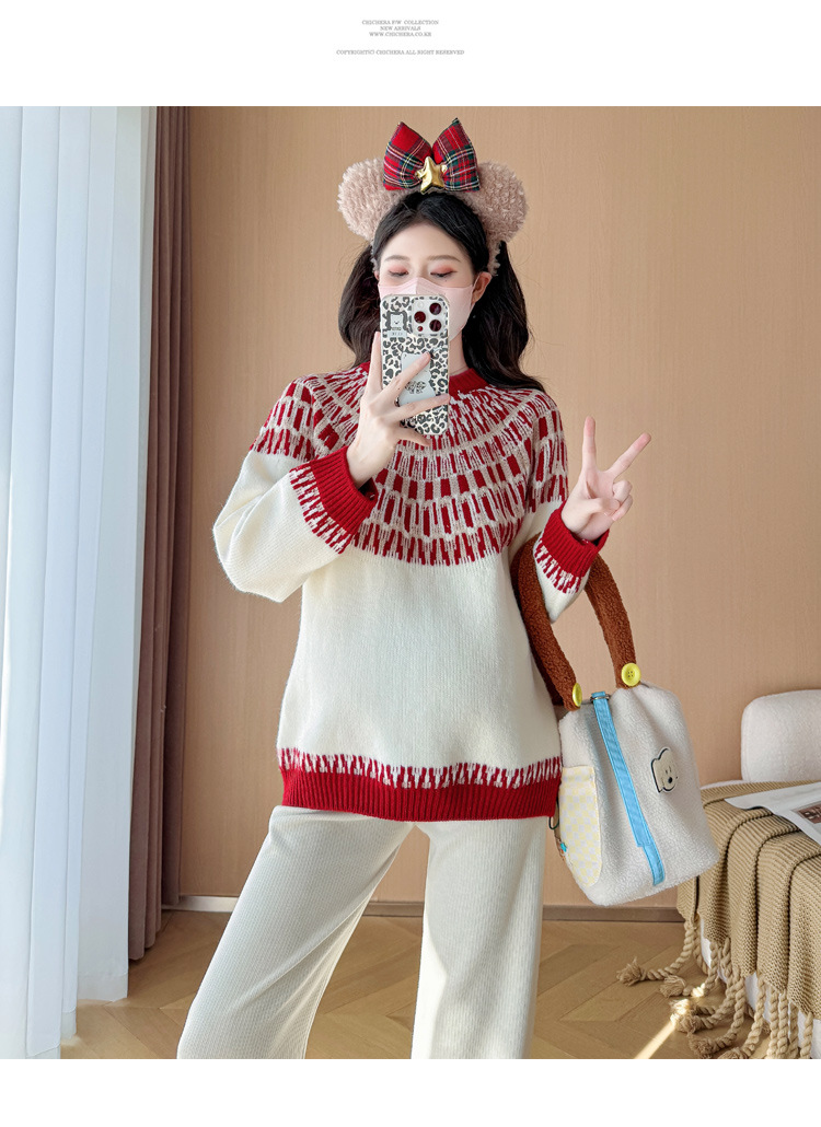 Новые осенне-зимние топы для беременных, свободный утепленный свитер в стиле ретро с жаккардовым узором для модных мам, китайский красный цвет к Новому году.