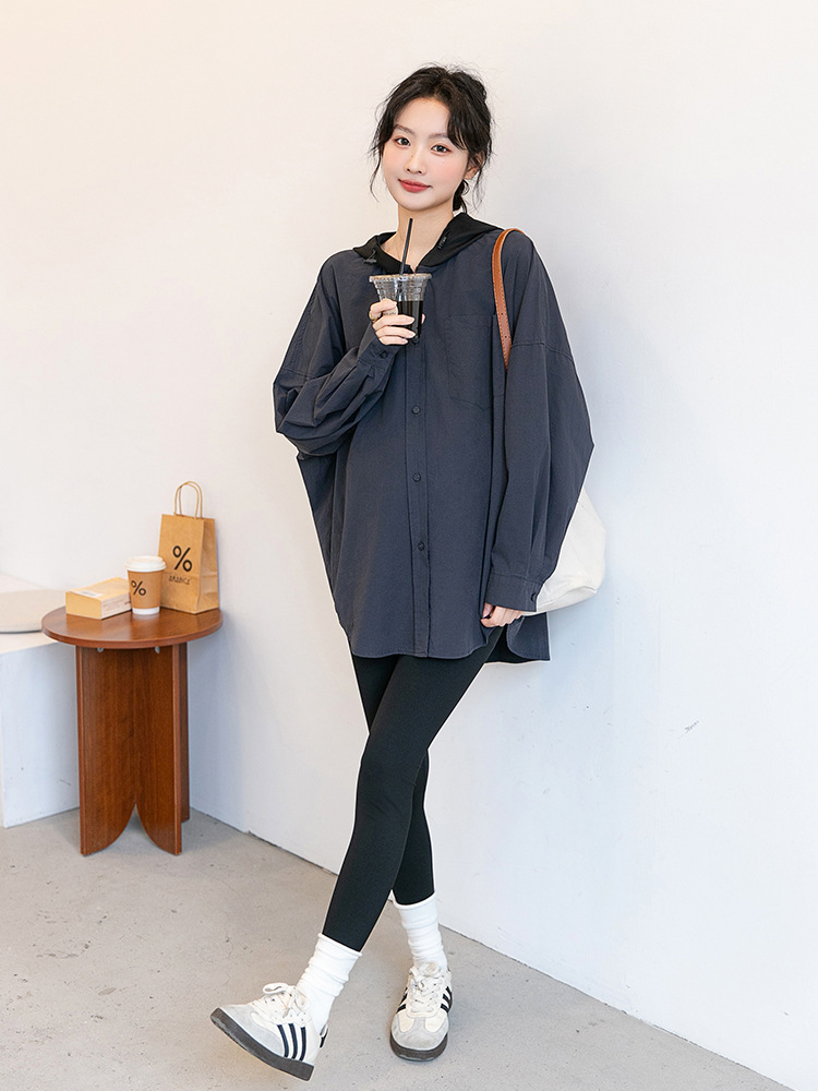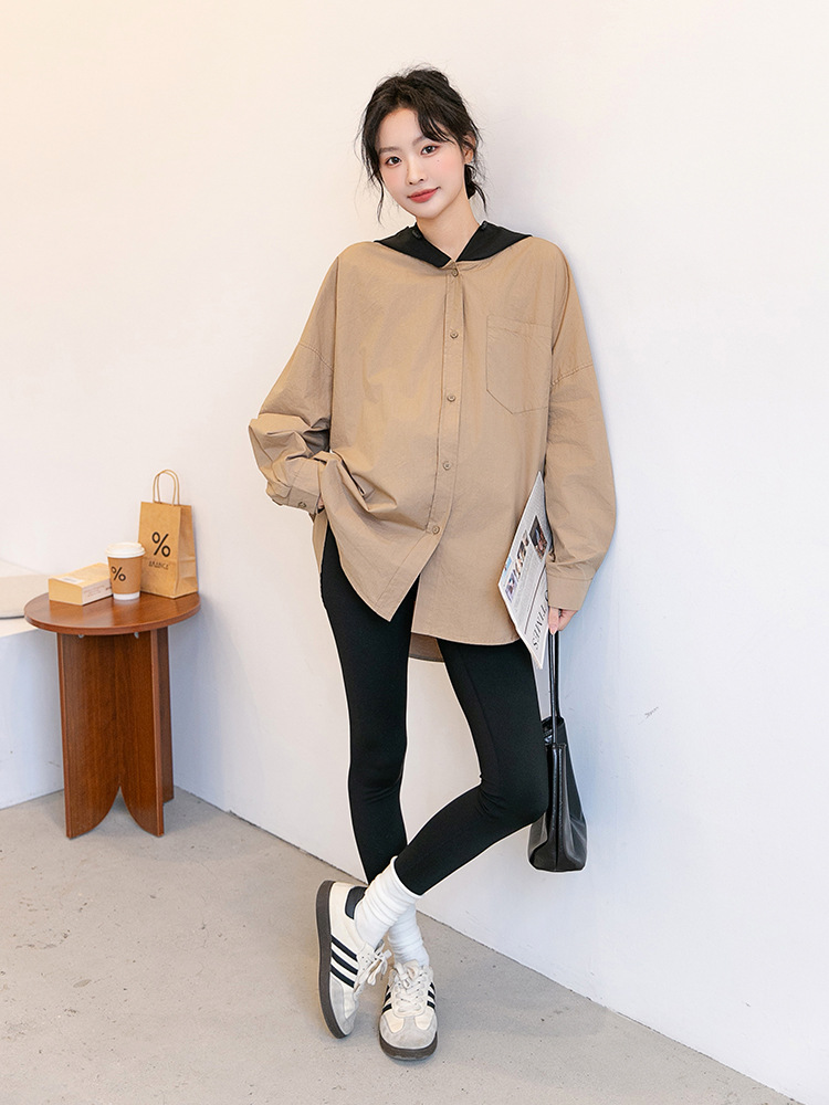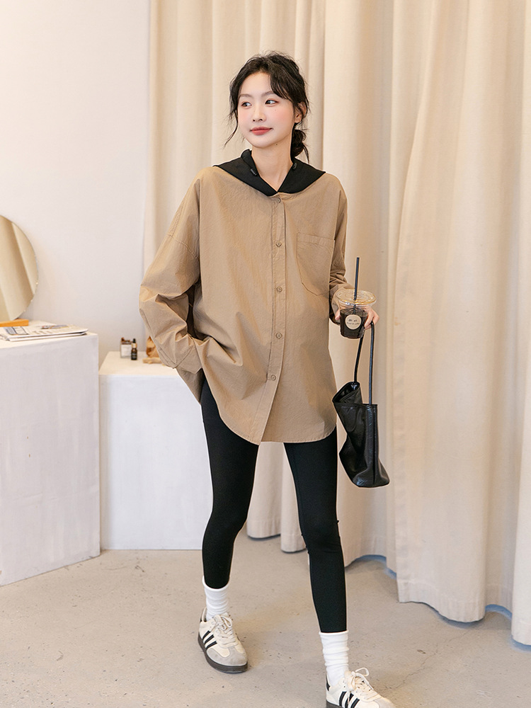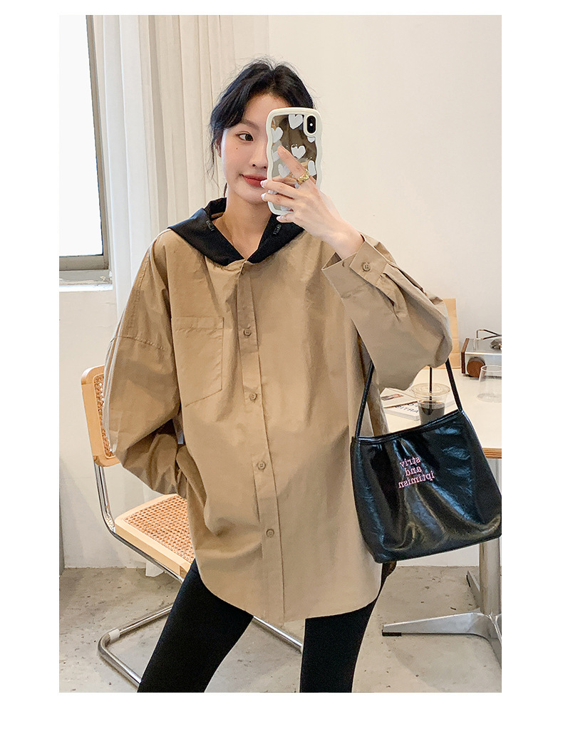 Одежда для беременных Весенняя мода цветная рубашка с капюшоном