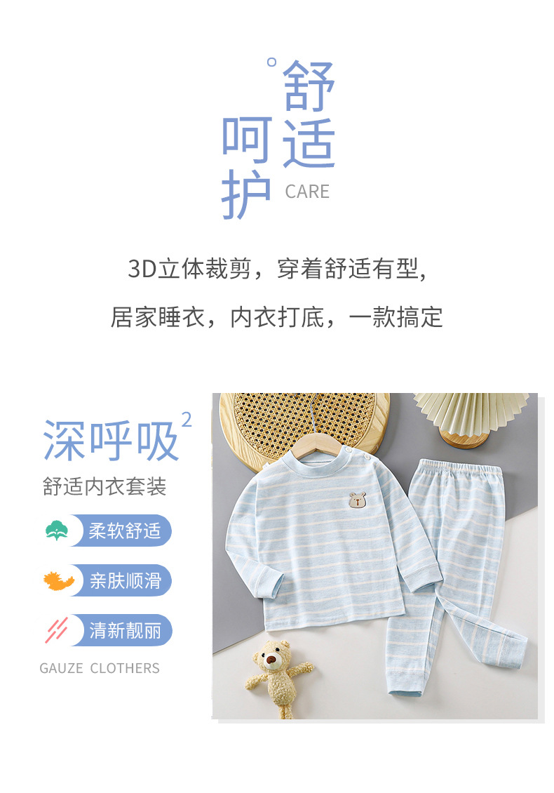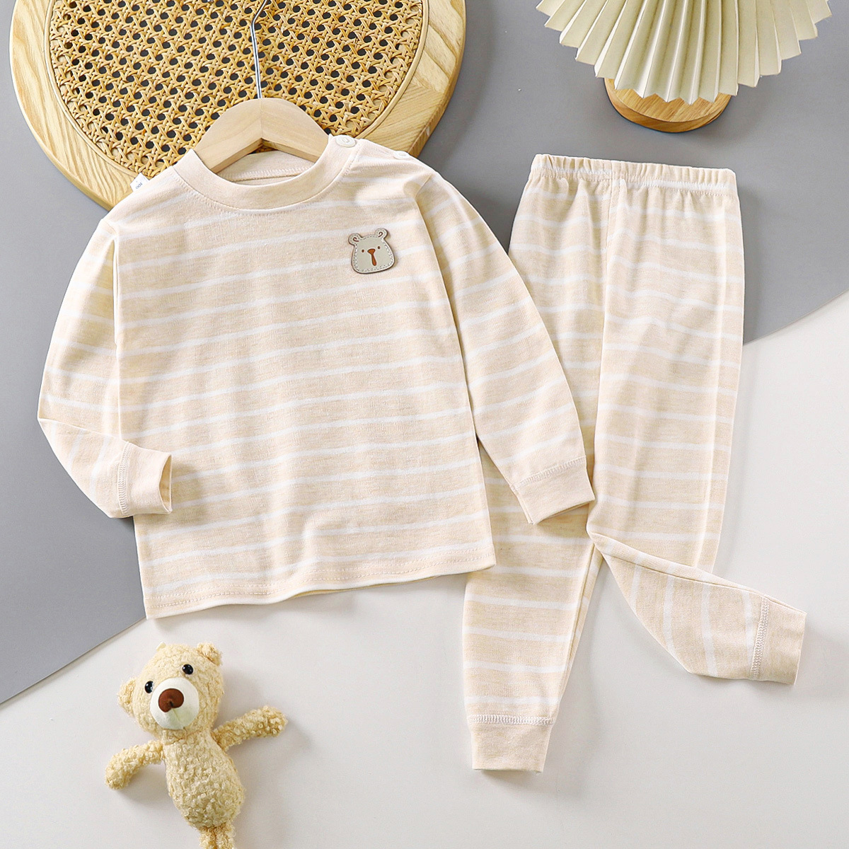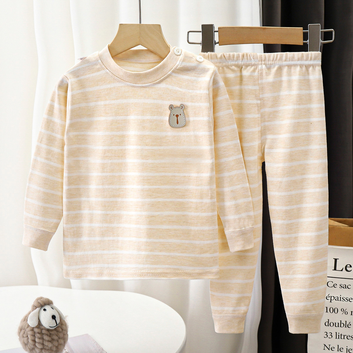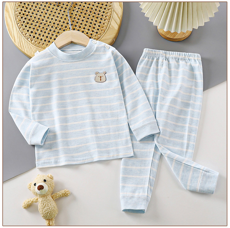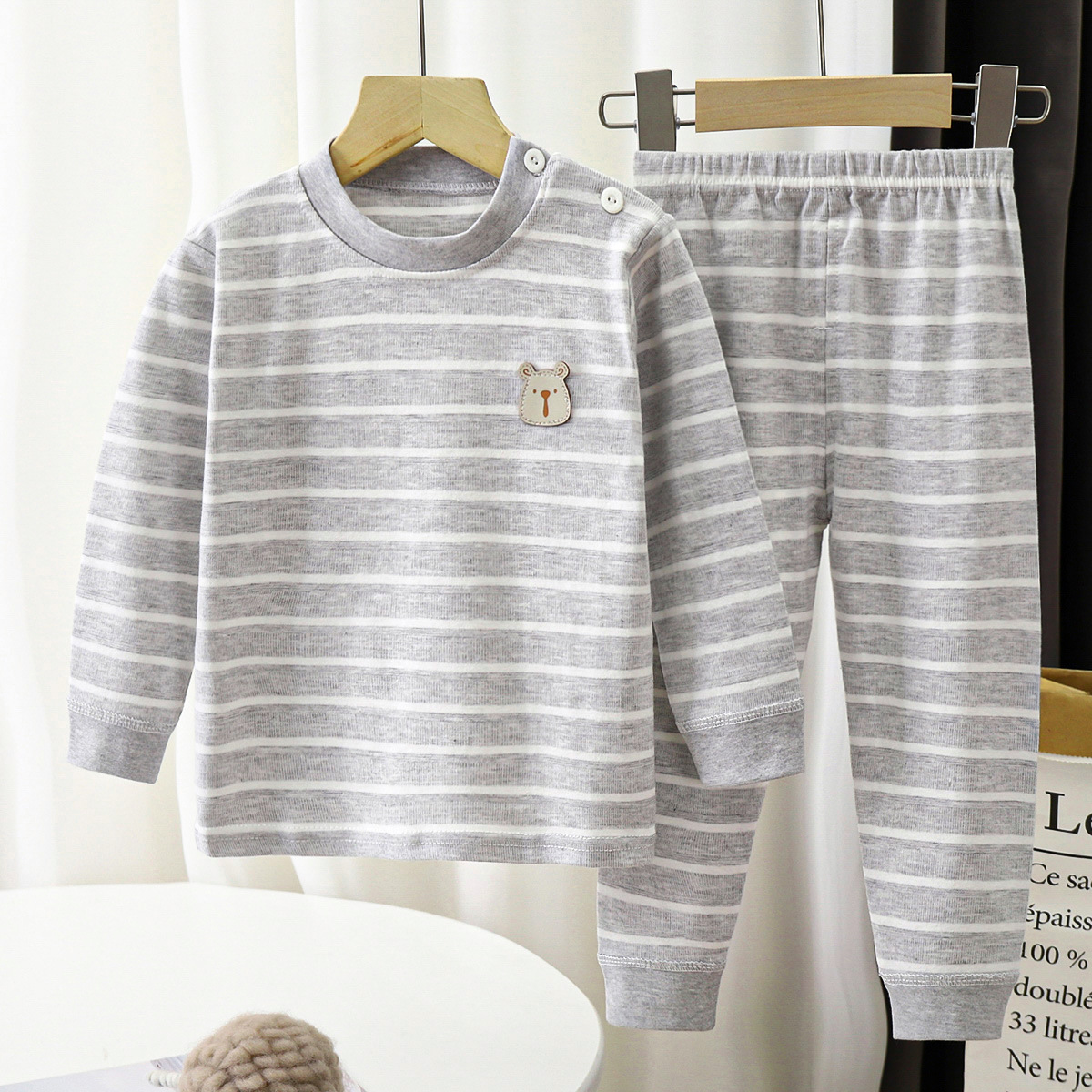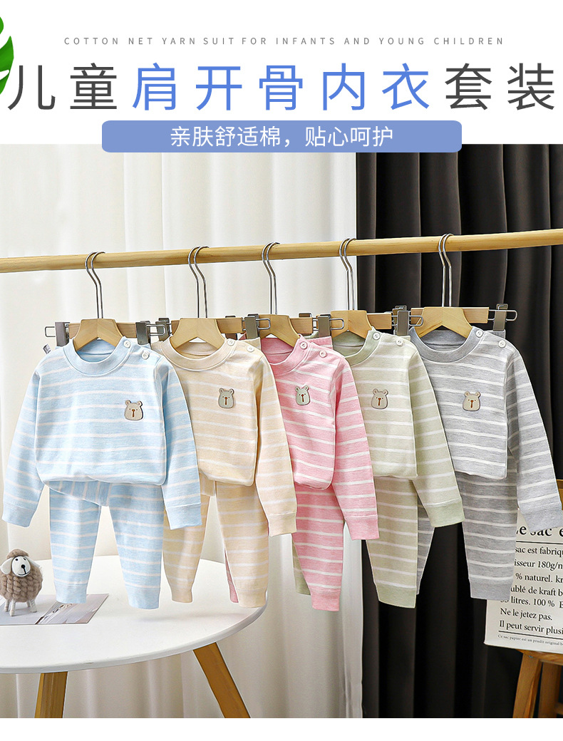 Осенний комплект детских термокомплектов, нижнее белье из чистого хлопка для малышей, детская одежда, цветной хлопок, оптом, можно носить на выход, в полоску