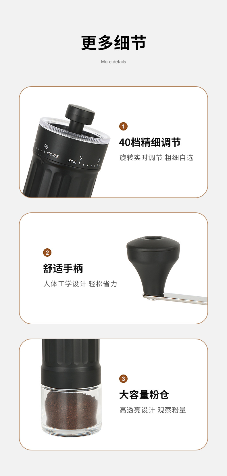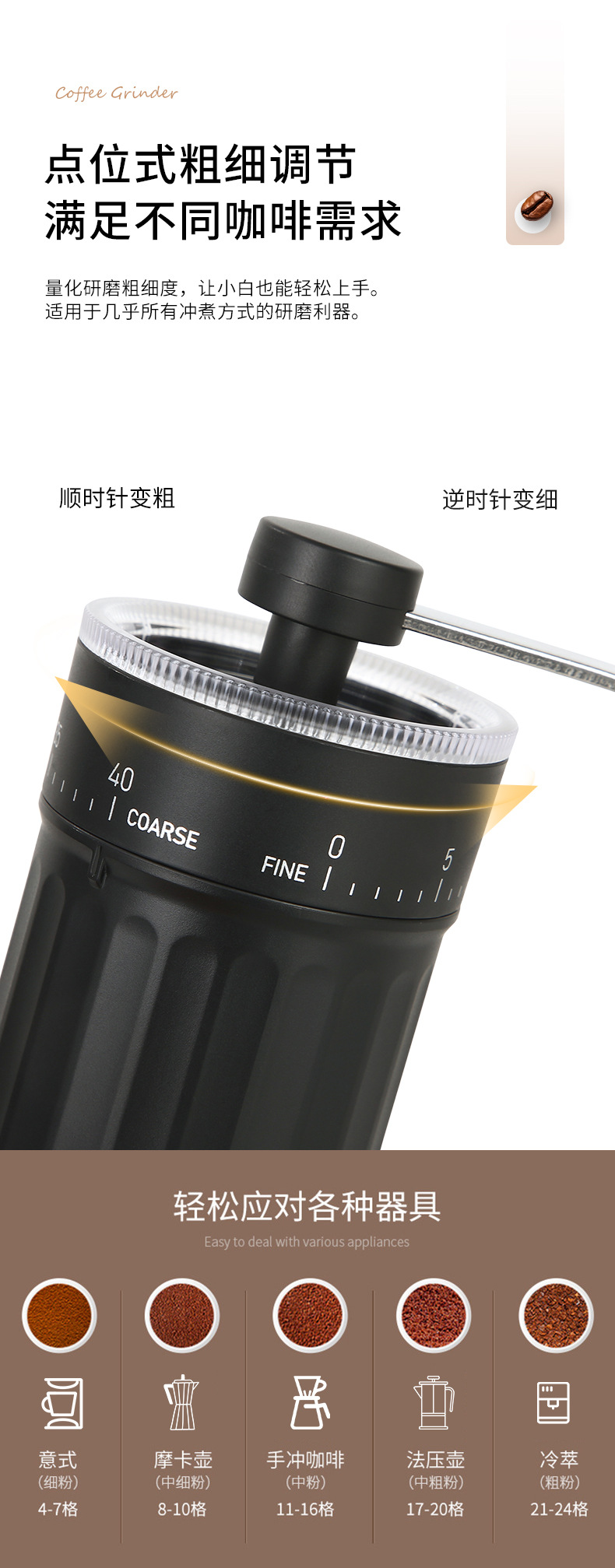 Модель керамического шлифовального сердечника с ручным кофемолкой и внешней регулировкой; Модель измельчающего сердечника из нержавеющей стали с ручным заводом и внешней регулировкой.