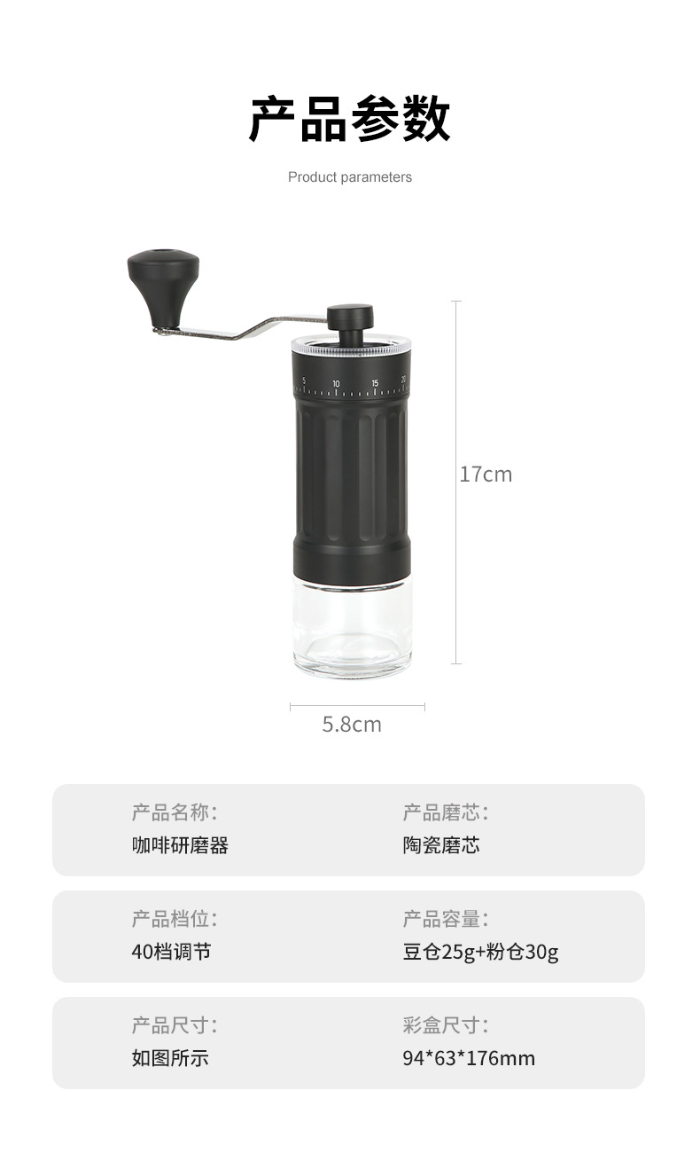 豆仓容量:25(±5)g;粉仓容量:30(±5)g