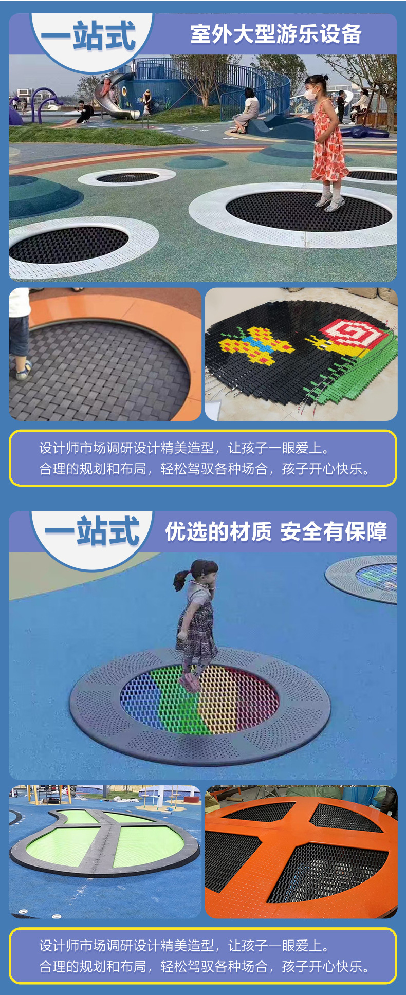 Открытый небольшой заглубленный батут на заказ Живописный парк без двигателя Детское игровое оборудование Круглый прыгающий кровать