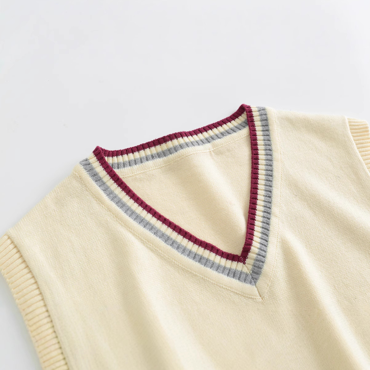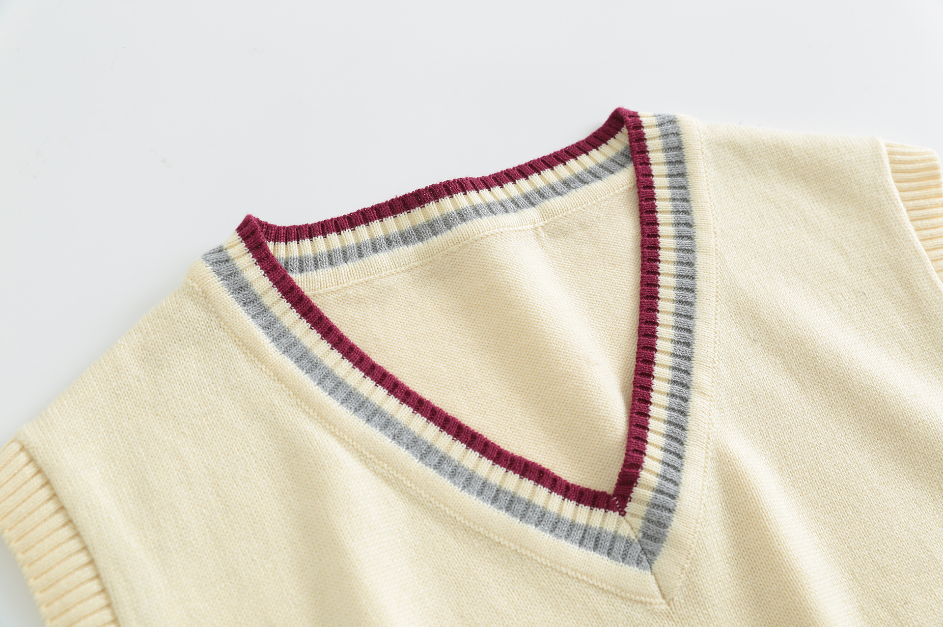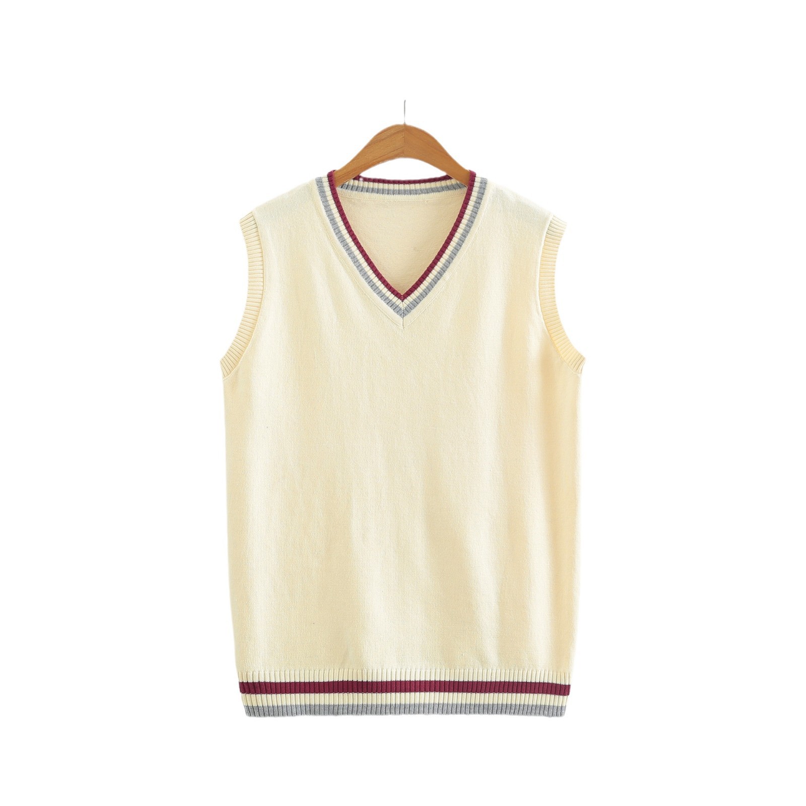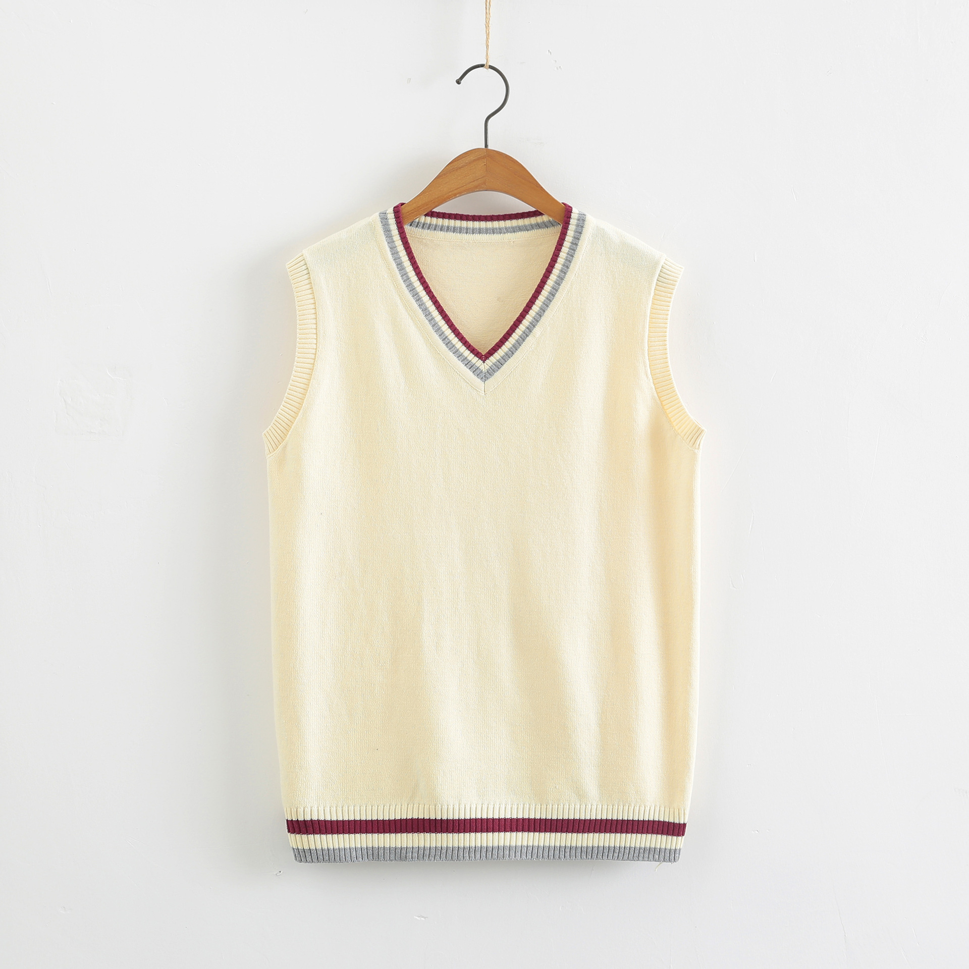 Японский оригинальный бежевый жилет с V-образным вырезом и полосками, свитер в школьном стиле, базовый трикотаж для униформы JK