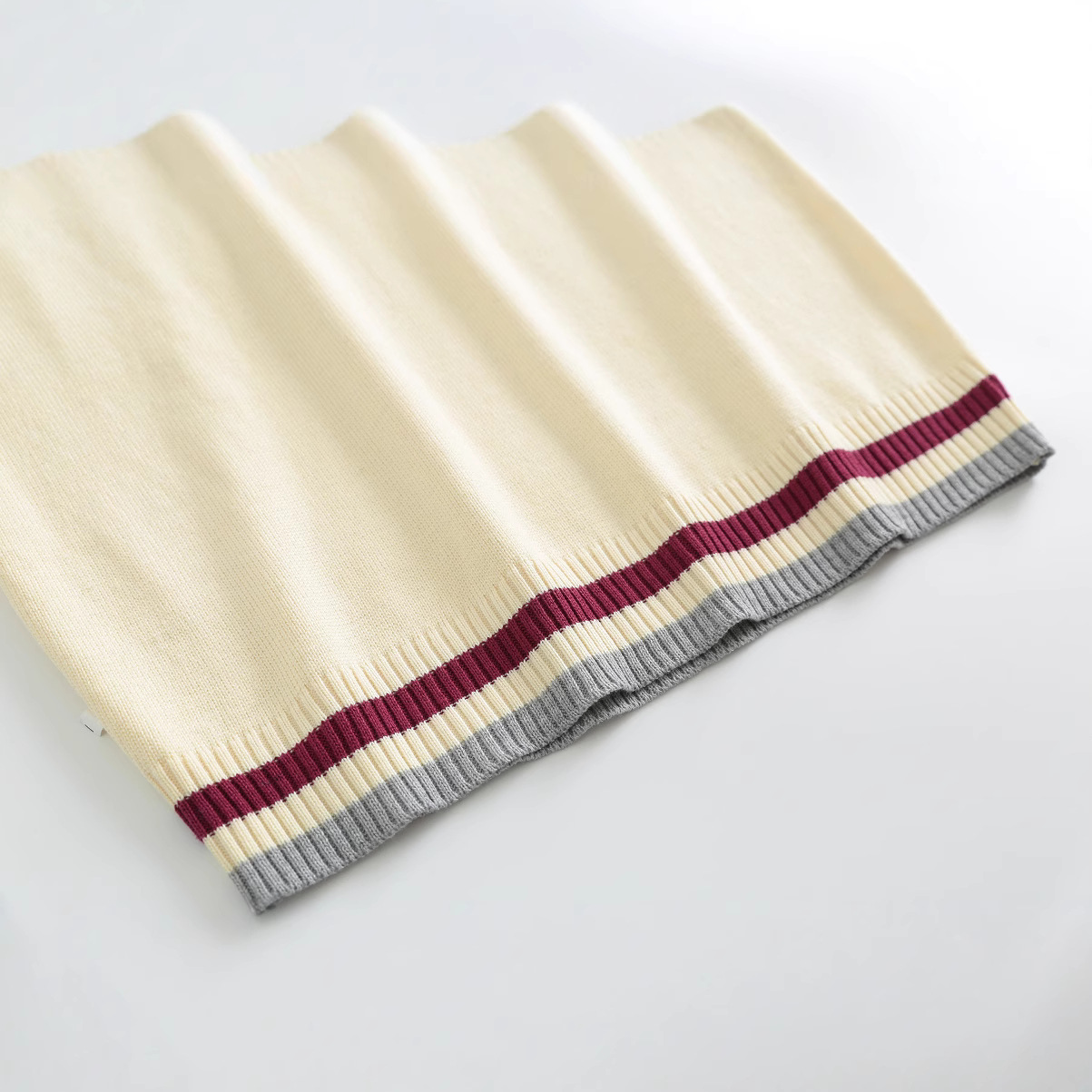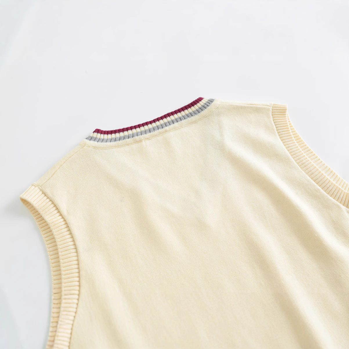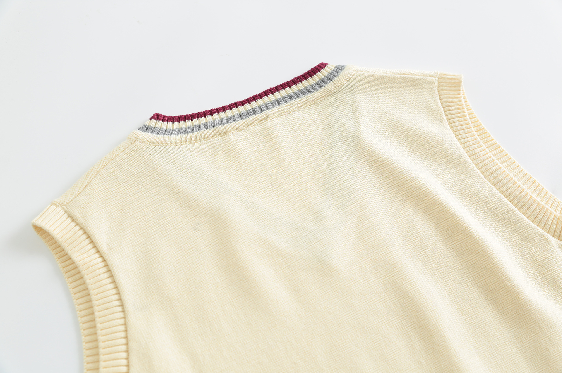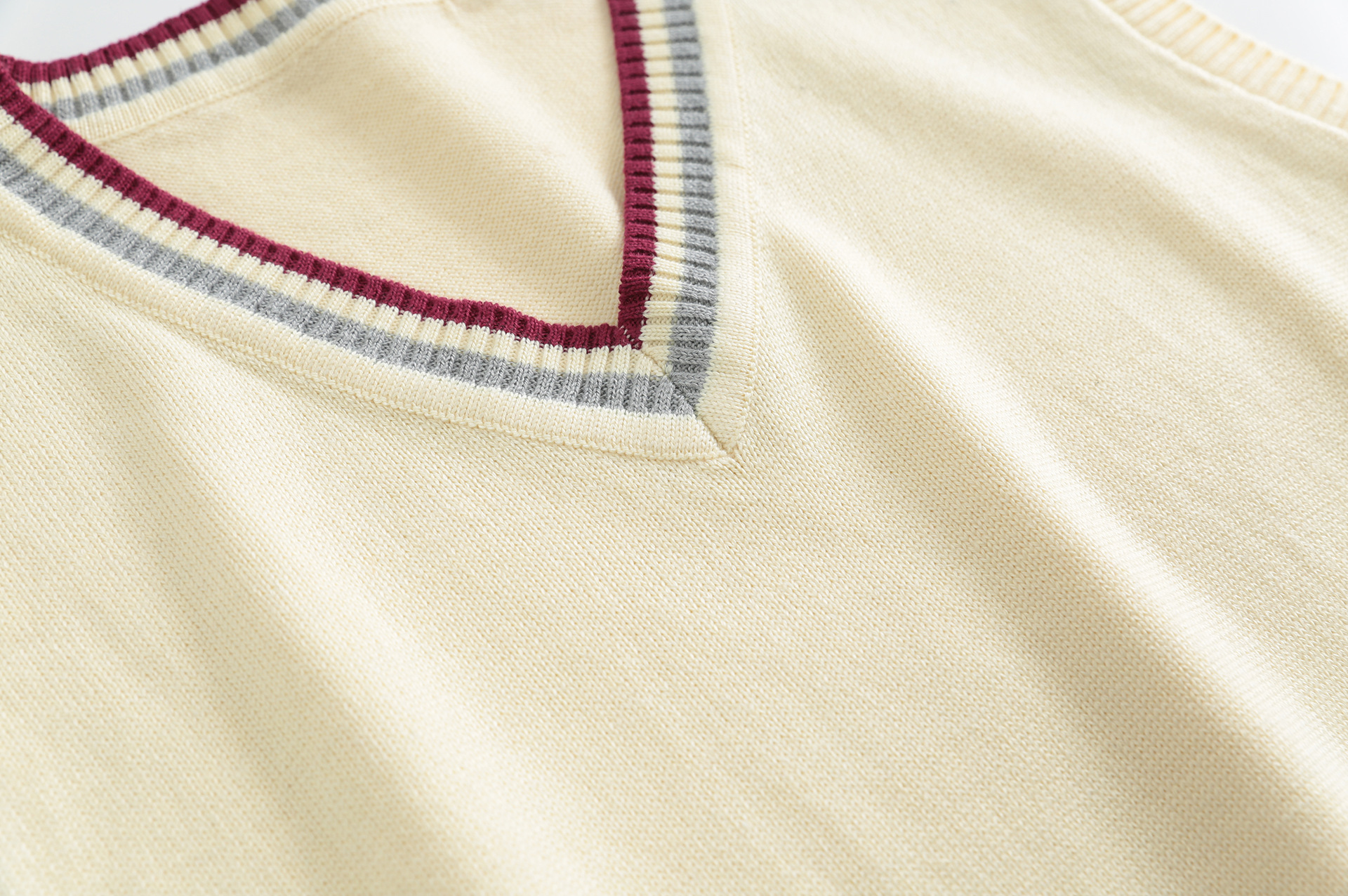 Японский оригинальный бежевый жилет с V-образным вырезом и полосками, свитер в школьном стиле, базовый трикотаж для униформы JK