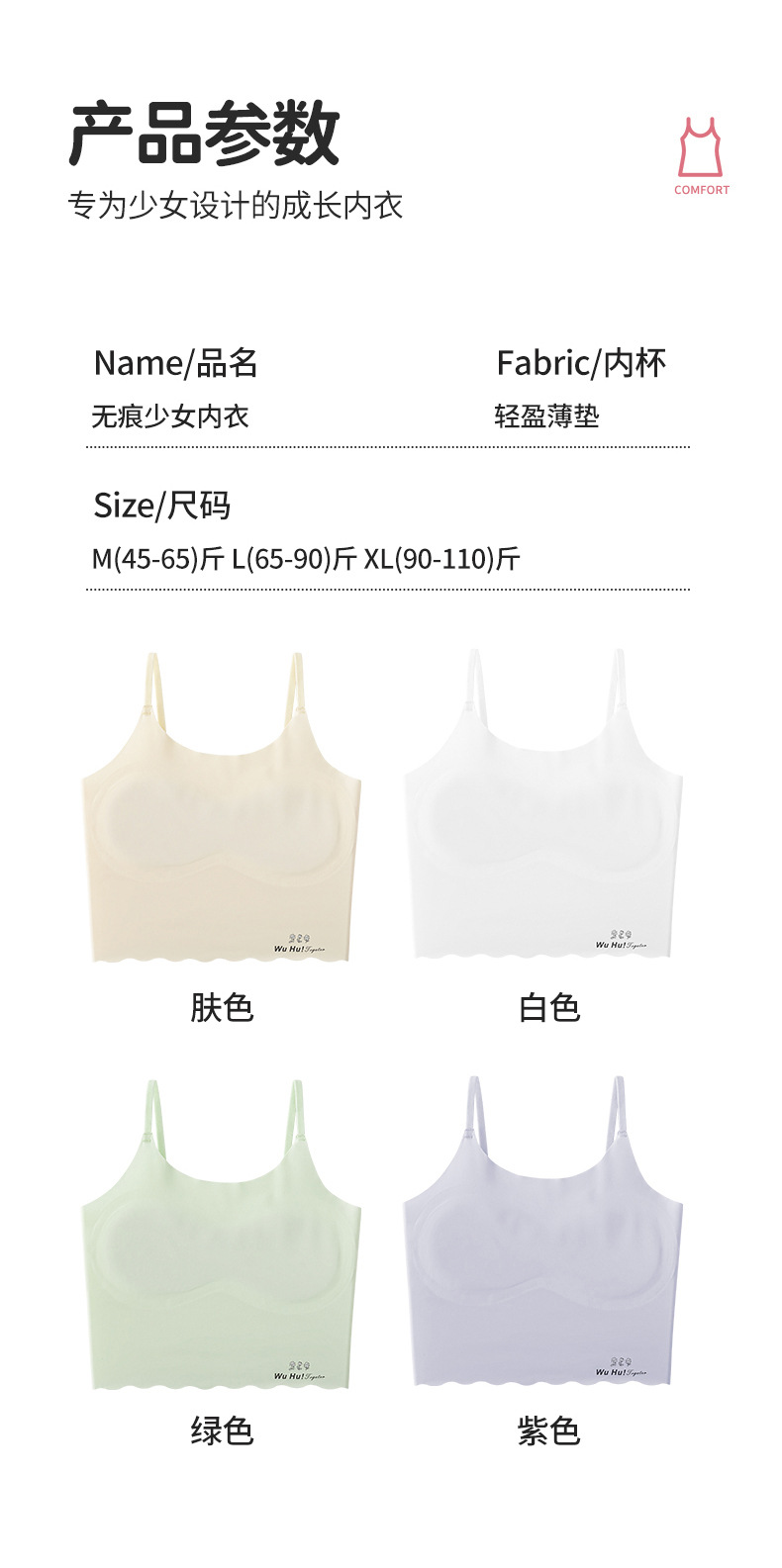 Новый период развития маленький задний средний длинный тонкий плечевой ремень фиксированный тонкая чашка анти-выпуклость студенческий детский бесшовный бюстгальтер для кожи