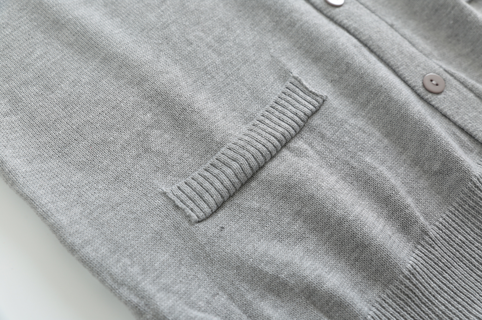 Серый свитер-кардиган с длинными рукавами и искусственным карманом.; Красочный свитер-кардиган с длинными рукавами и искусственным карманом.; Черный свитер-кардиган с длинными рукавами и искусственным карманом.