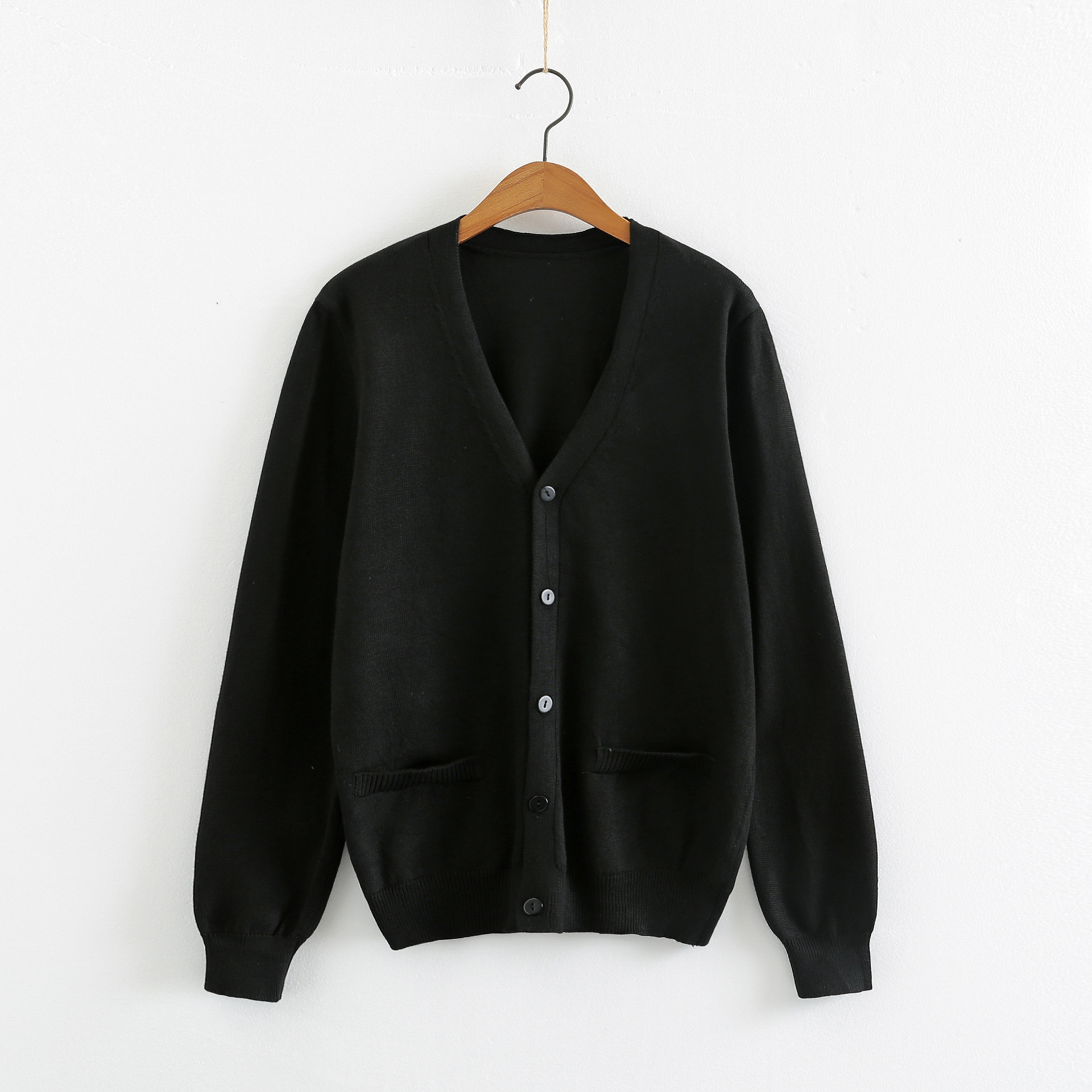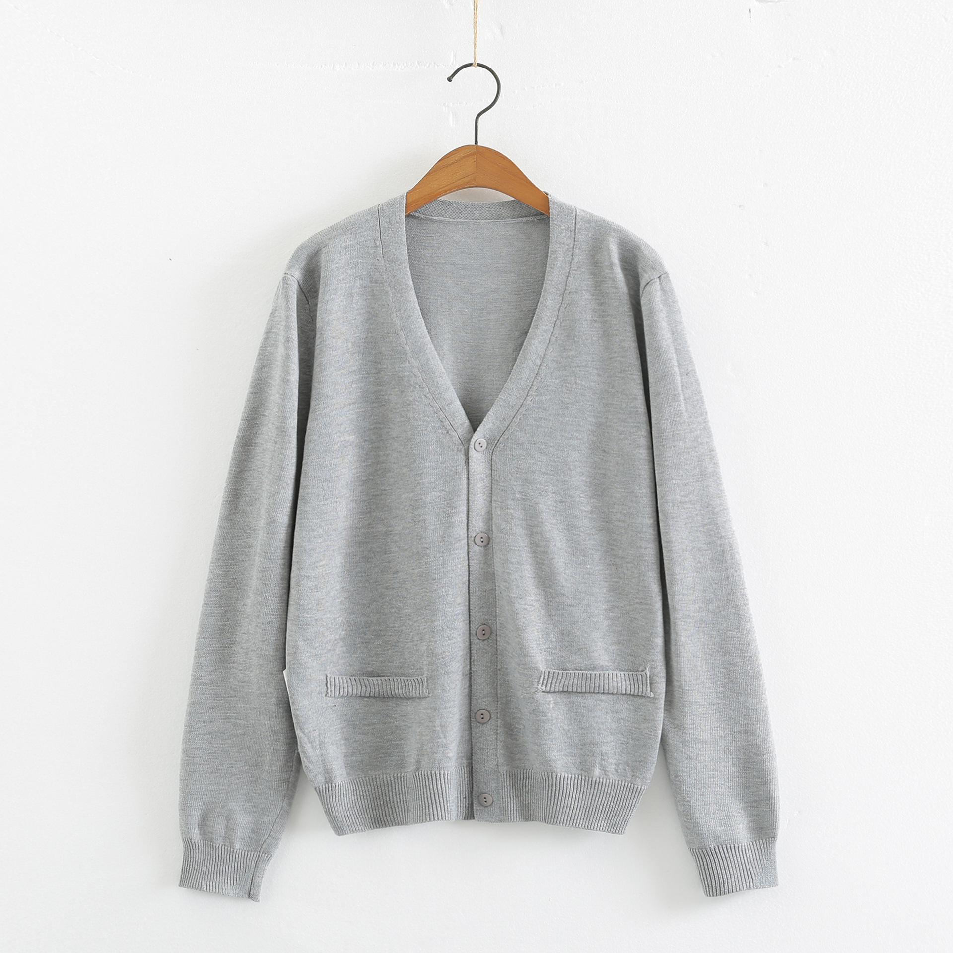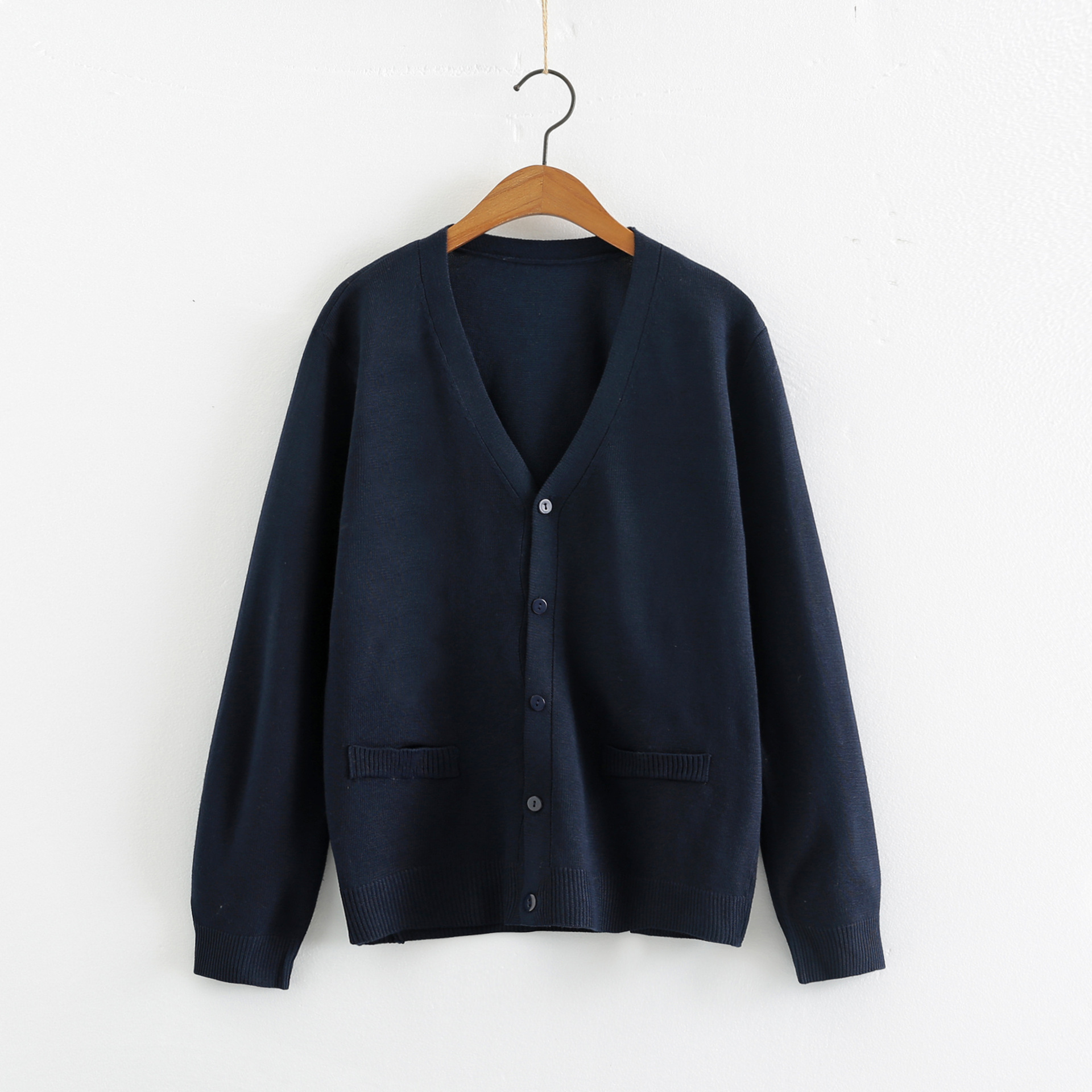 Подлинная оригинальная форма JK сплошной цвет поддельный карманный кардиган свитер осень-зима свитер с длинными рукавами