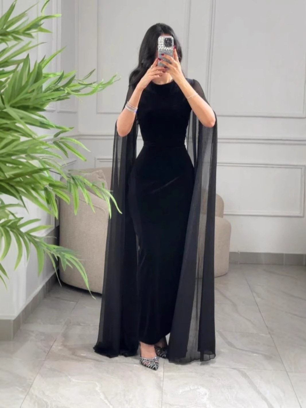 2024 осень и зима новая трансграничная внешняя торговля женская европейская и американская независимая станция Amazon Ближневосточное бархатное платье с рукавами