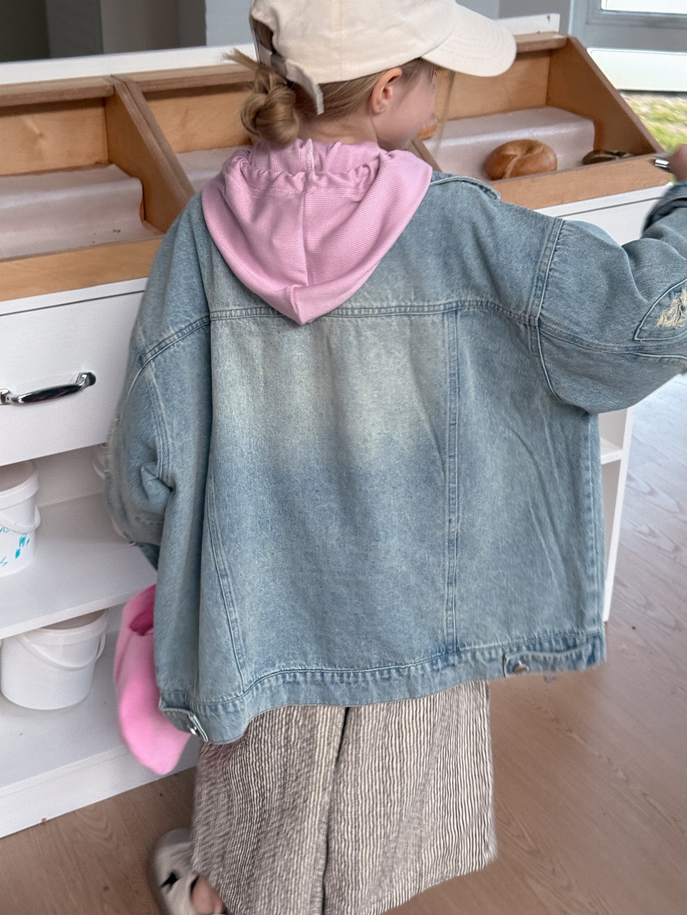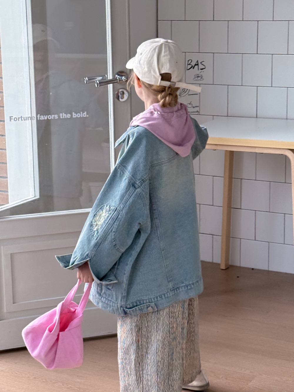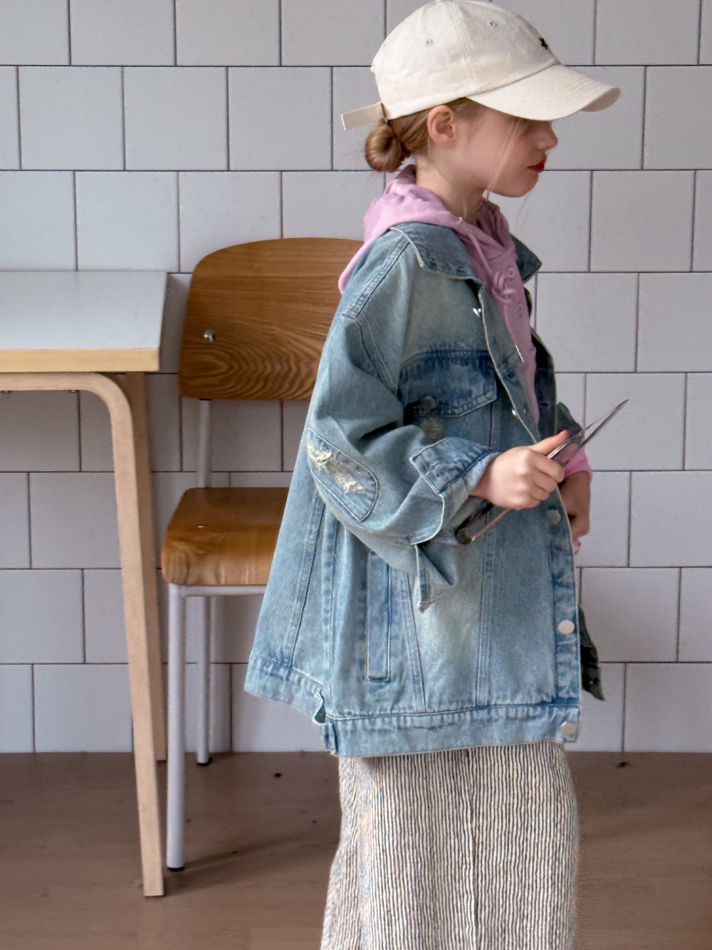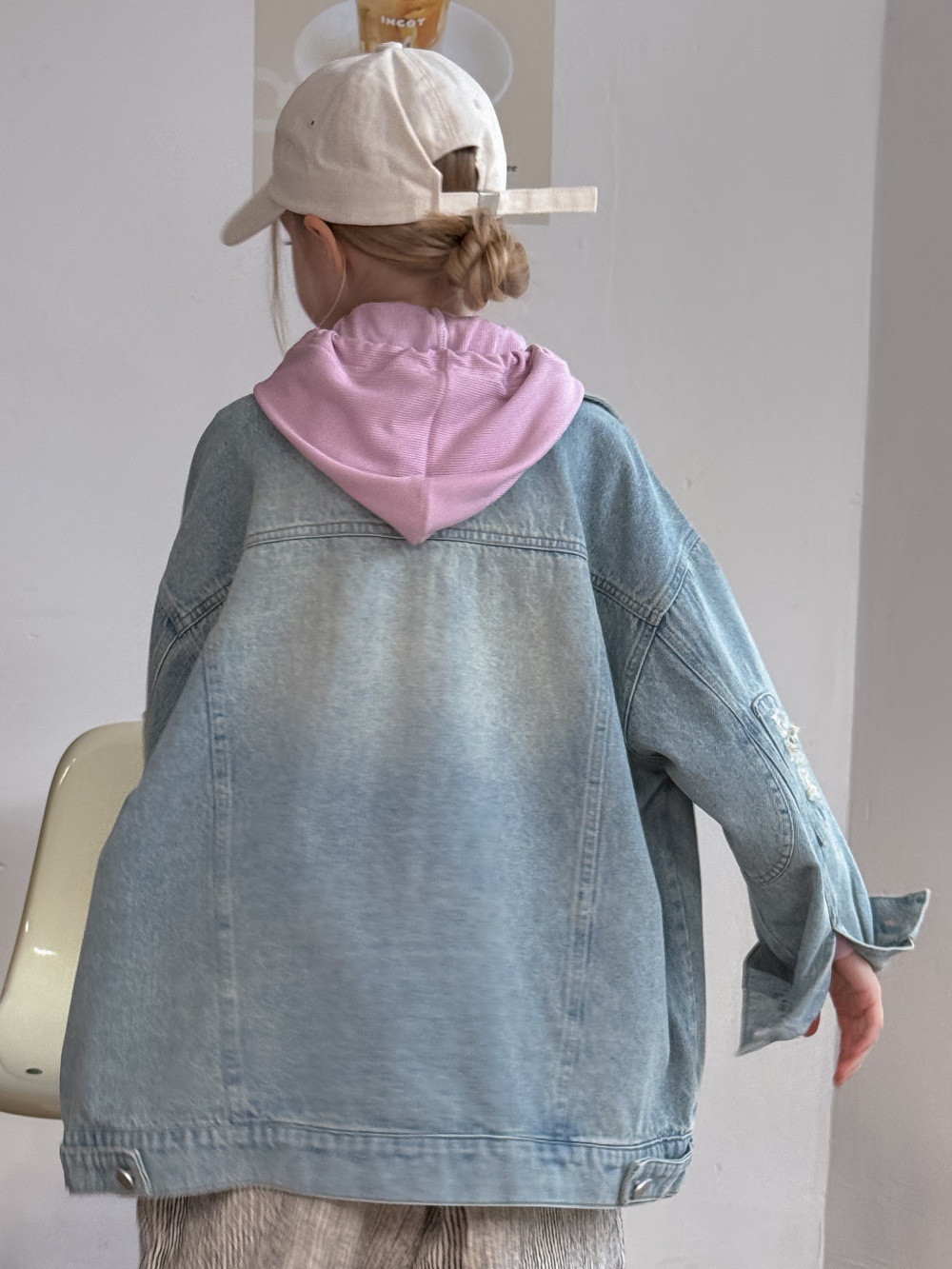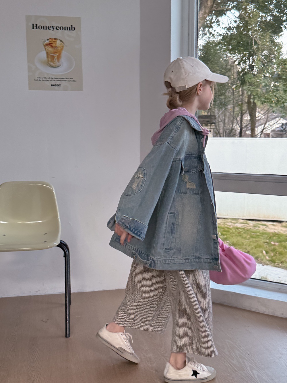 Детская джинсовая куртка для девочек, новинка весны 2026, корейский стиль, свободный крой, универсальная, премиум-класса, для старших детей, с лоскутным дизайном.