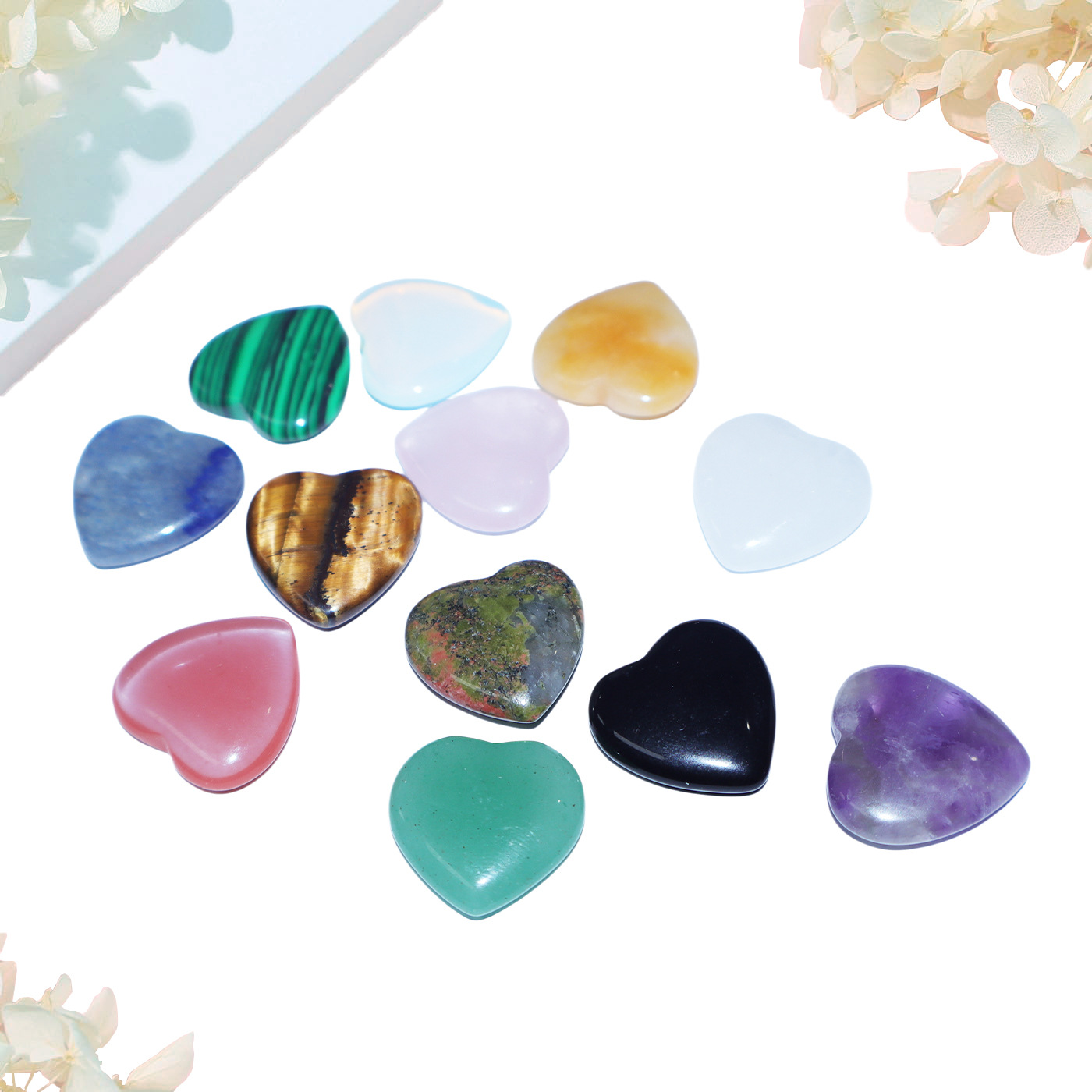 Оптовая продажа: Набор из 12 натуральных каменных сердец (20 мм) с карточками, хит продаж для трансграничной торговли
