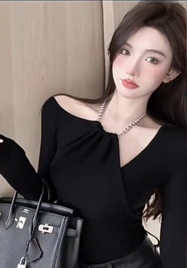 Дизайн с открытыми плечами, короткая узкая белая футболка, дамы весенний и осенний темперамент, ветер нерегулярный нижний топ