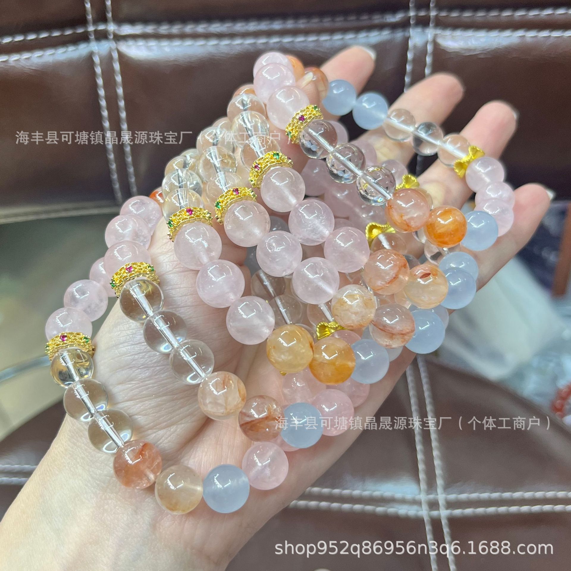 新款小清新仙女风多巴胺天然红胶花粉水晶蓝玉髓圆珠手链寺庙批发 批发量越大价格越低,可供直播间长期合作,欢迎来电私聊