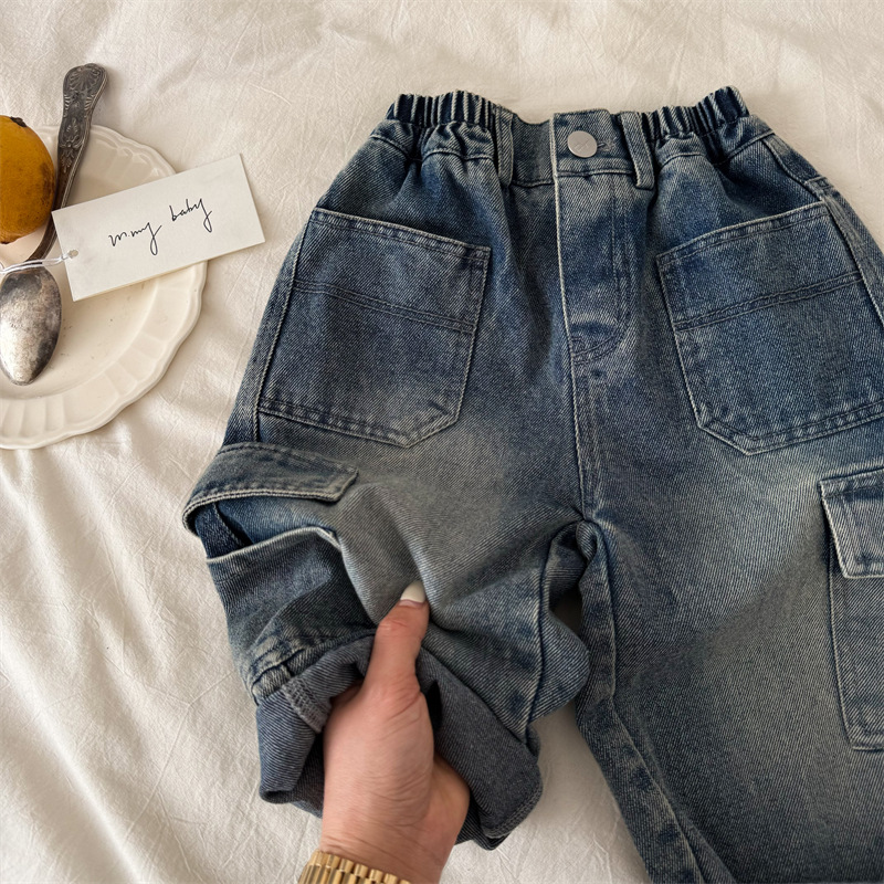 Детские длинные брюки 2026, новинка весны, однотонные джинсы с карманами для мальчиков и девочек, прямые брюки-карго для малышей