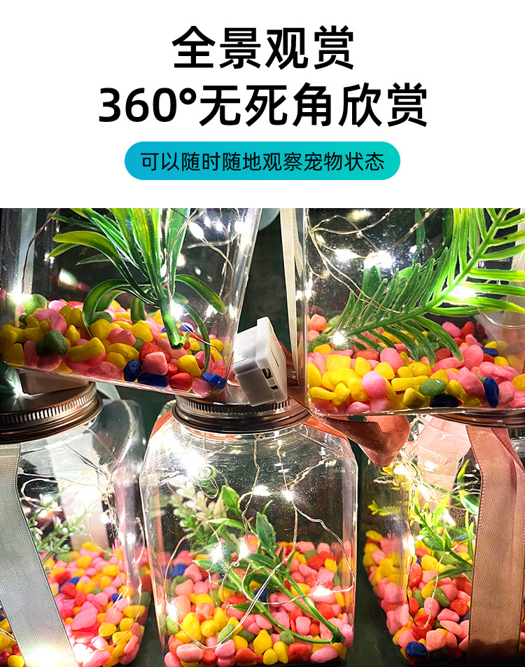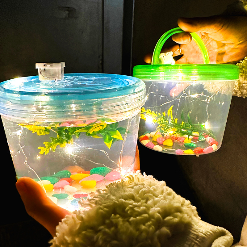 Сетка красная светящаяся банка маленькая рыбная бутылка портативная коробка для домашних животных пузырь рыбная бутылка черепаха цилиндр пластиковая прозрачная коробка для киоска оптом