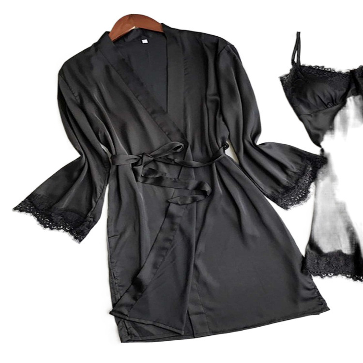 Новый европейский и американский секс-пижама симуляции шелковый сексуальный кружевной большой размер кардиган утренний халат трансграничная оптовая продажа