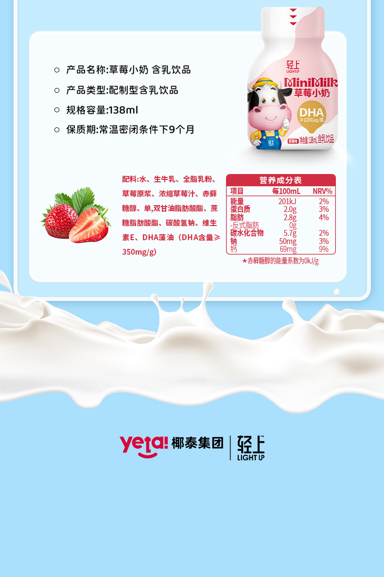 Легкий кокосовый сырое молоко, молочный напиток, детский банановый клубничный молочный напиток, содержащий белок DHA