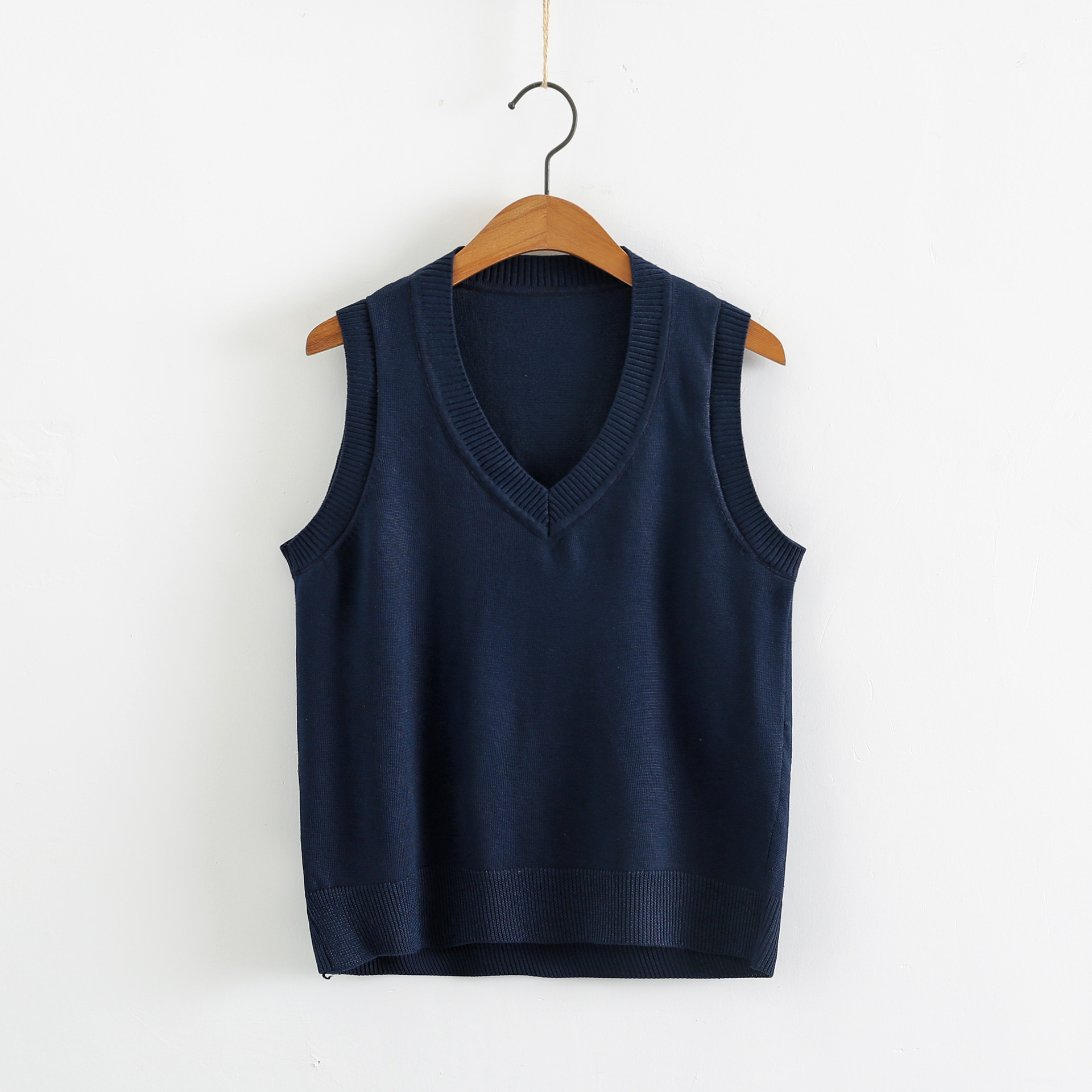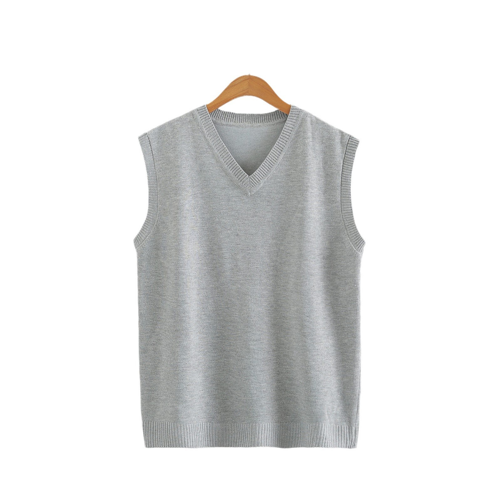Осенний и зимний теплый студенческий трикотажный жилет новый V-образный вырез сплошной цвет простой свободный тонкий пуловер свитер