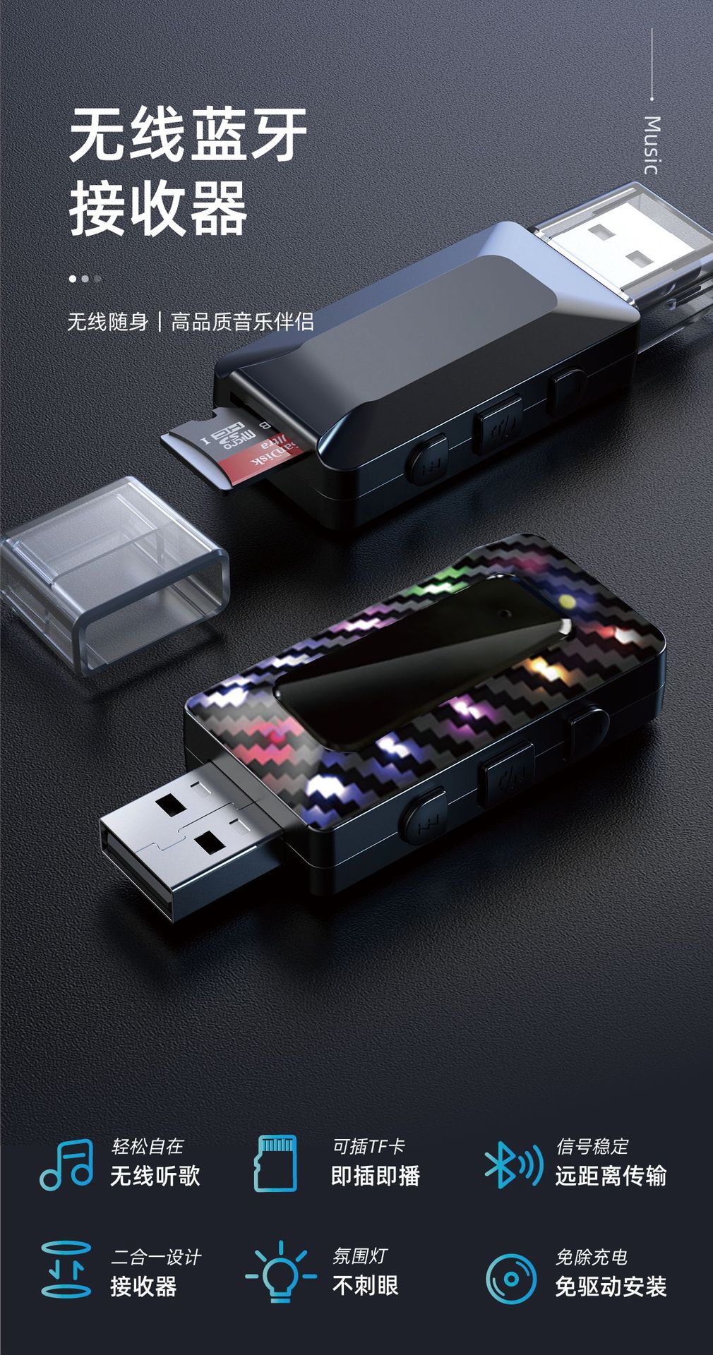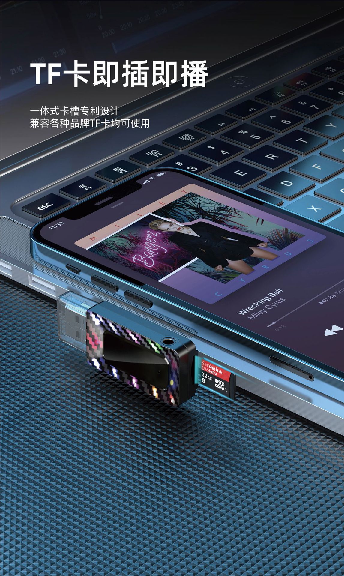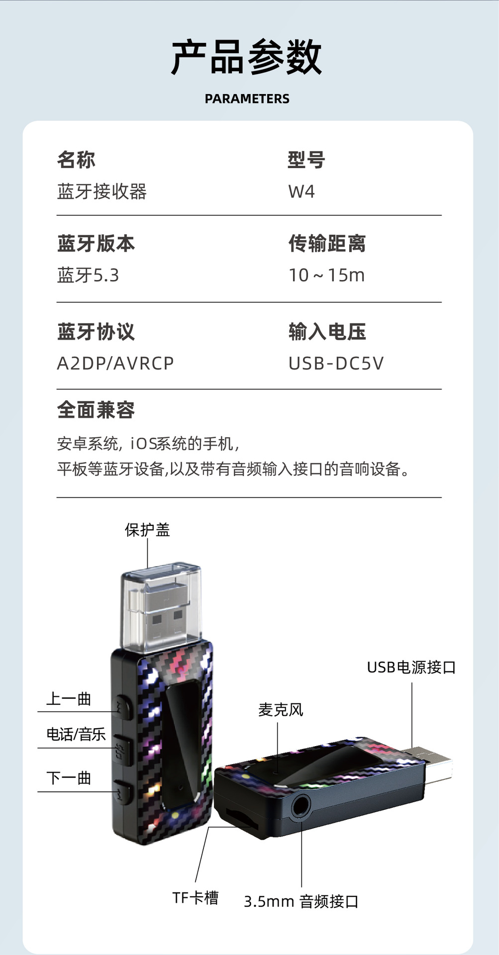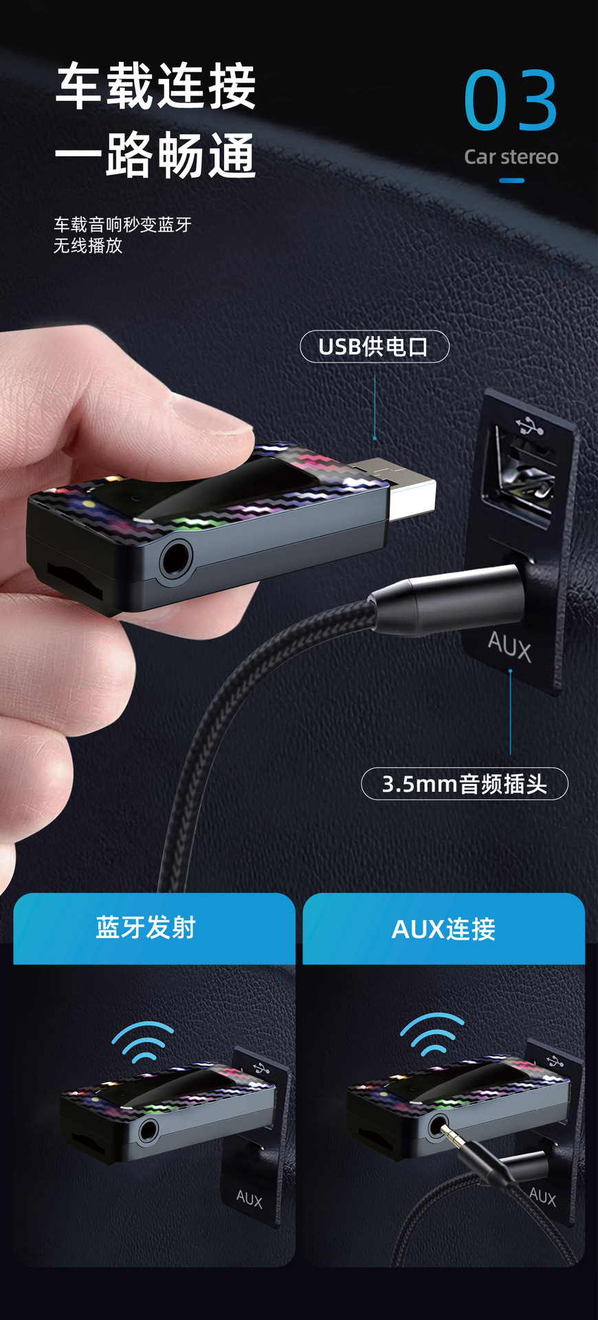 Трансграничный автомобильный Bluetooth 5.3 приемник FM-передатчик аудио адаптер беспроводной громкой связи TF карты воспроизведения