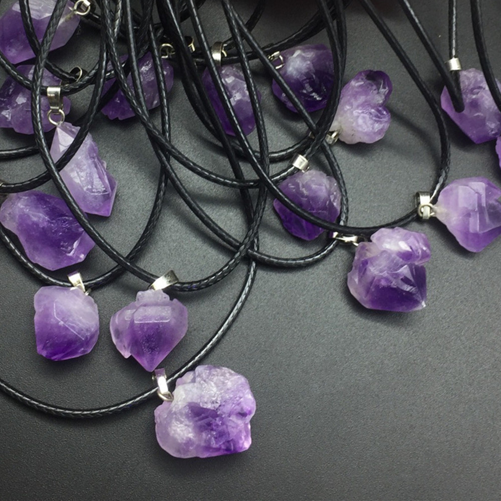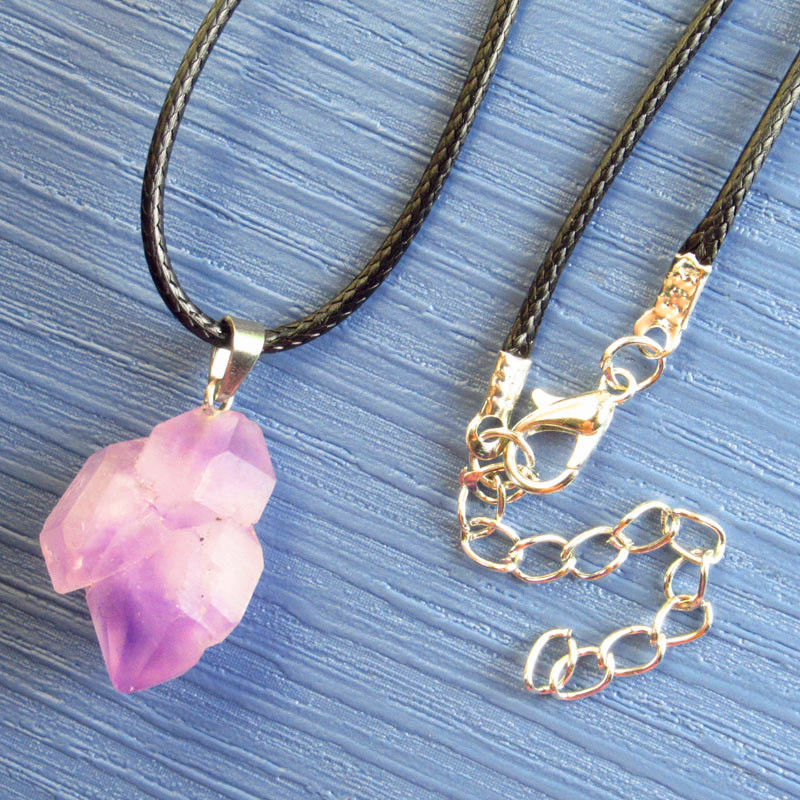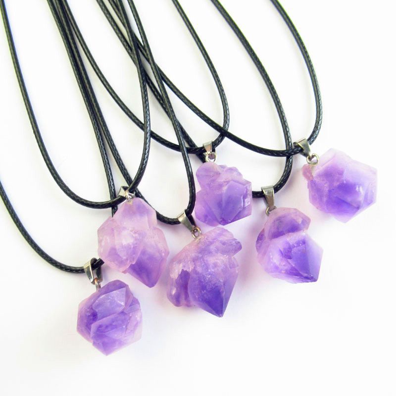 Натуральный хрустальный кулон аметист ожерелье женская прозрачная фантазия лаванда пурпурный оригинальный камень подвеска ювелирный подарок