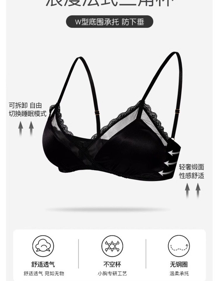 Французское маленькое грудное белье женское летнее тонкое удобное и дышащее без стального кольца