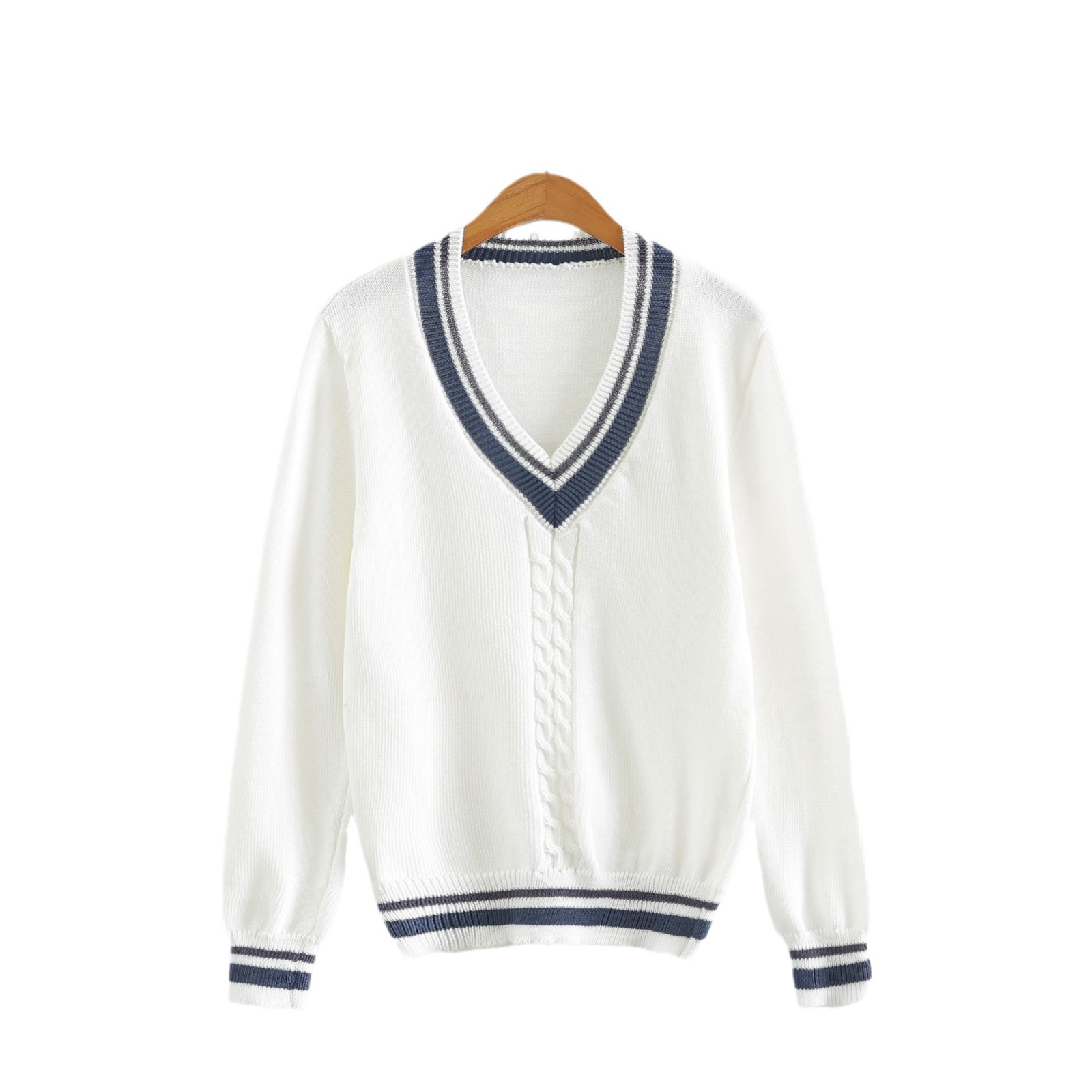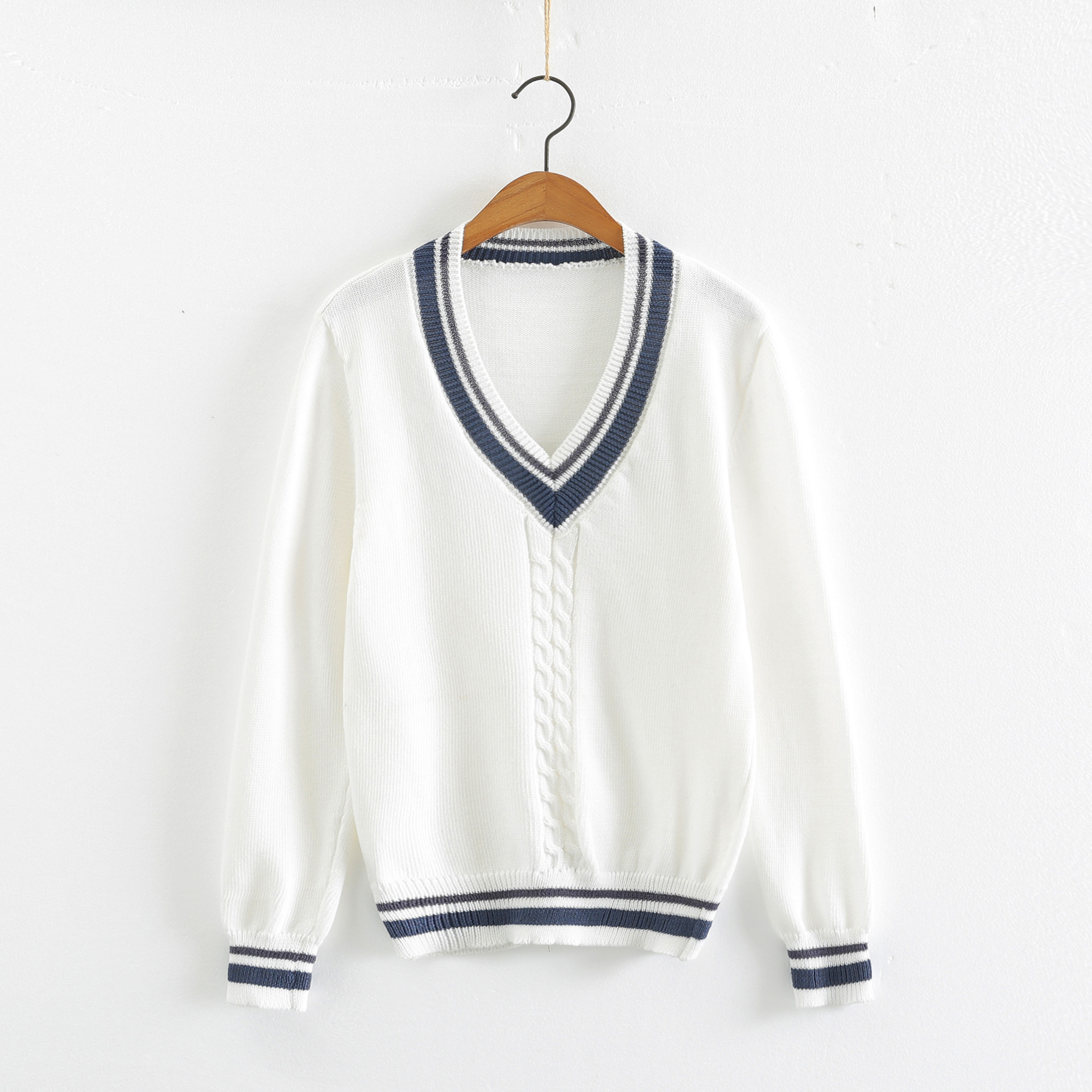 [Нежный нож] Японский белый V-образный школьный стиль свитер с длинными рукавами для студенческих мероприятий
