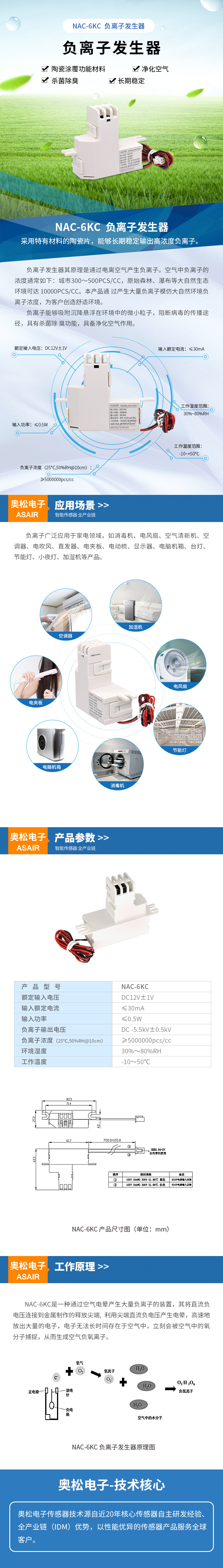ASAIR Oson NAC-6KC модуль генератора отрицательных ионов Кондиционирование воздуха высокой концентрации озона Модуль очиститель машины