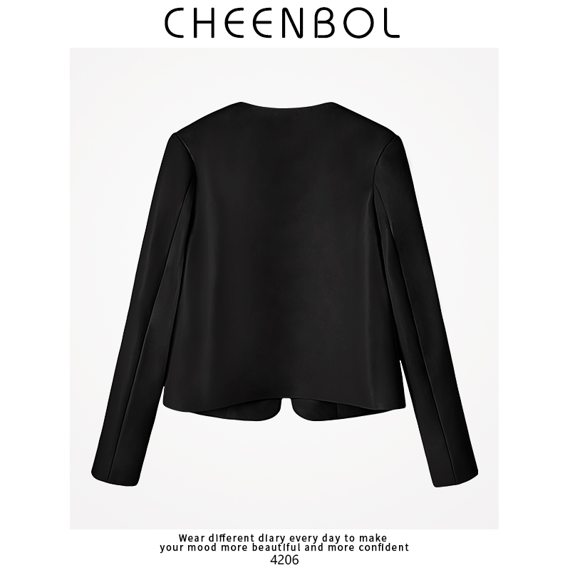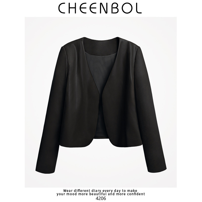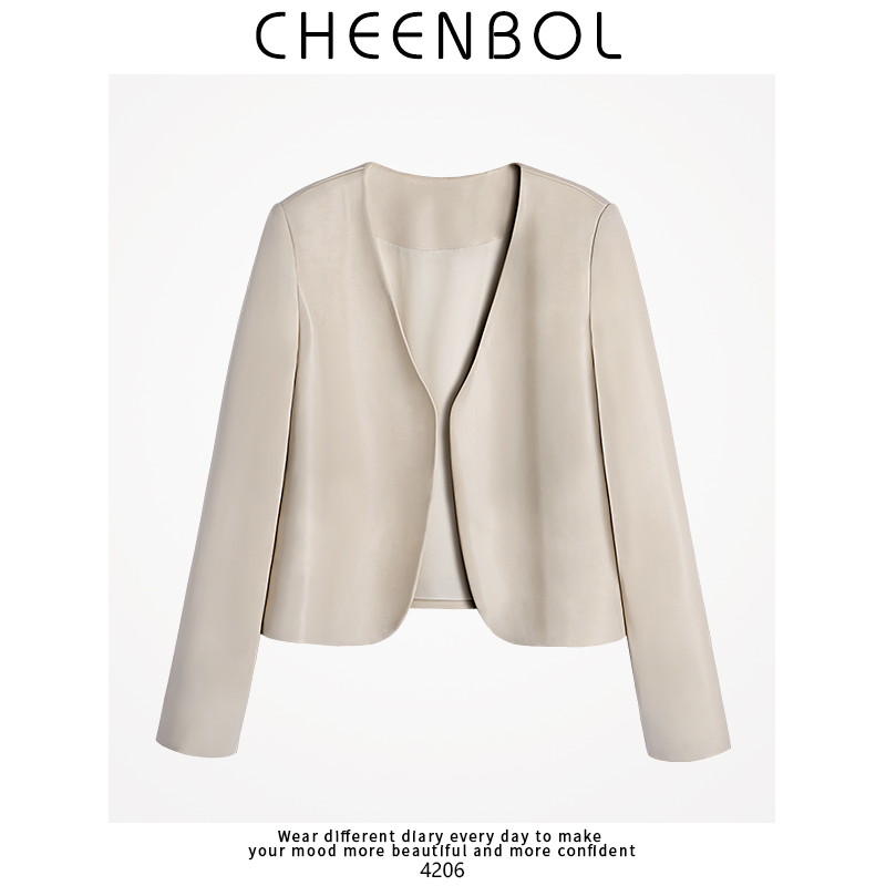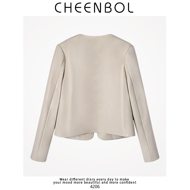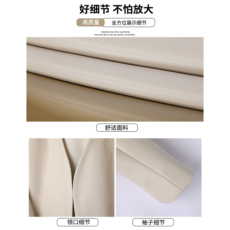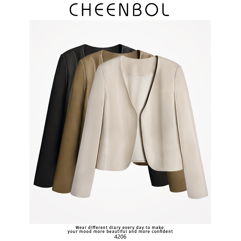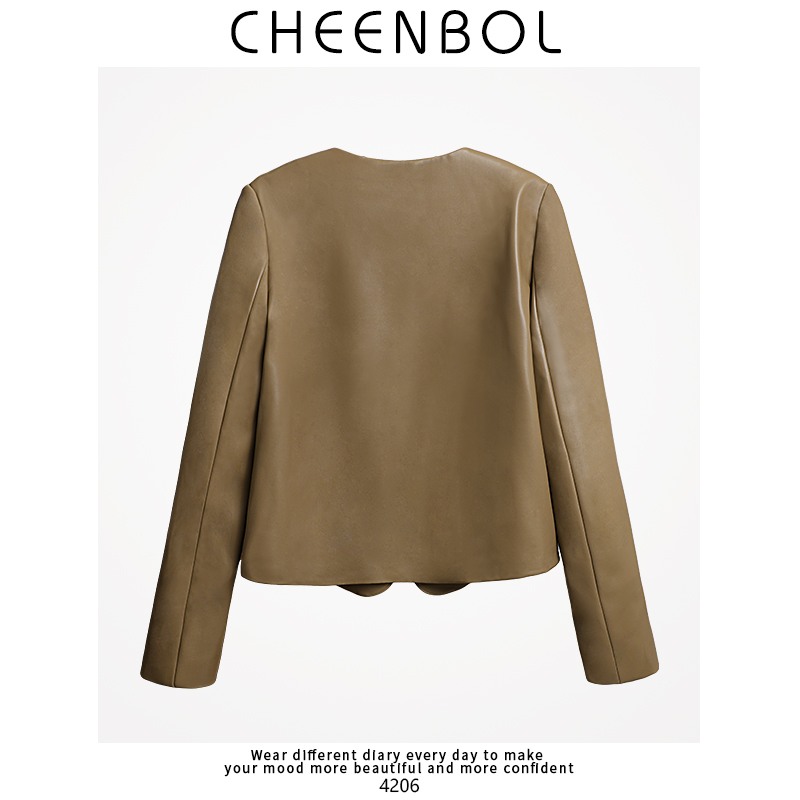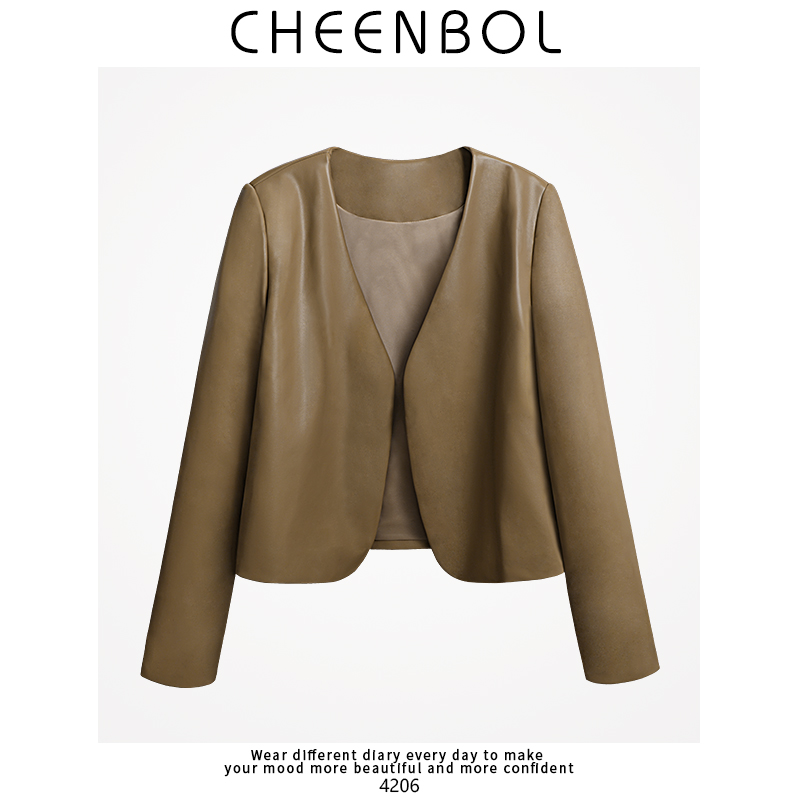 4206 Кожаное пальто без воротника Женская осень Короткий дизайн Чувство нишевые пригородного темперамента кожаный костюм топ маленький человек