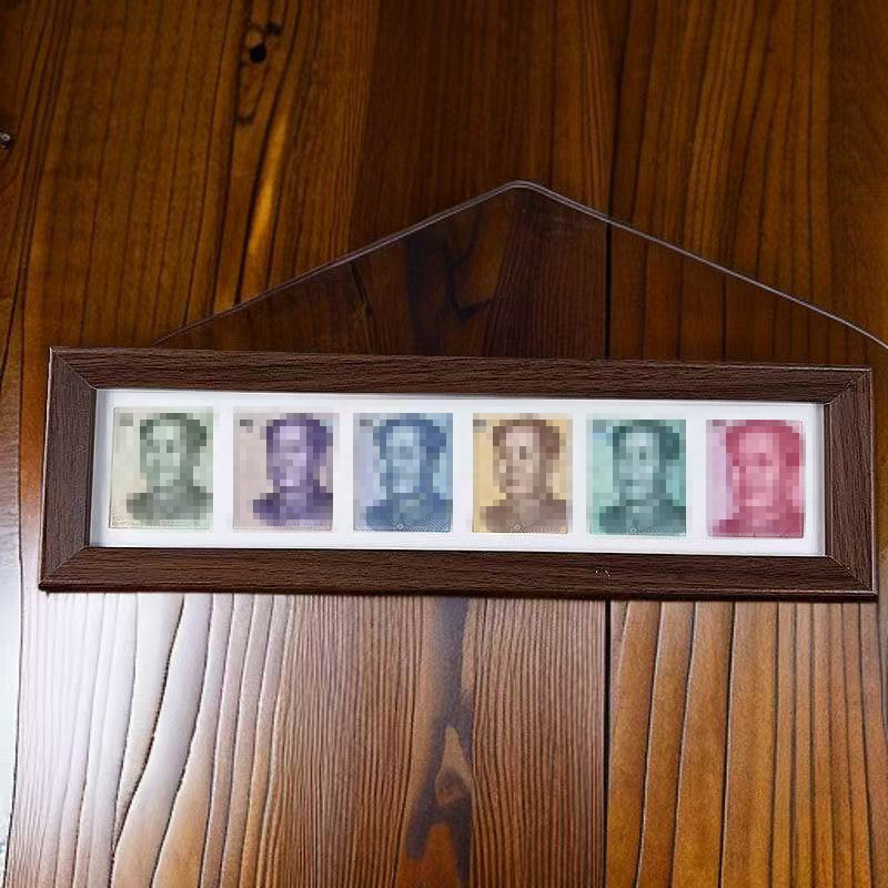 Удача, фоторамка «Золотой человечек», шестирамная декоративная фоторамка для народных монет, каллиграфия и живопись, цвет ореха, фоторамка «Хорошие реки и гора»