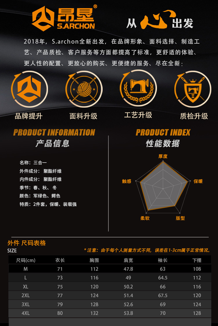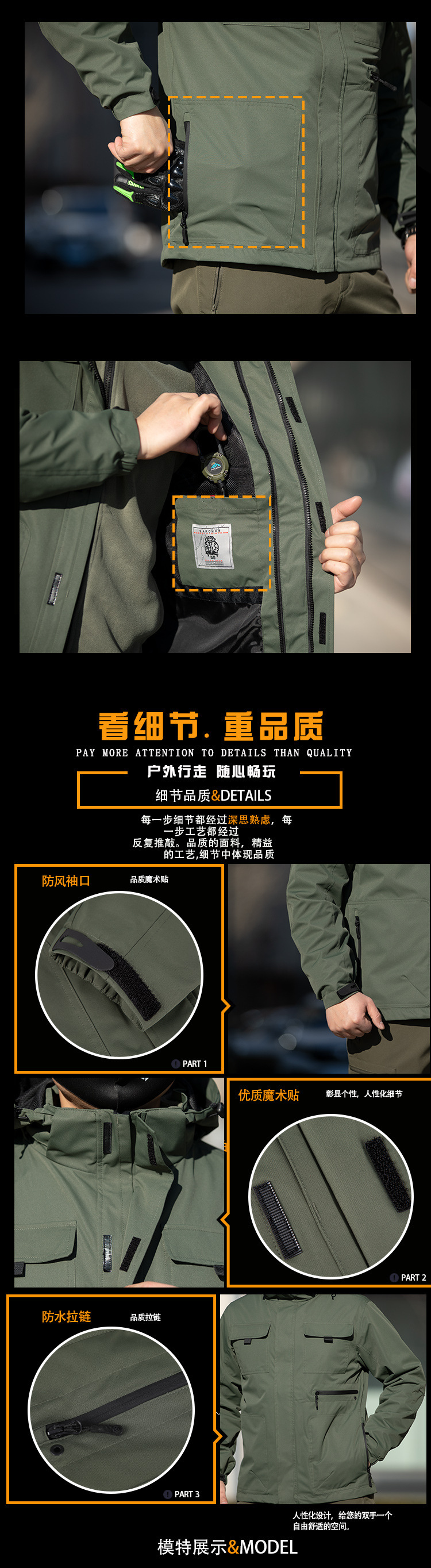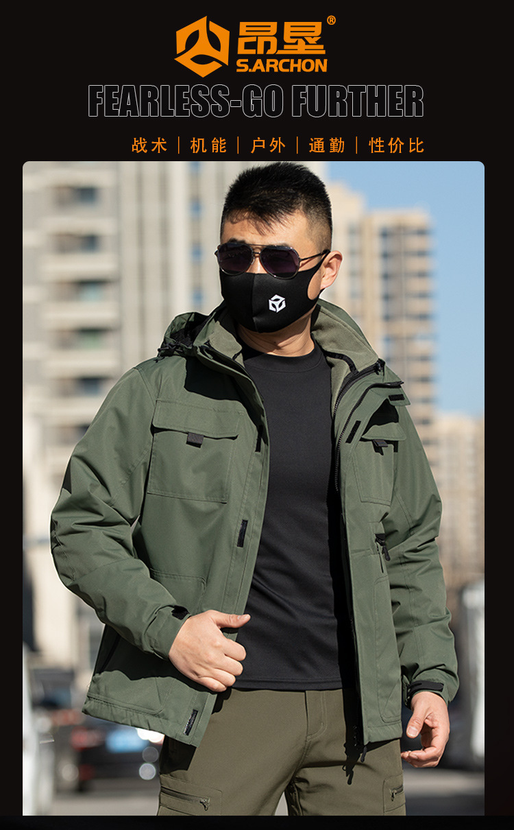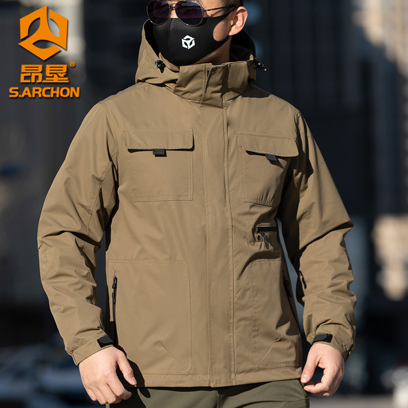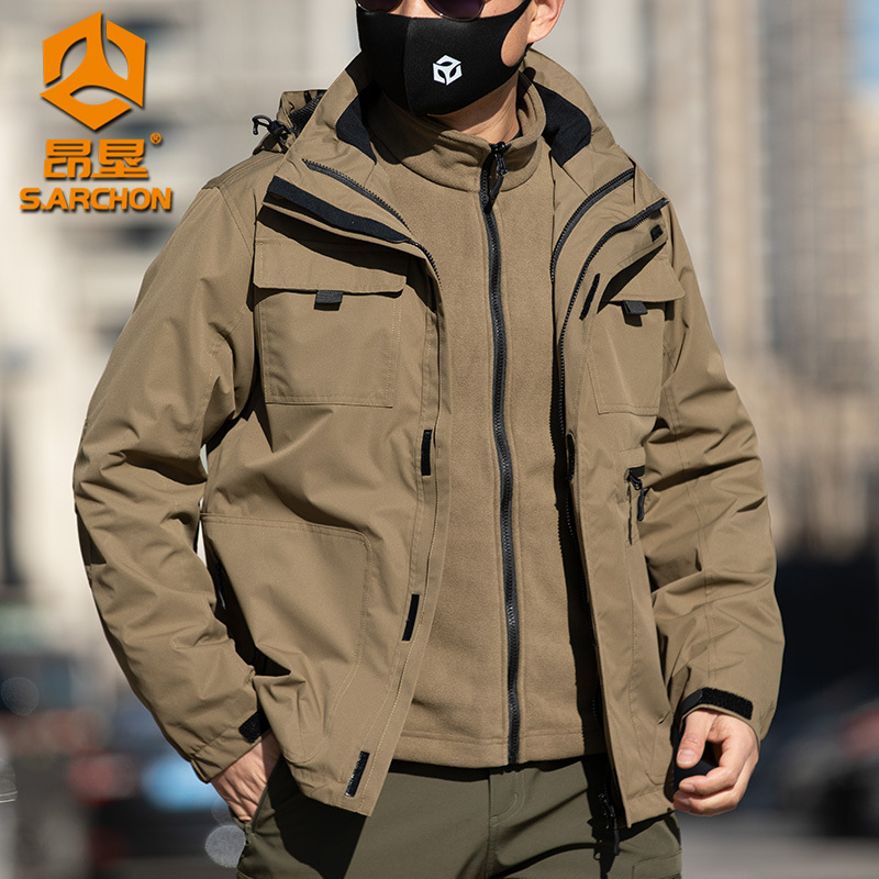 Мужская тактическая куртка Angken 3-в-1 для активного отдыха, осенне-зимняя, ветрозащитная и водонепроницаемая, софтшелл, съемный комплект из двух частей