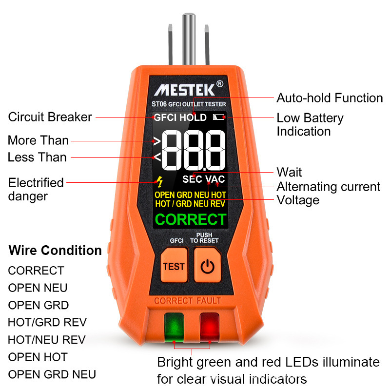 Розетка, измеритель мощности, полярность, обнаружение фазы, обнаружение переключателя утечки, экспорт, американский стандарт ST06